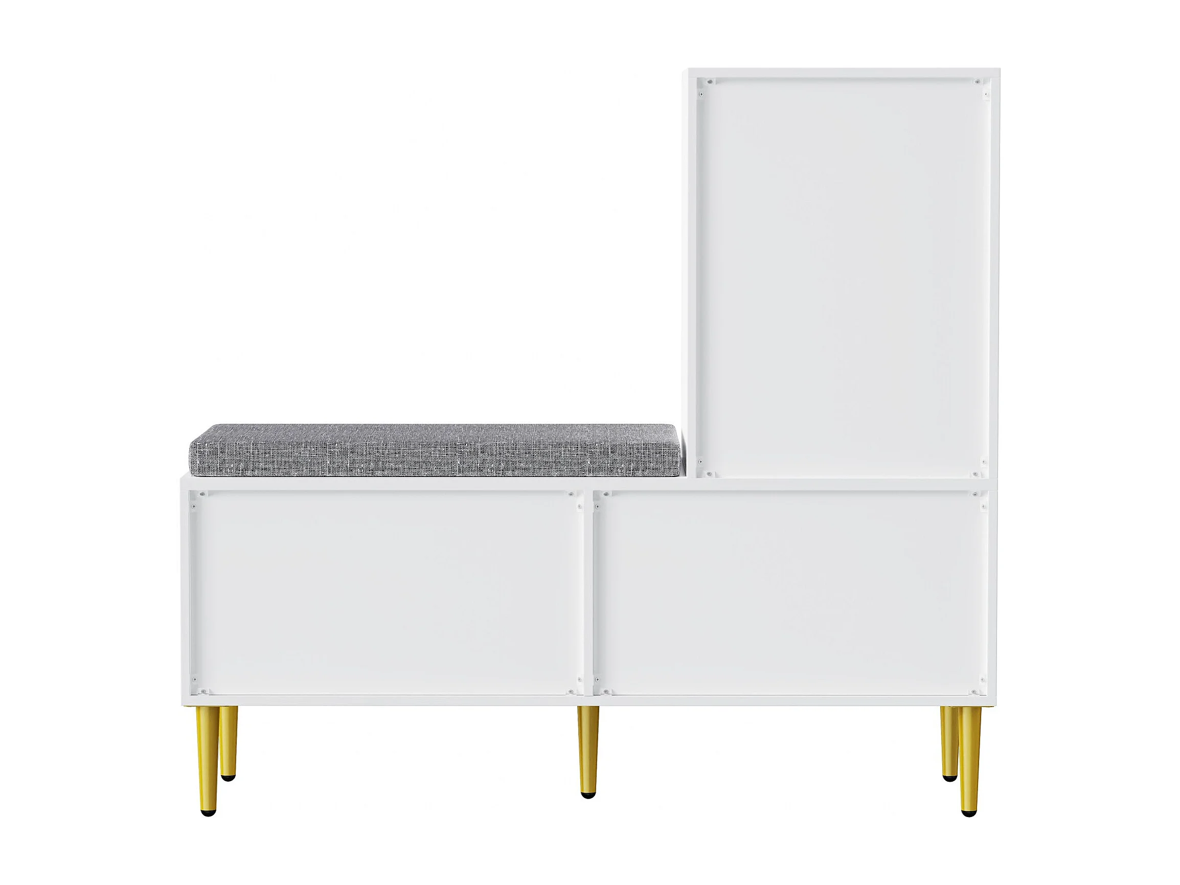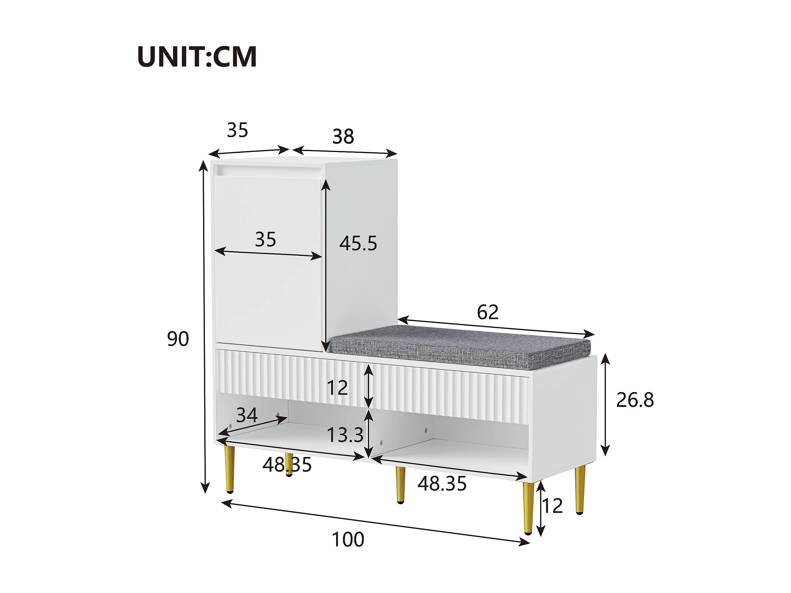 Meuble à chaussures d'entrée, meuble à chaussures blanc avec tabouret, 2 tiroirs et 2 étagères ouvertes