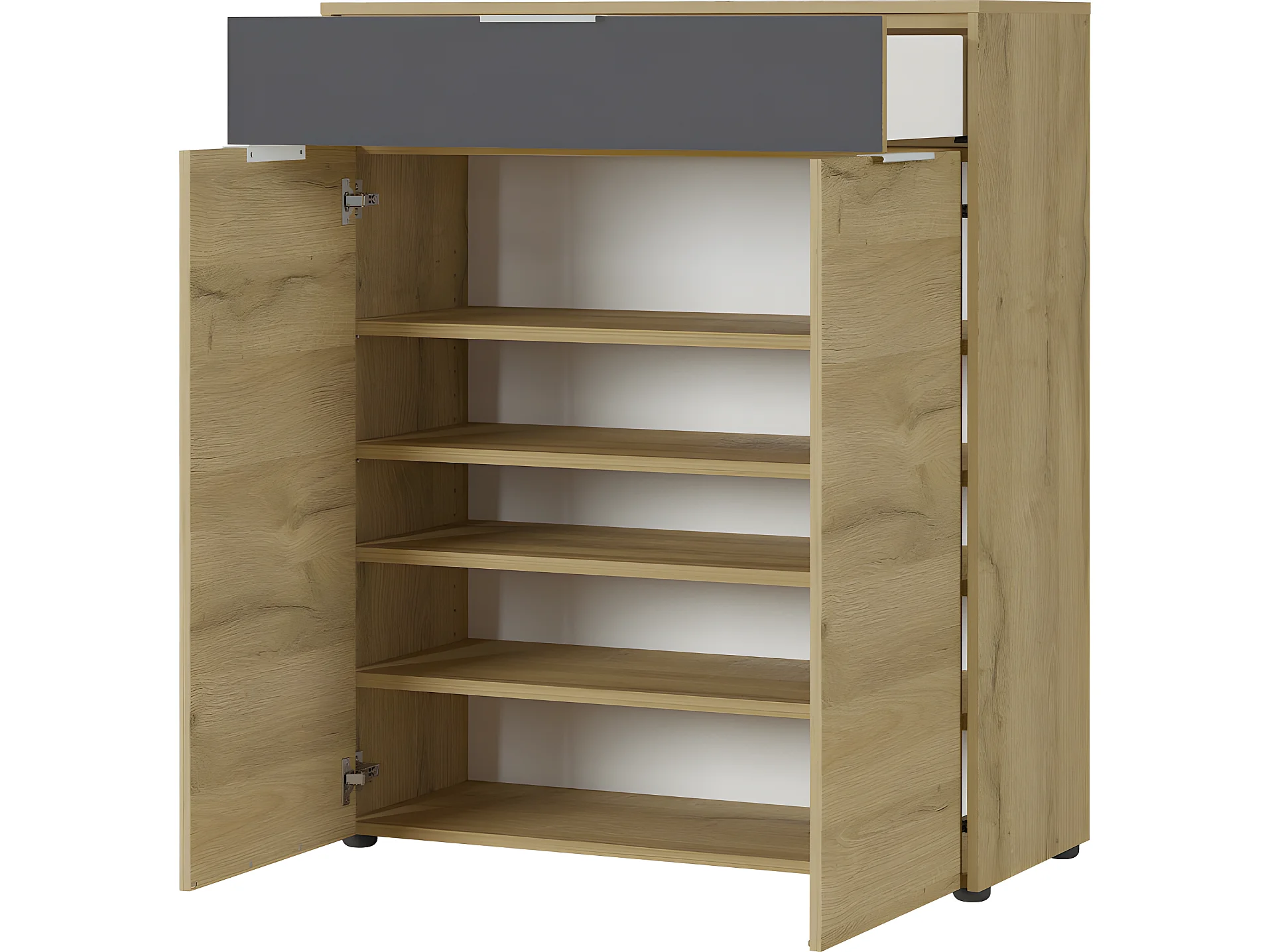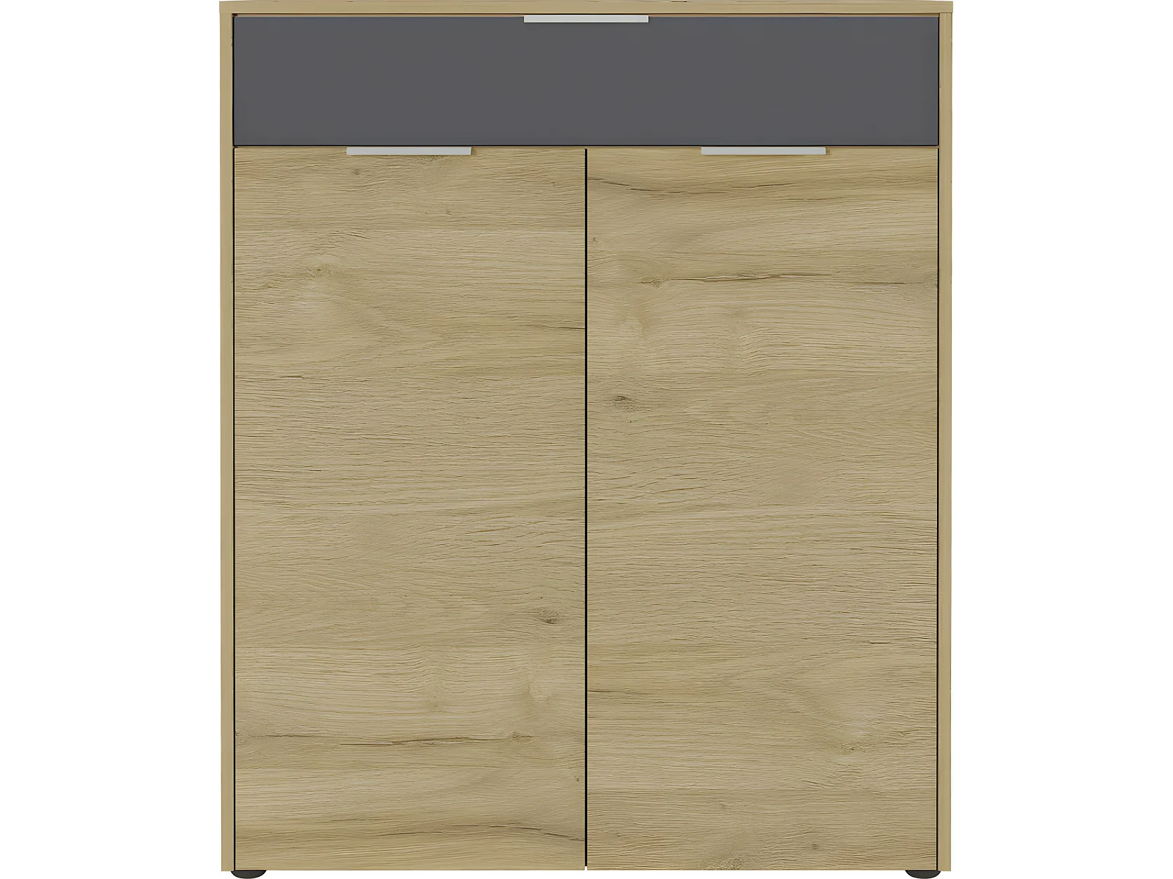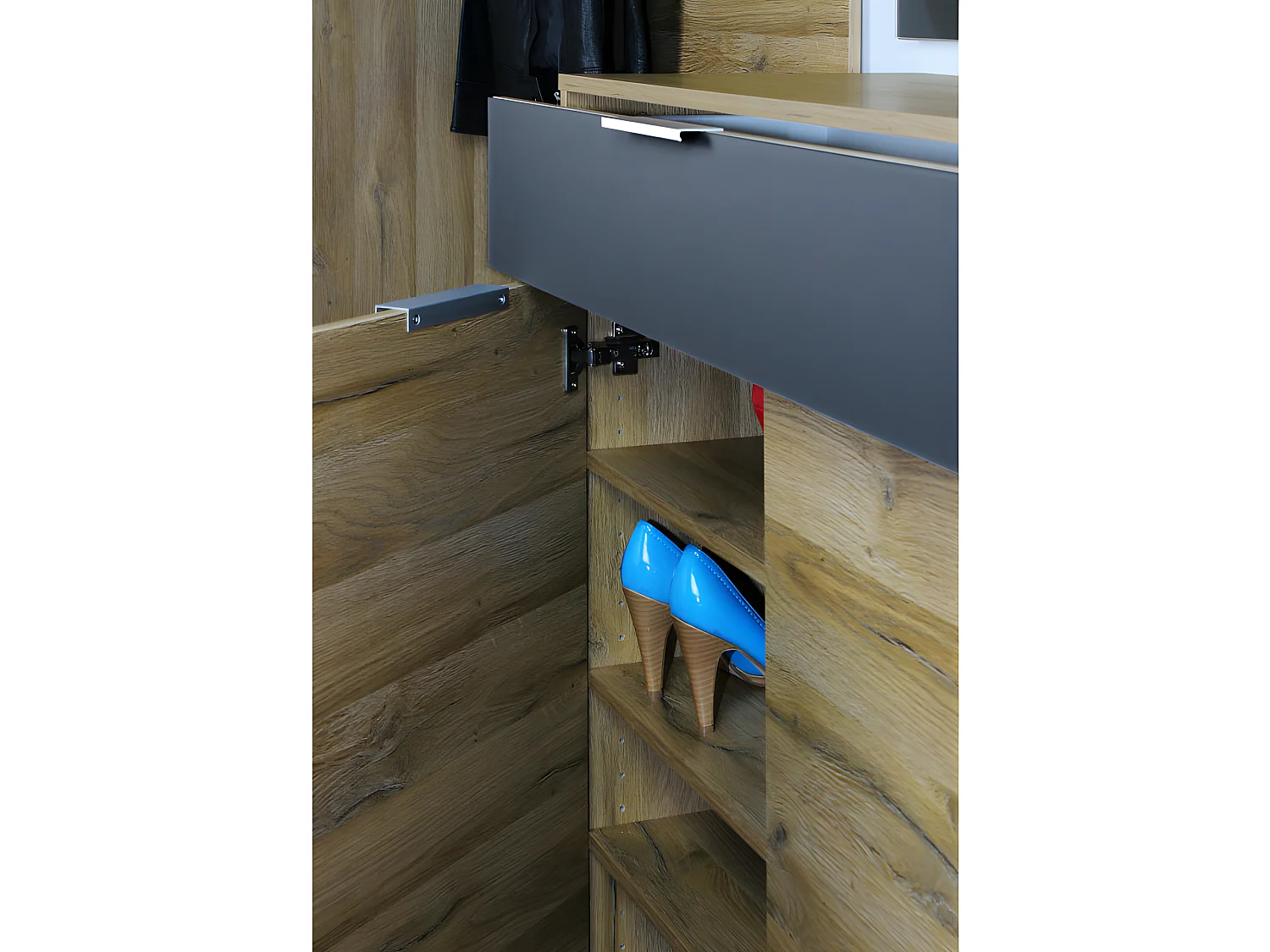 Meuble à chaussures deux portes un tiroir gris graphite et aspect chêne Iowa