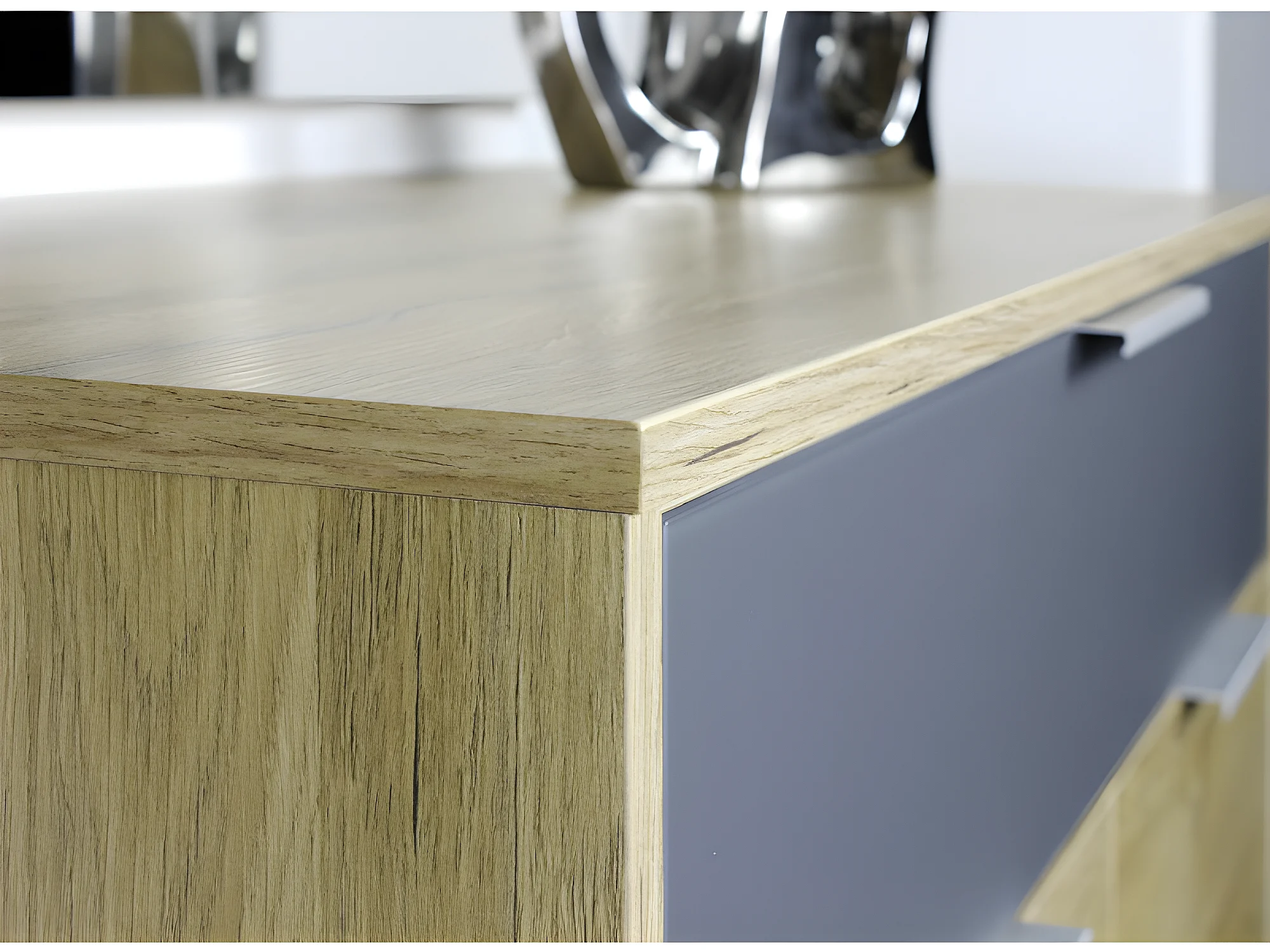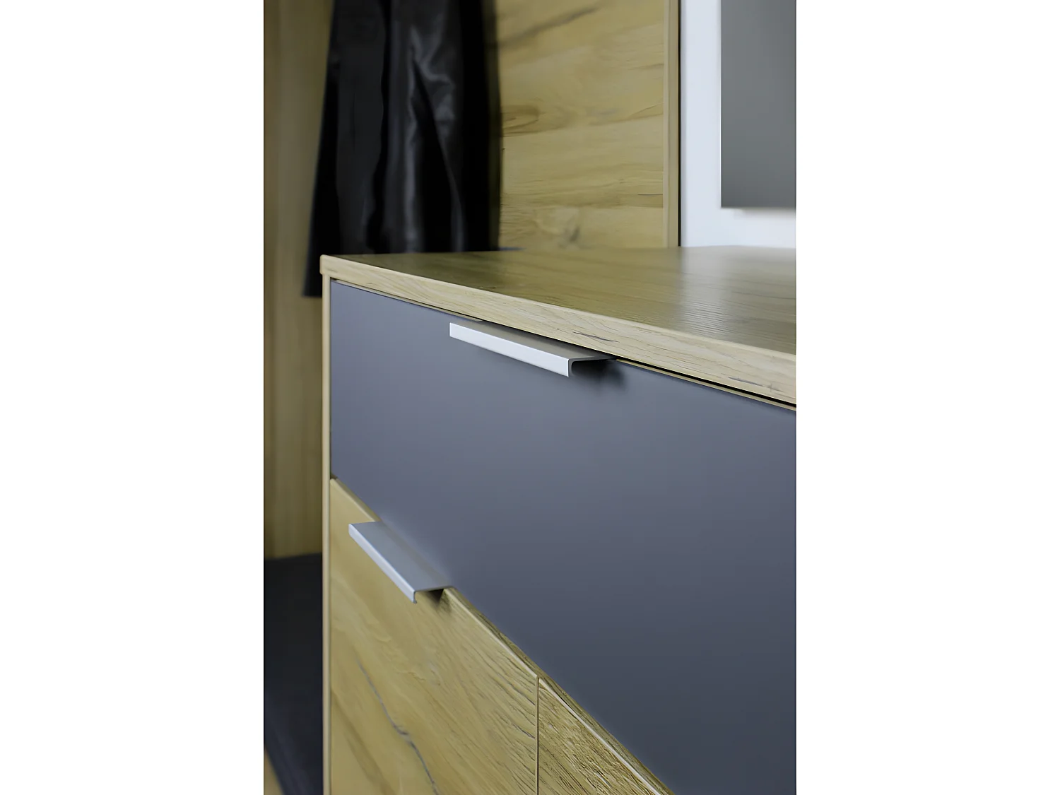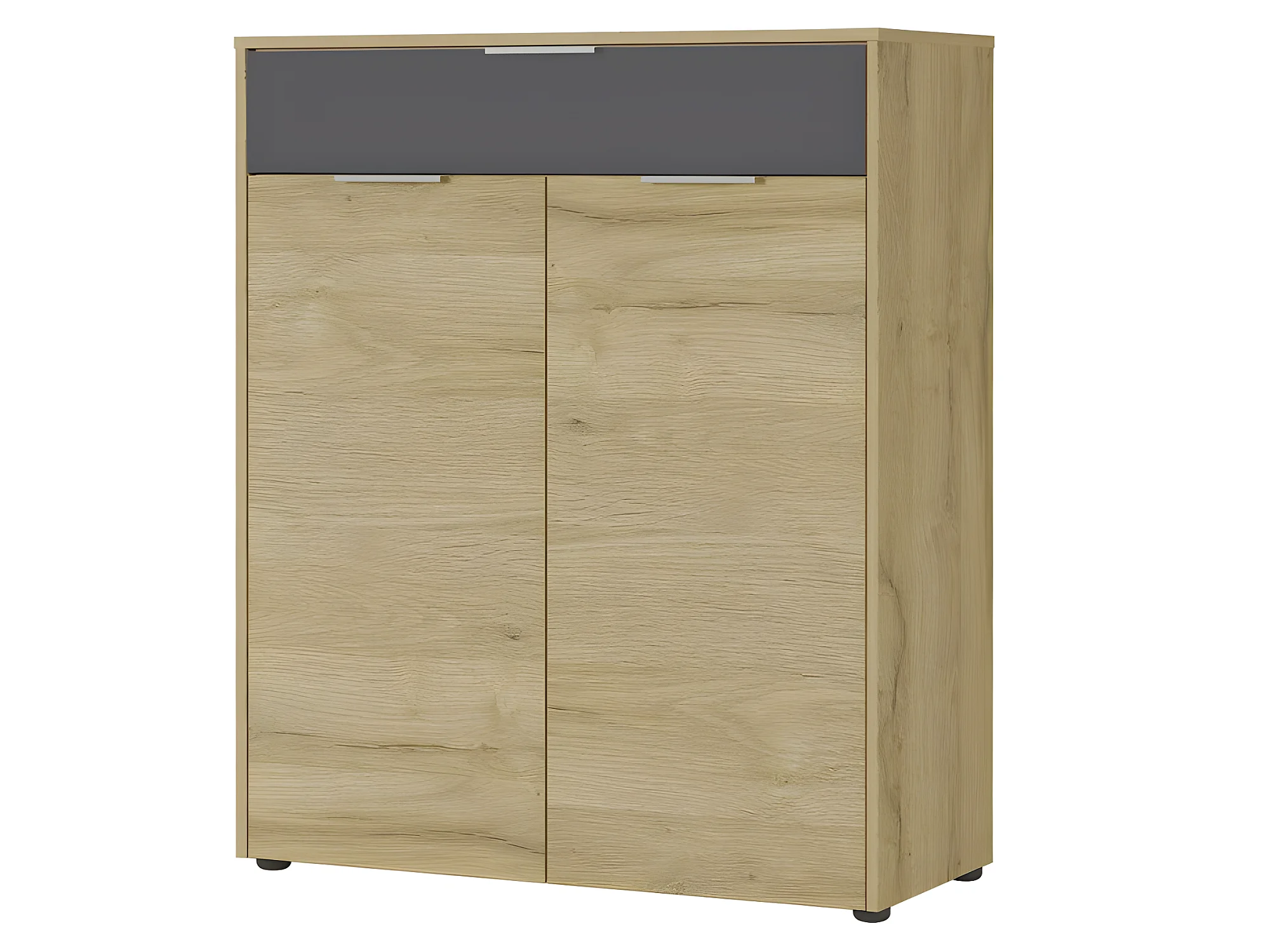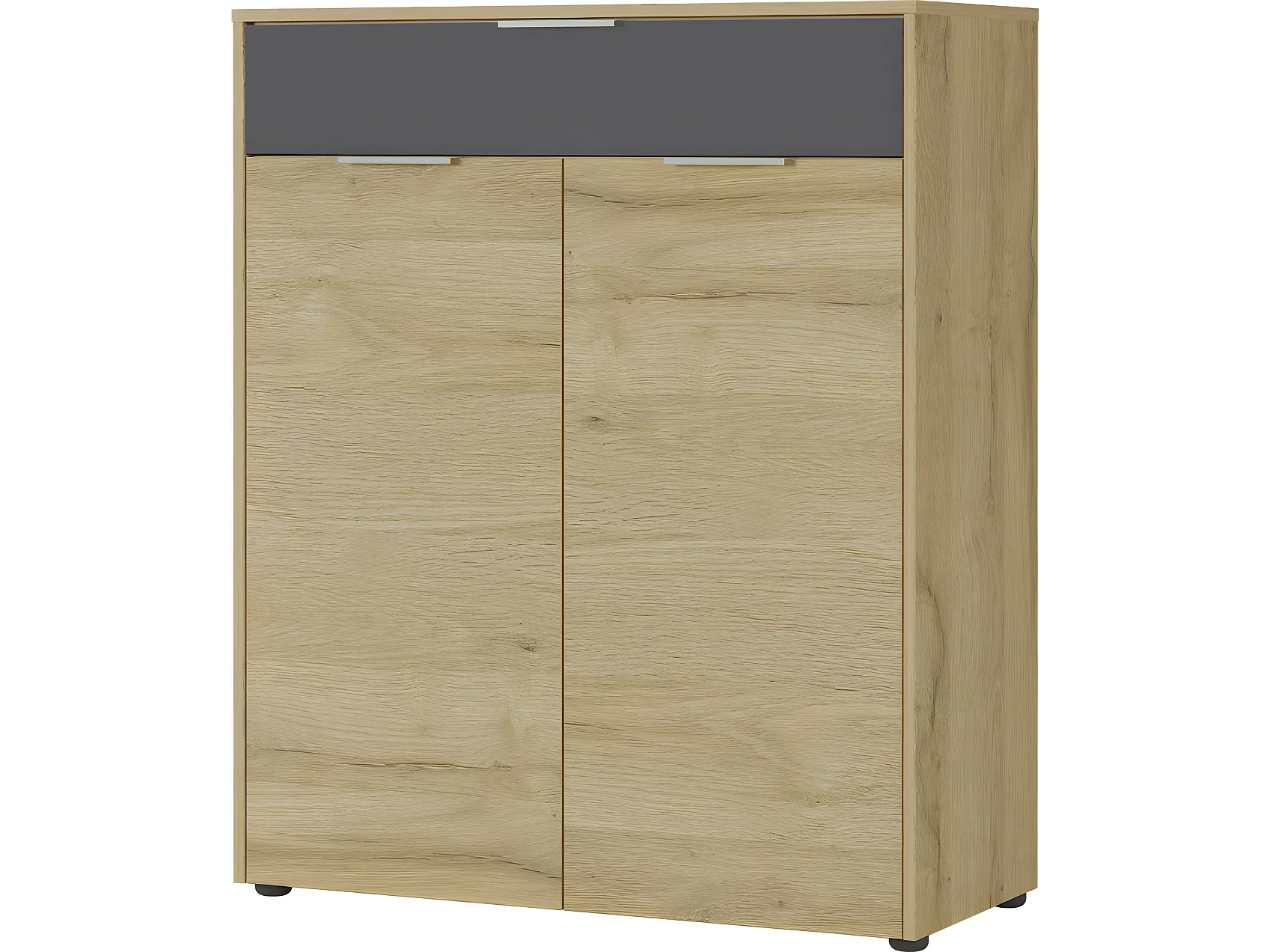 Meuble à chaussures deux portes un tiroir gris graphite et aspect chêne Iowa