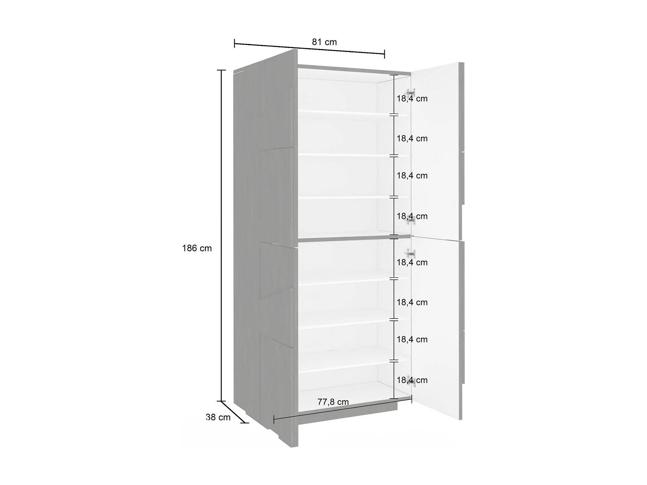 Étagère à chaussures Dlerd, Armoire polyvalente avec 4 portes battantes, Étagère à chaussures d'entrée, 100% Made in Italy, 81x38h167 cm, Ardoise