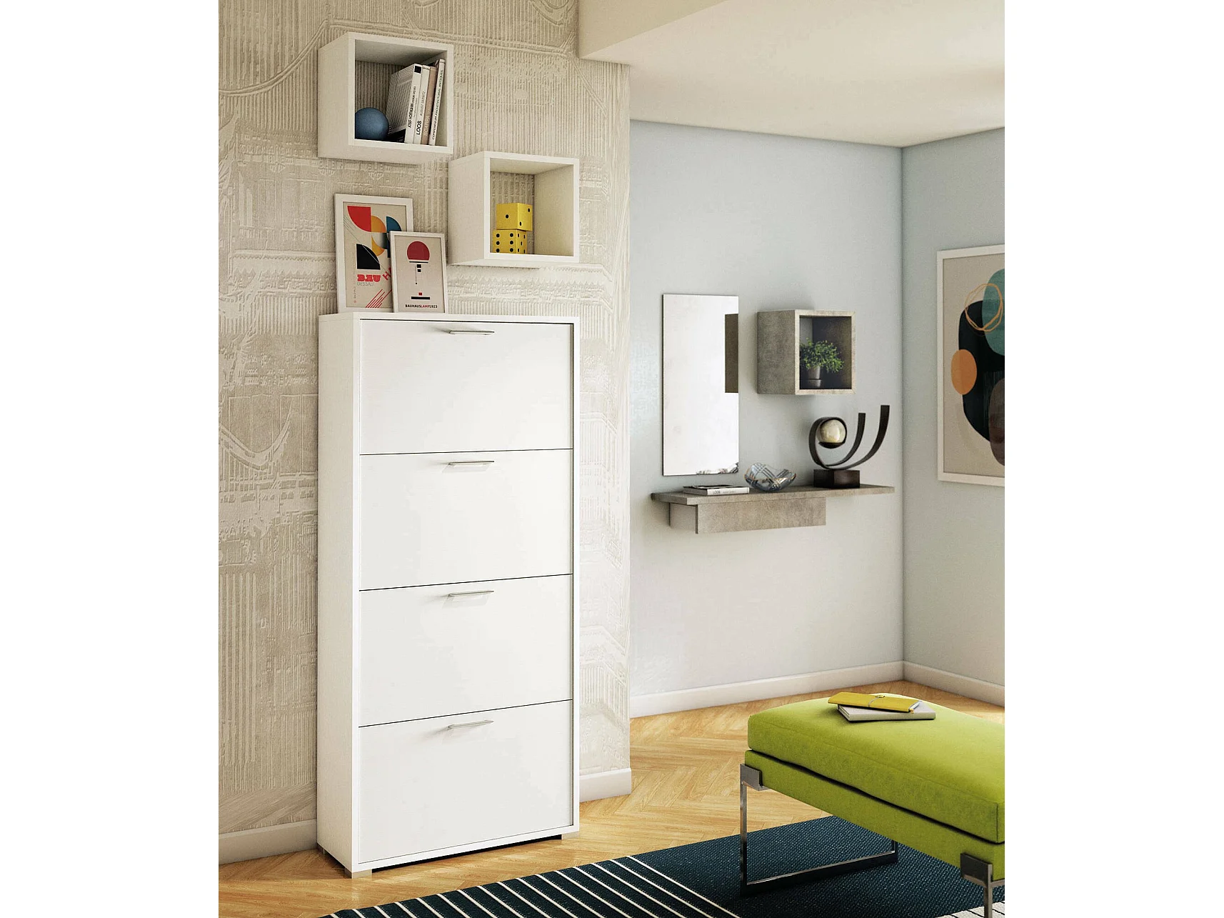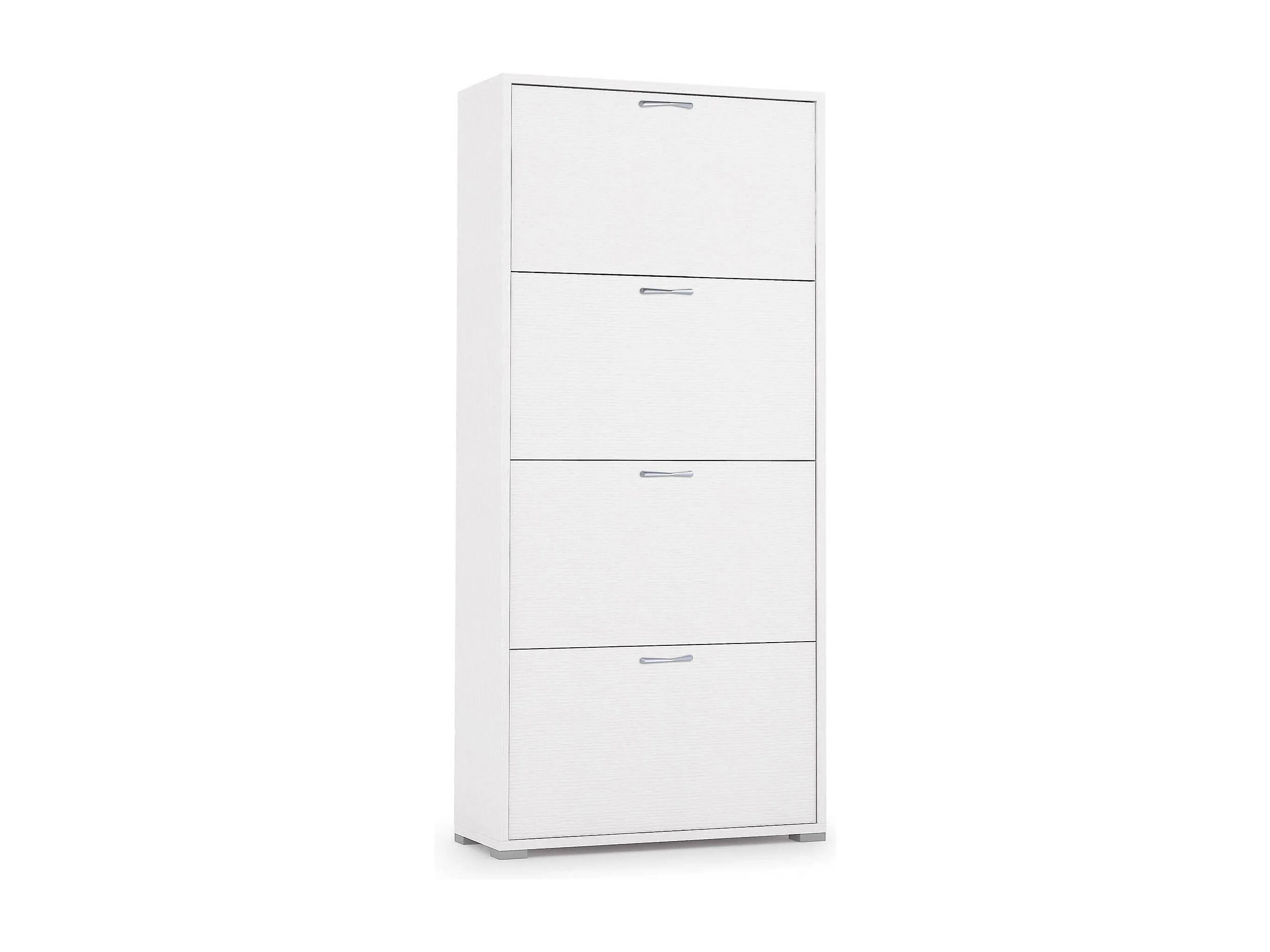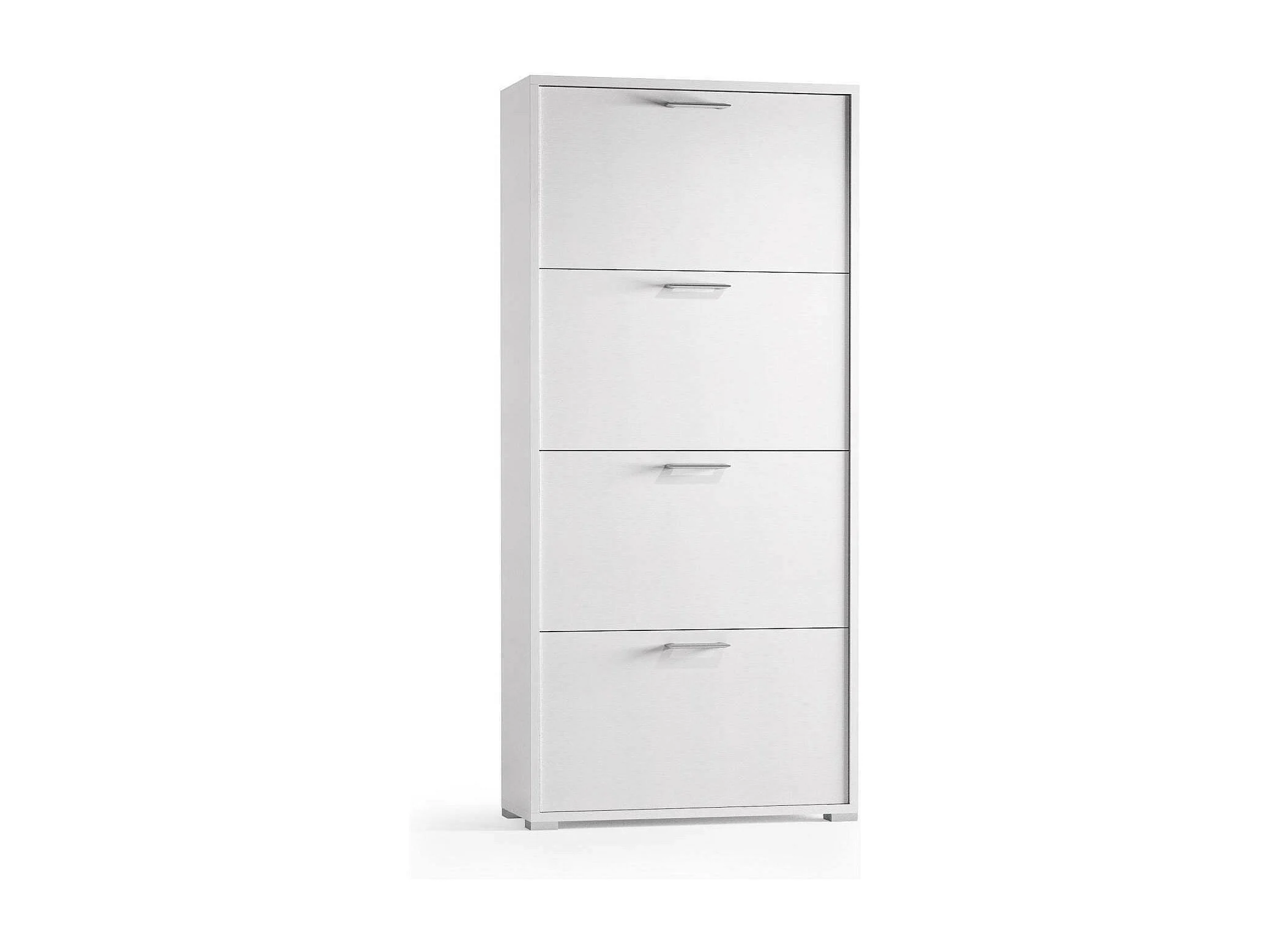 Étagère à chaussures Rose, Meuble d'entrée polyvalent avec 4 portes pliantes, Meuble à chaussures double profondeur, 100% Made in Italy, 67x28h147 cm, Blanc