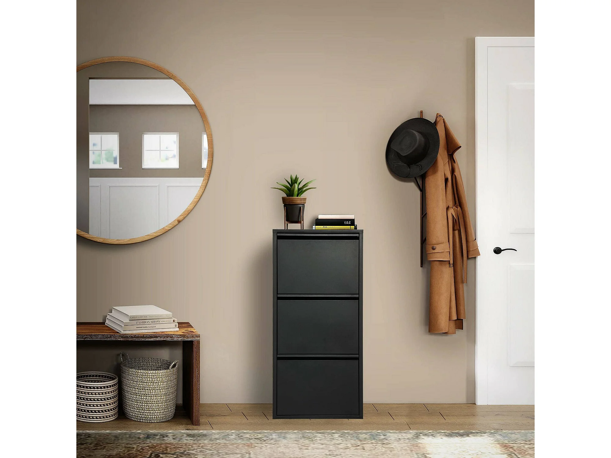 Meuble à chaussures Eliseo, Meuble à chaussures en métal, Armoire d'entrée polyvalente, Rangement pour chaussures, 50x15h104 cm, Noir