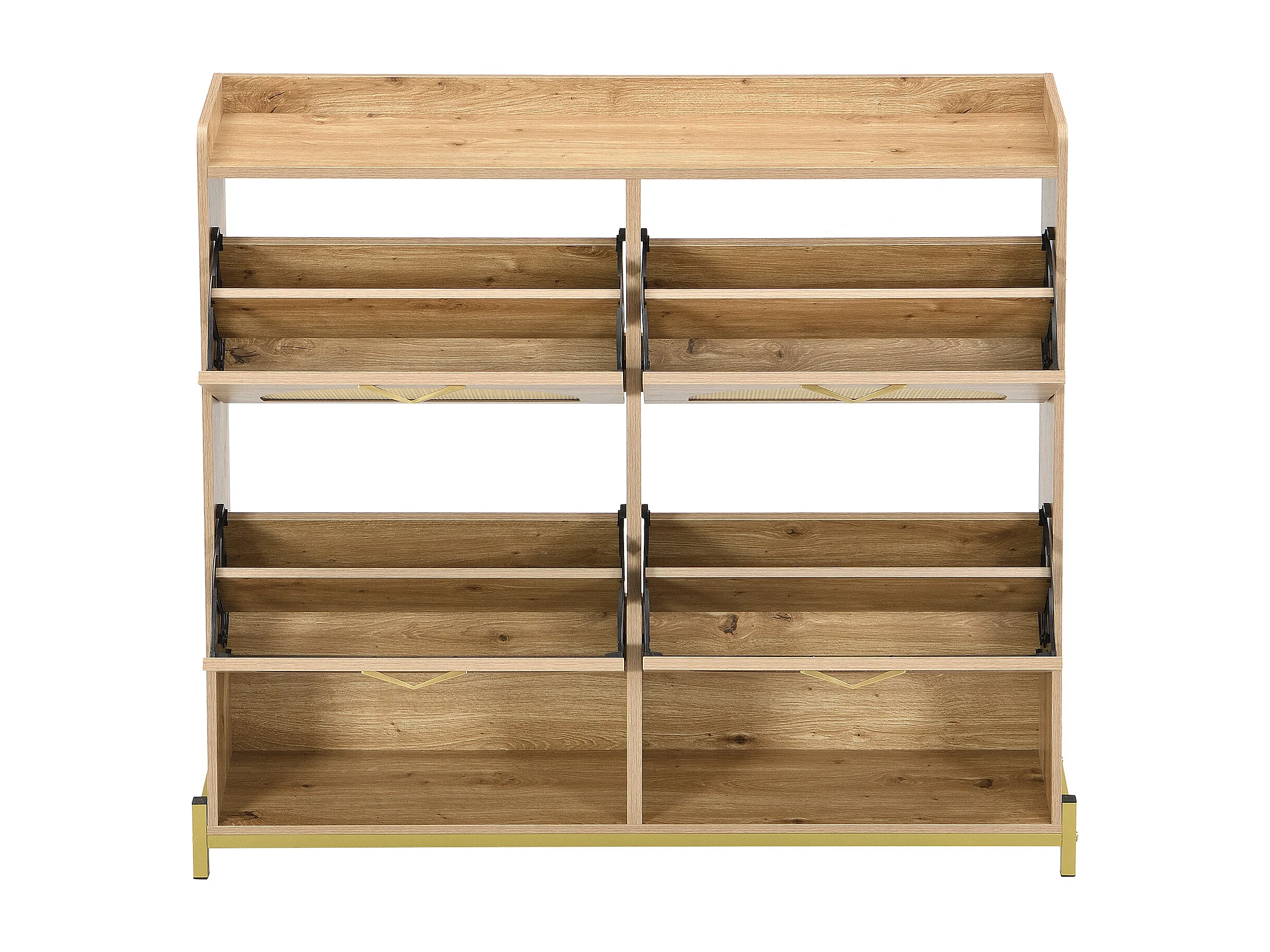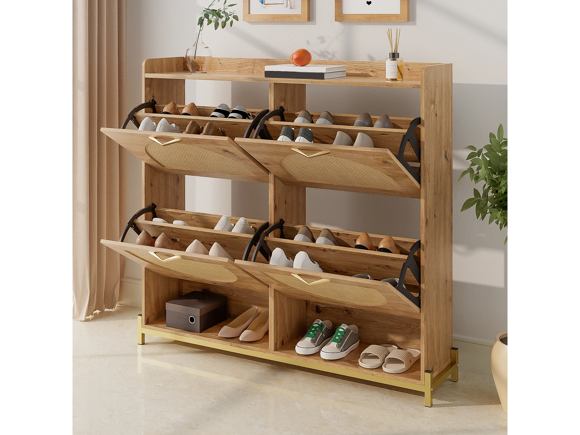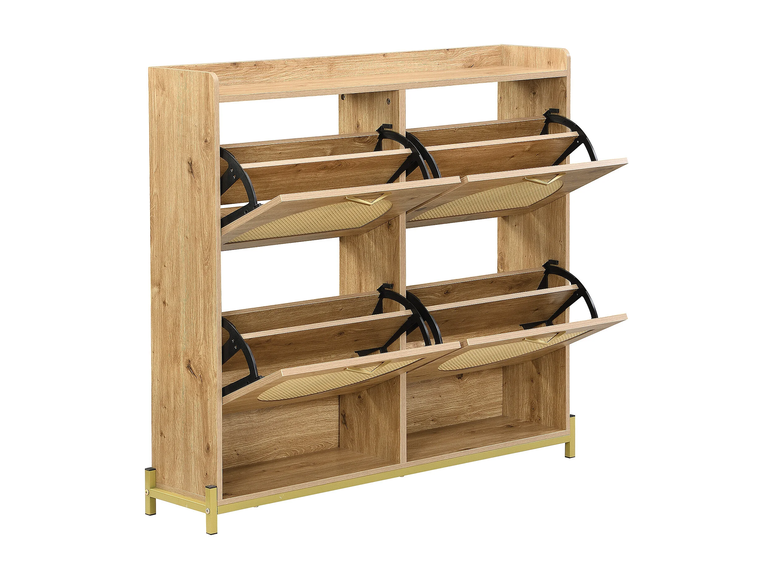 Meuble à chaussures en bois avec 4 portes en rotin - Base en métal - Couleur bois