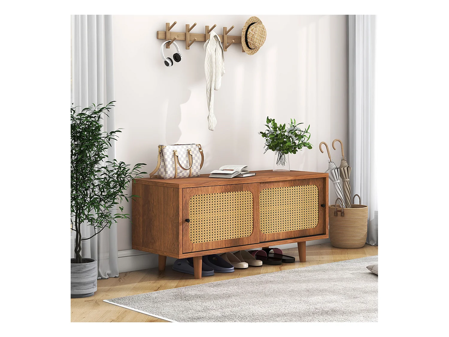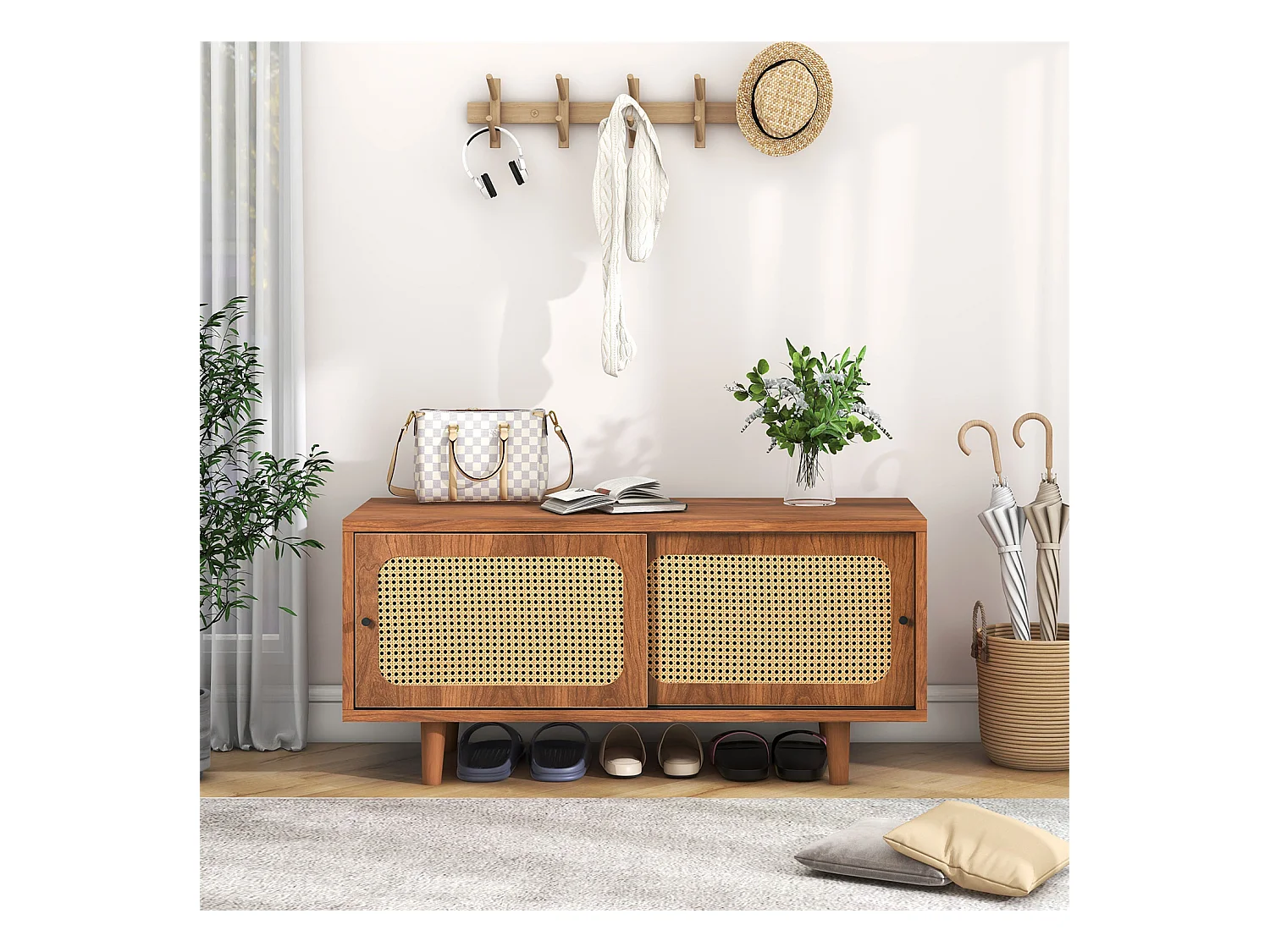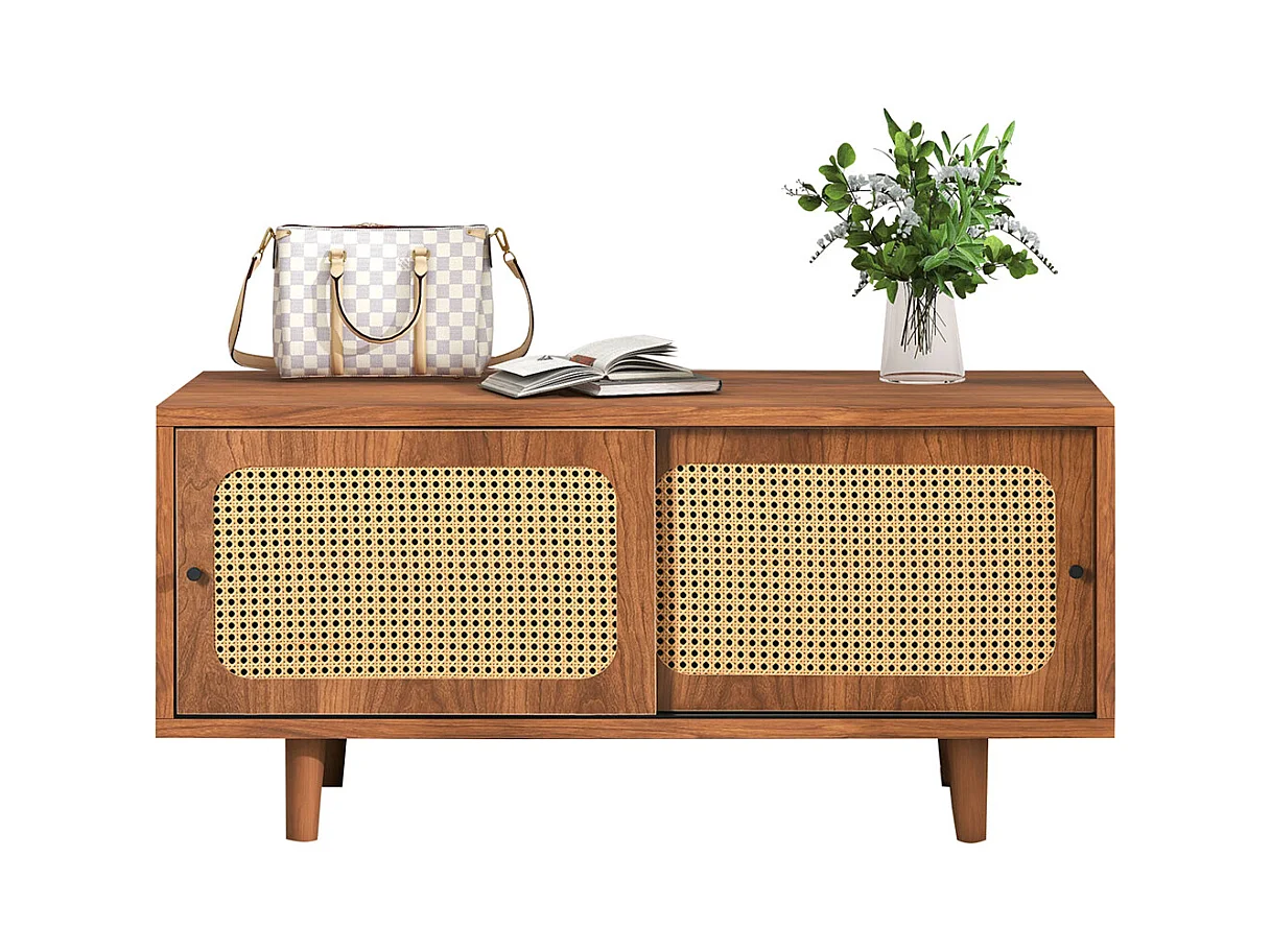 Meuble à chaussures en rotin avec étagères réglables, noyer, 104*40*48 cm