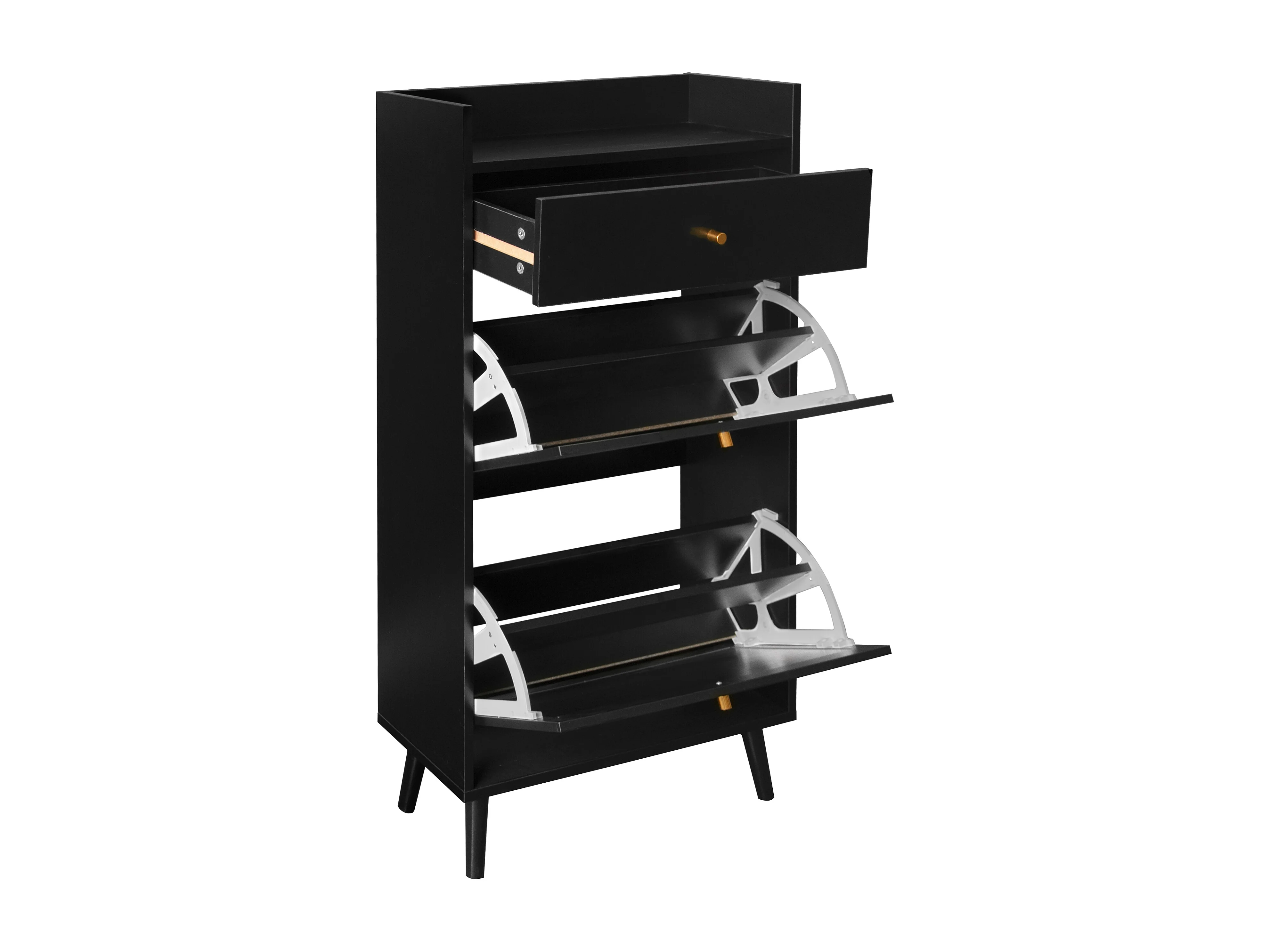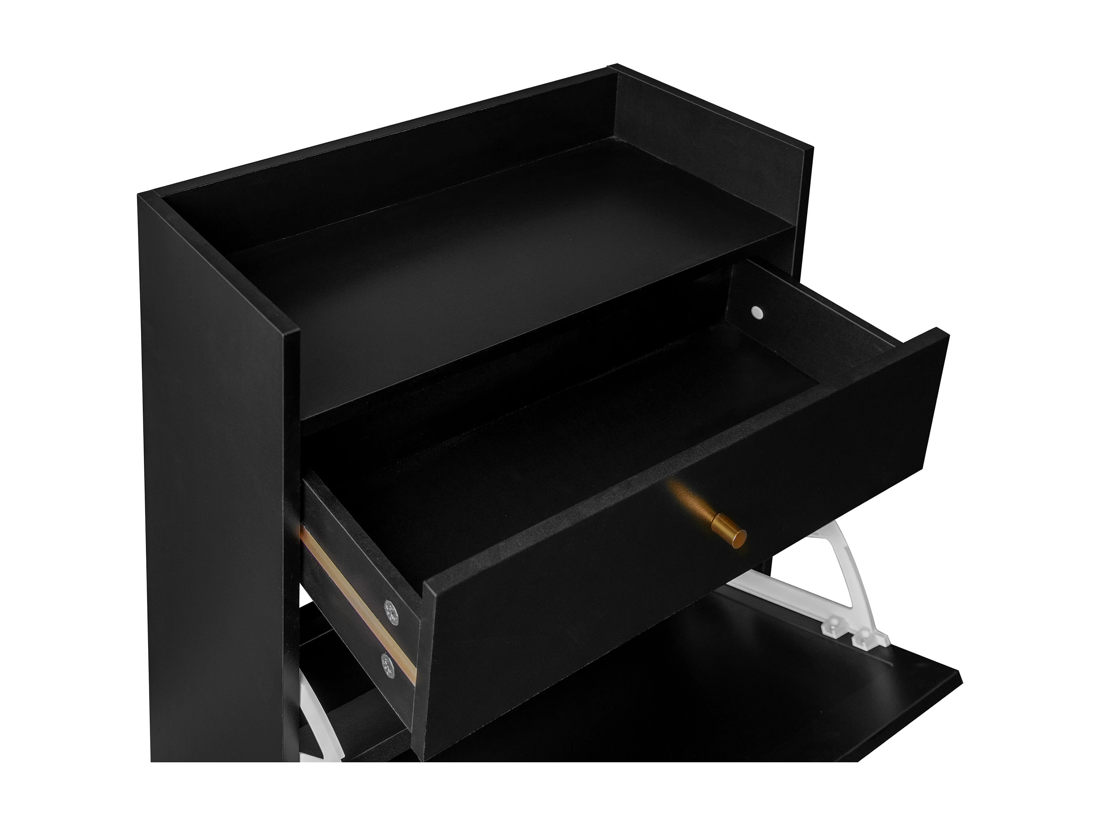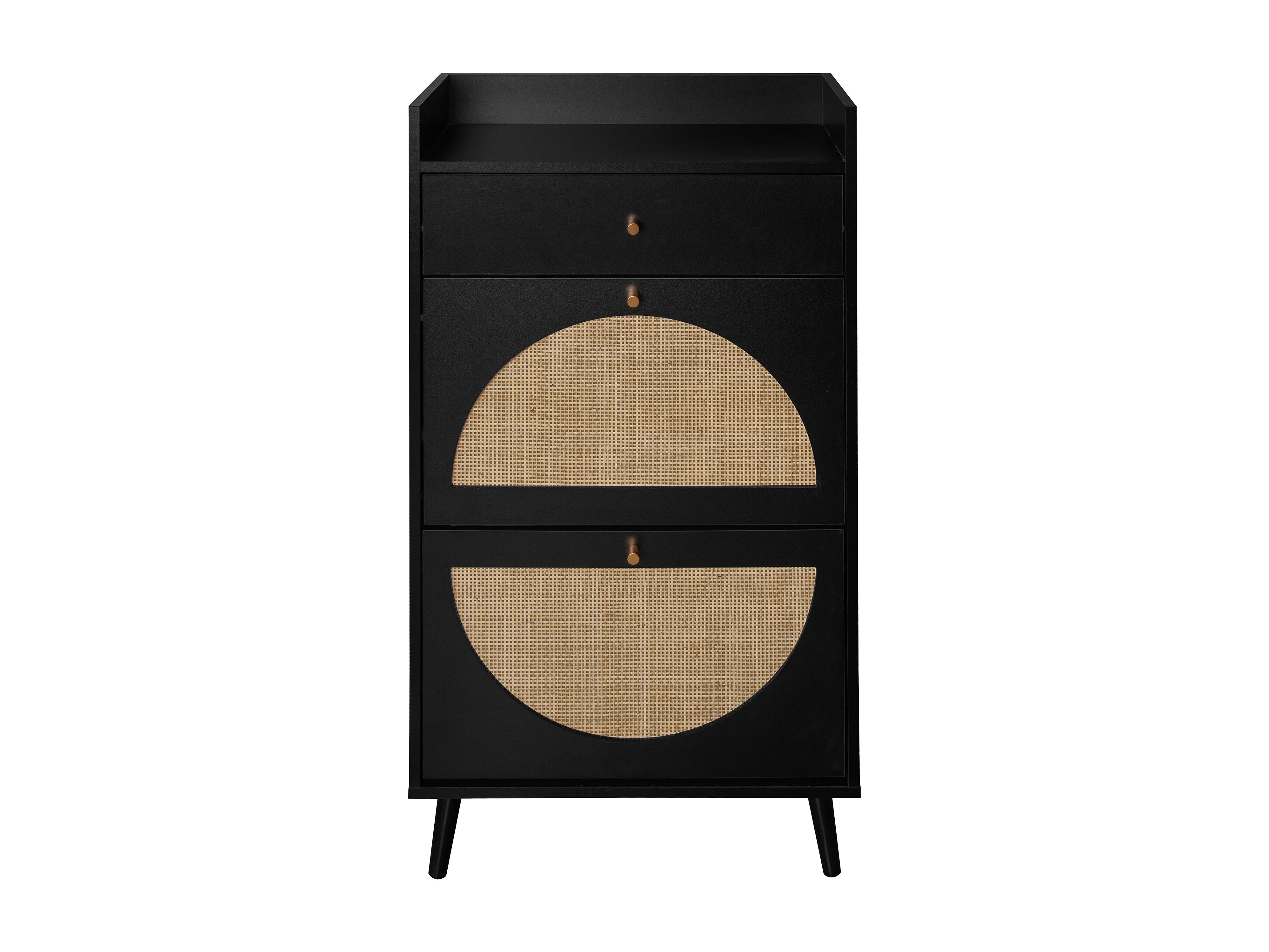 Meuble à chaussures en rotin noir - 2 portes et 1 tiroir