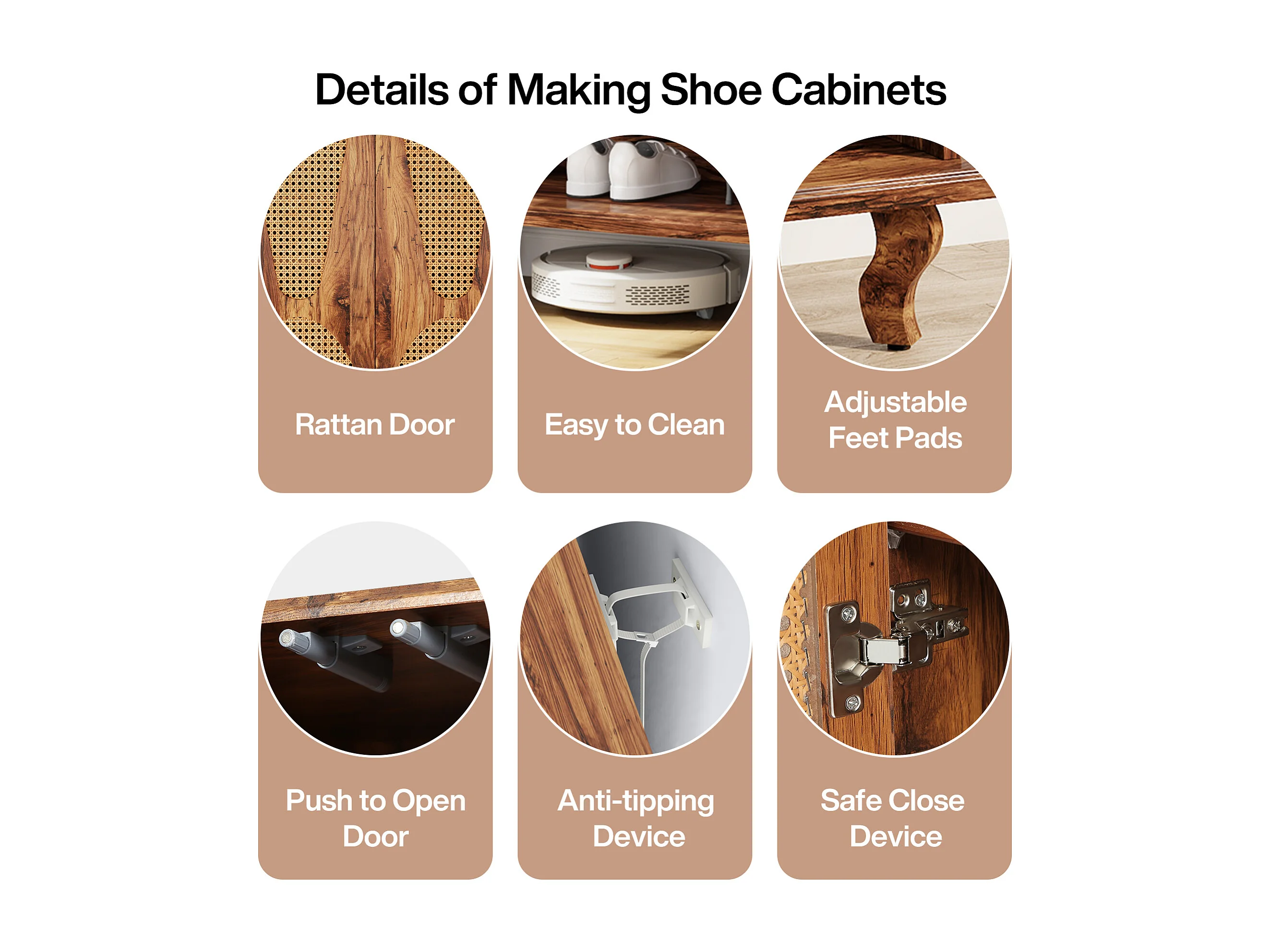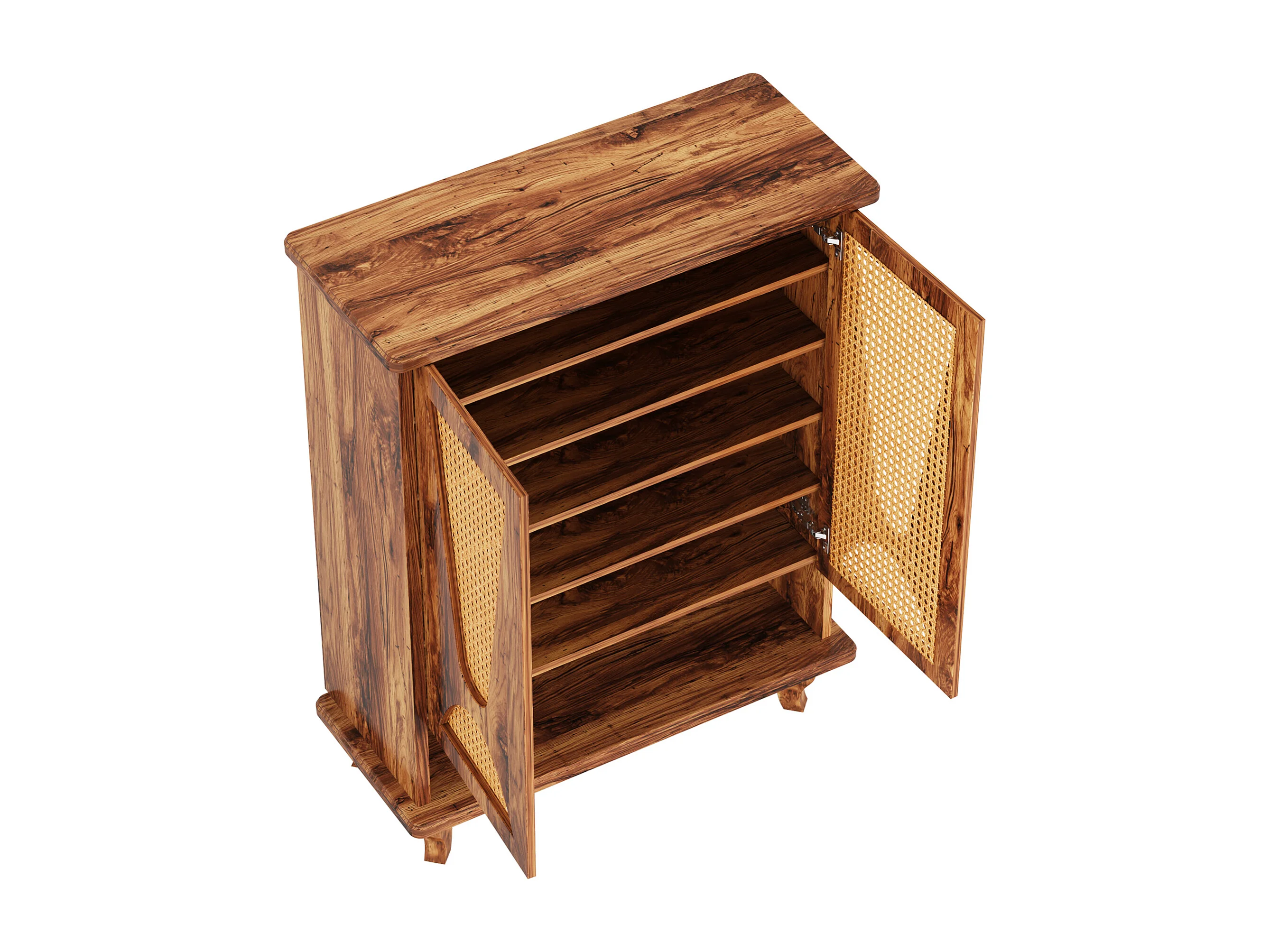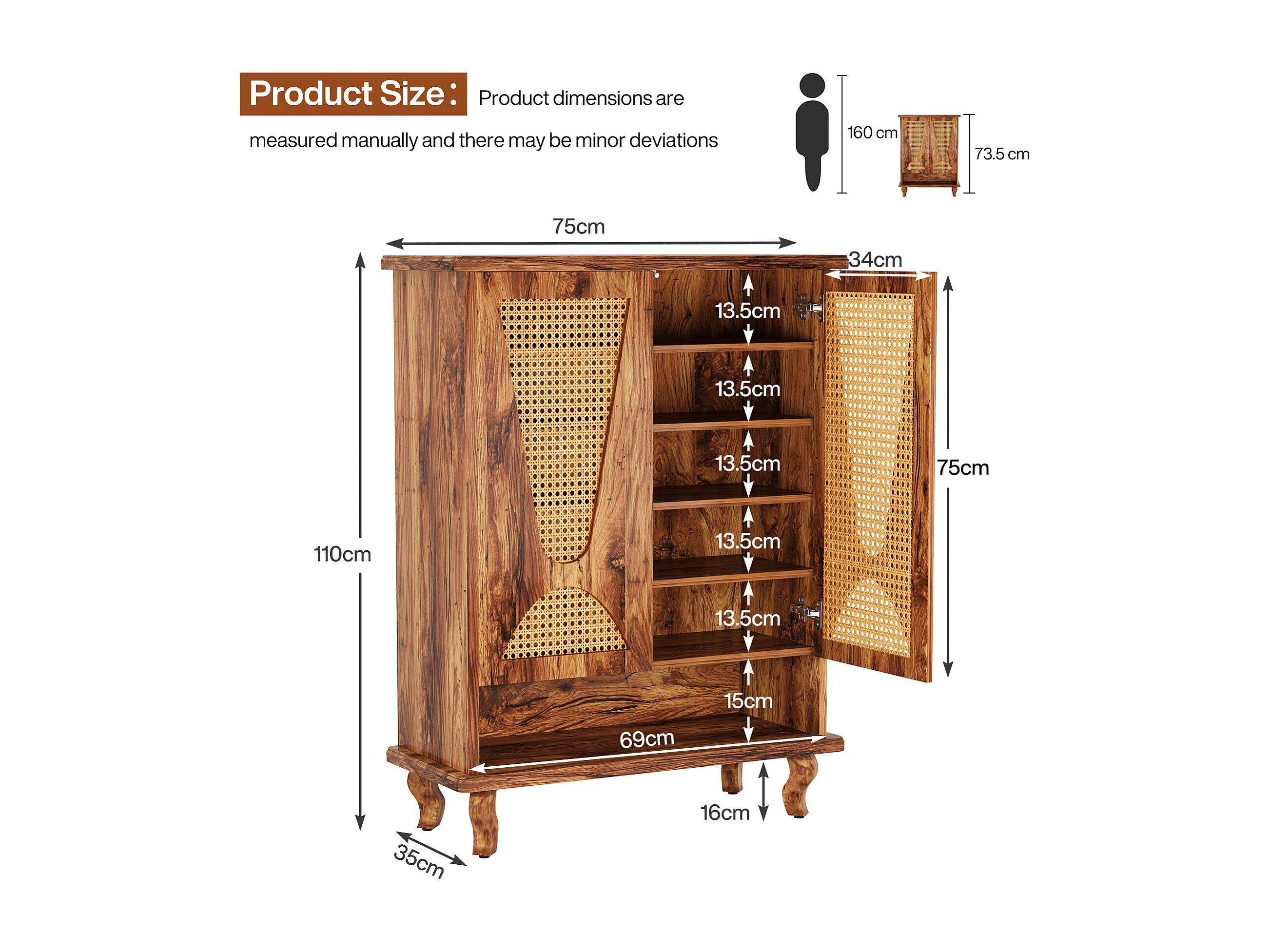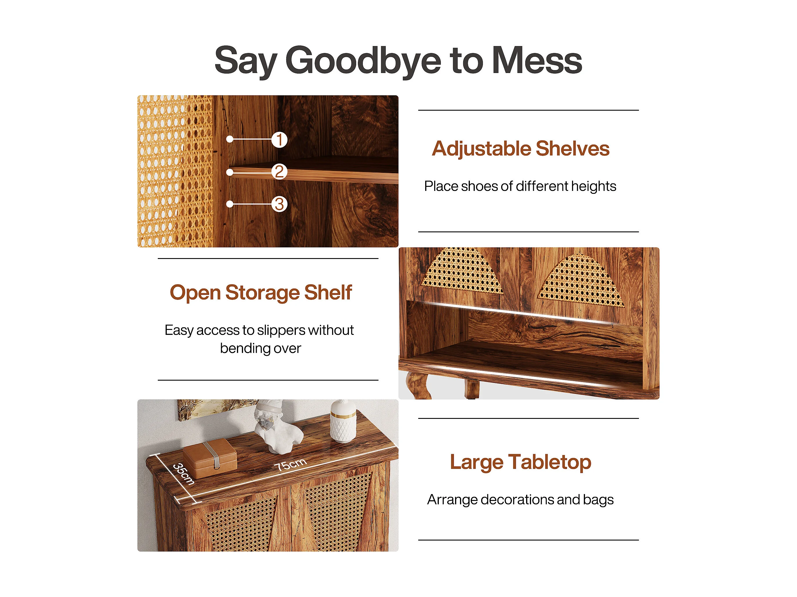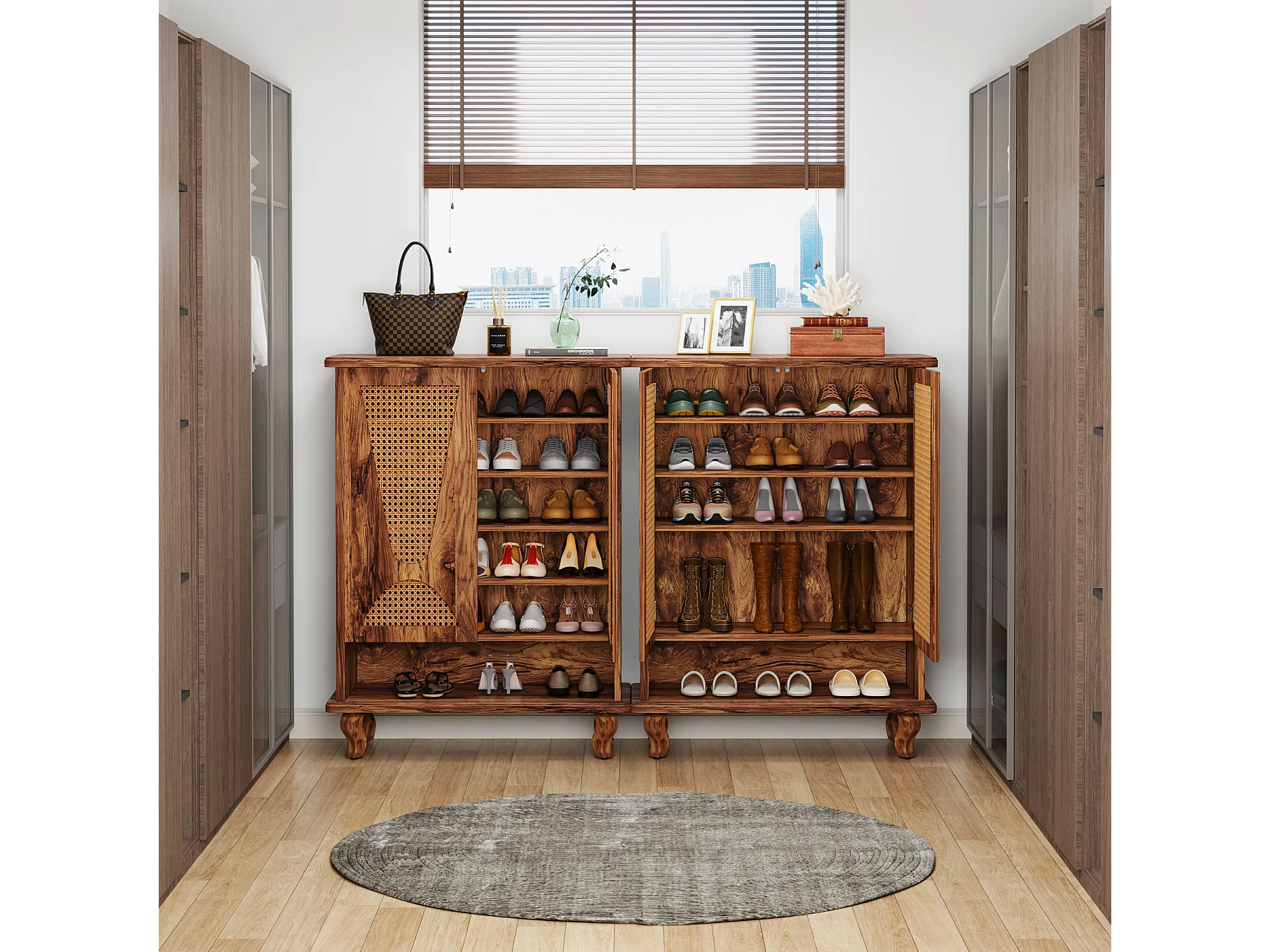 Meuble à chaussures en rotin pour entrée, grand modèle moderne à 5 niveaux, rangement dissimulé pour 25 paires de chaussures