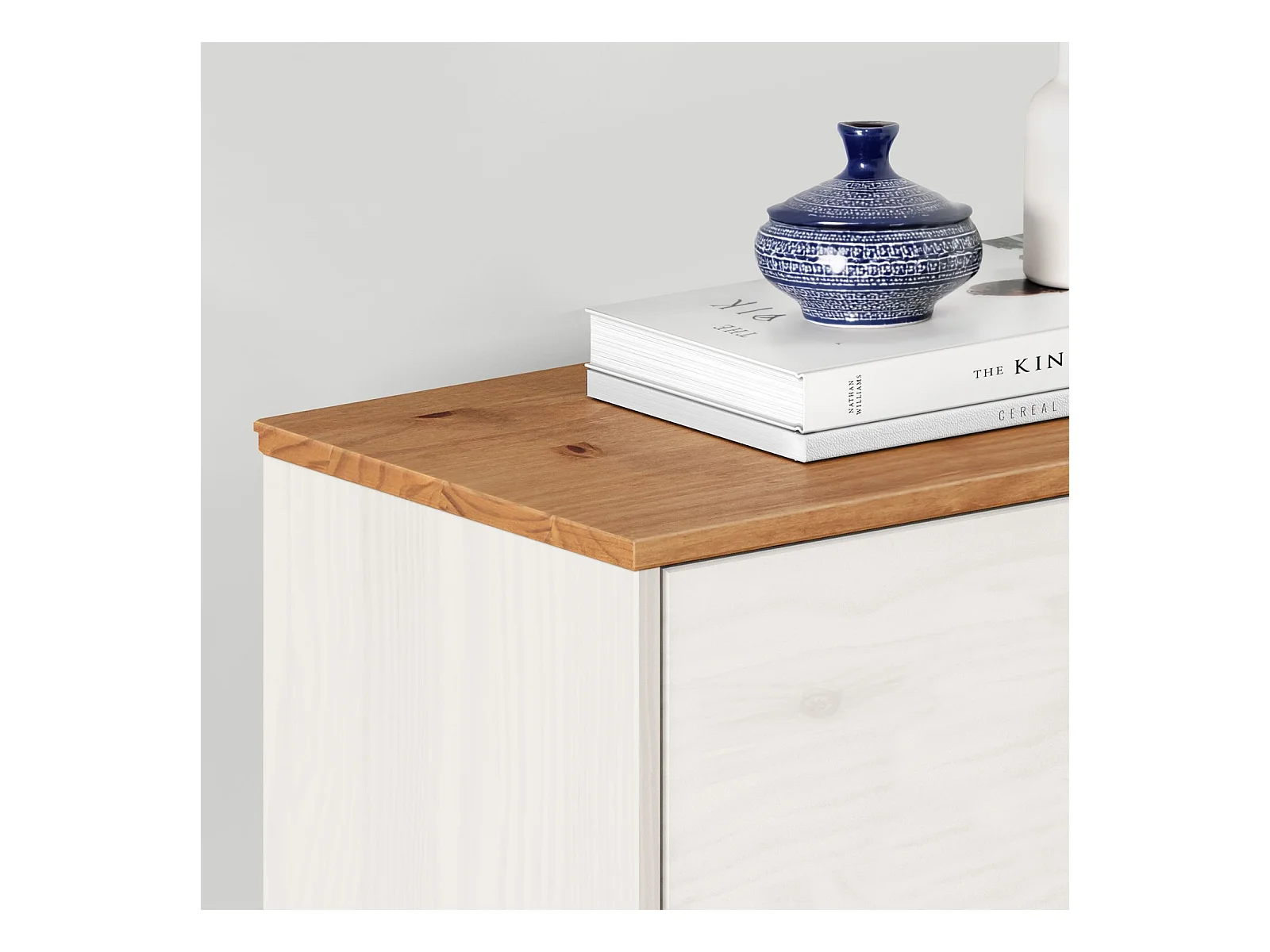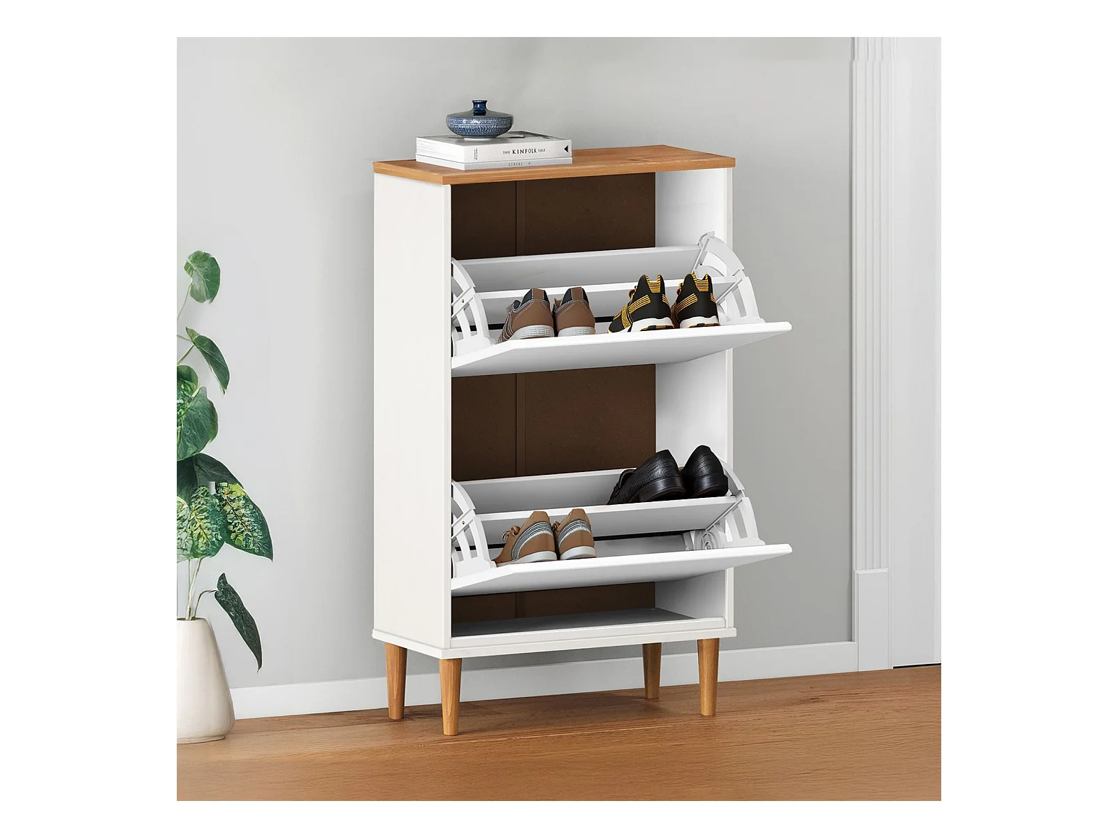 Meubles à chaussures BASIL rangement armoire avec 2 abattants et 1 tiroir, en pin massif lasuré blanc et brun
