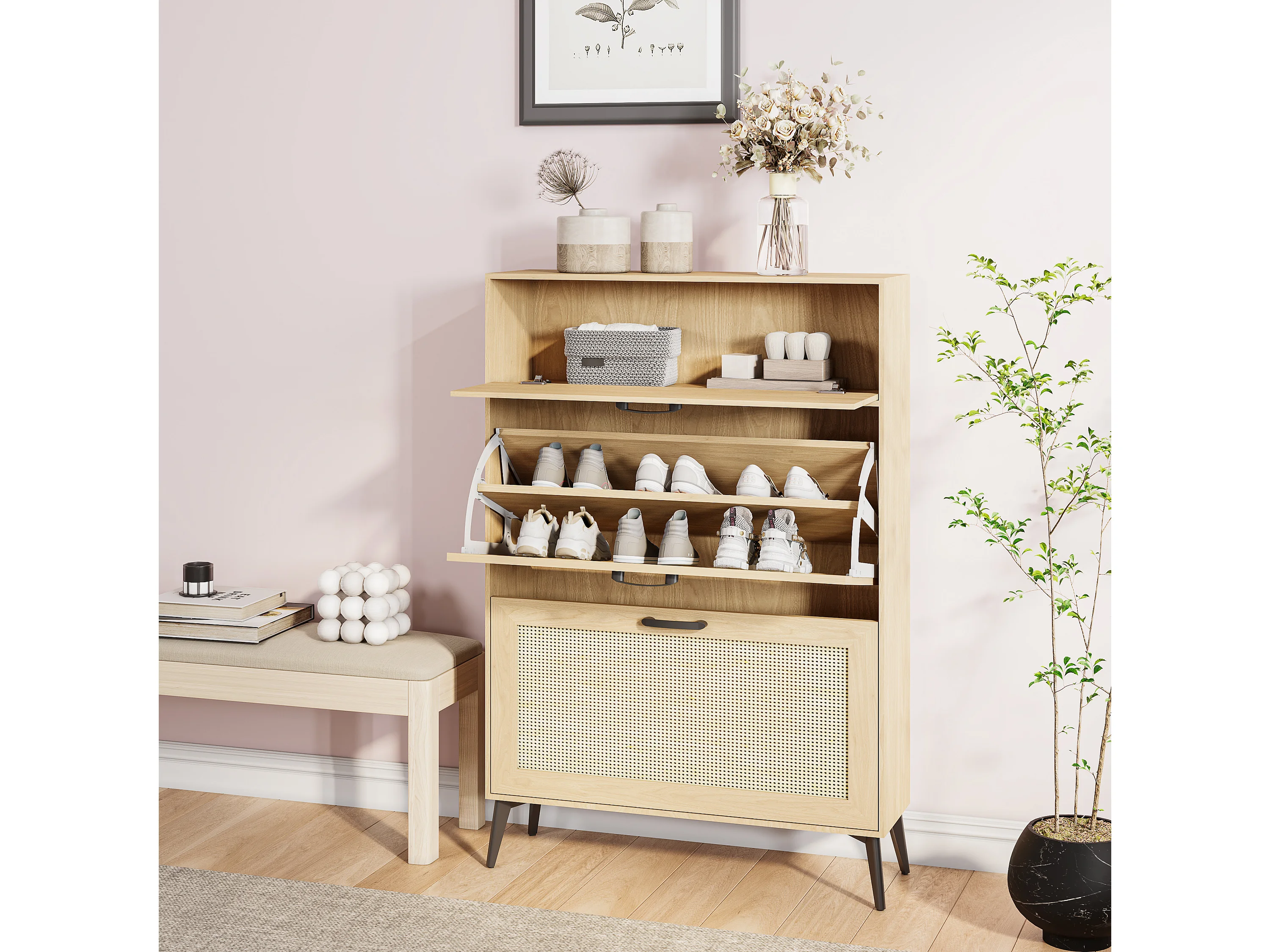 Meuble à Chaussures, 80 x 23 x 114 cm, Armoire à Chaussures en rotin, Meuble d'entrée Rangement,Bois