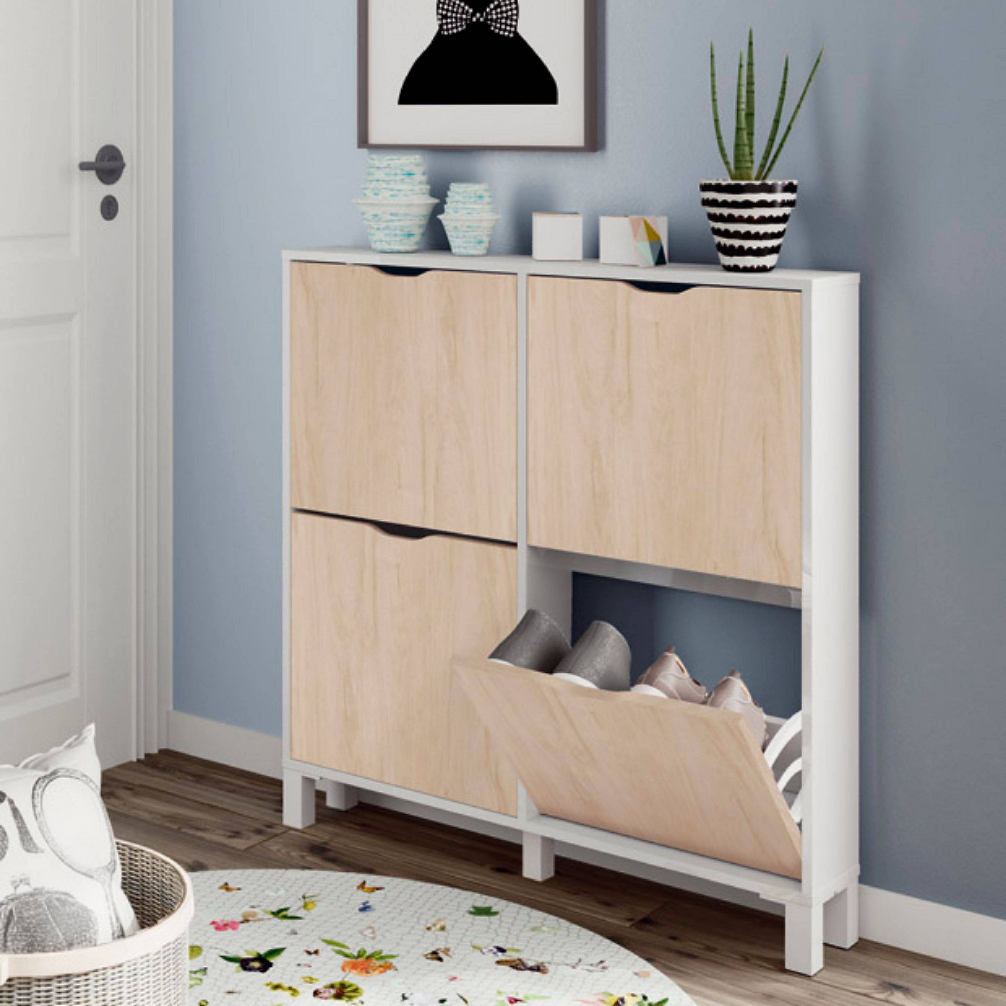 Meuble à chaussures étroit pour couloir en chêne blanc Mary 98 x 97 x 17 cm