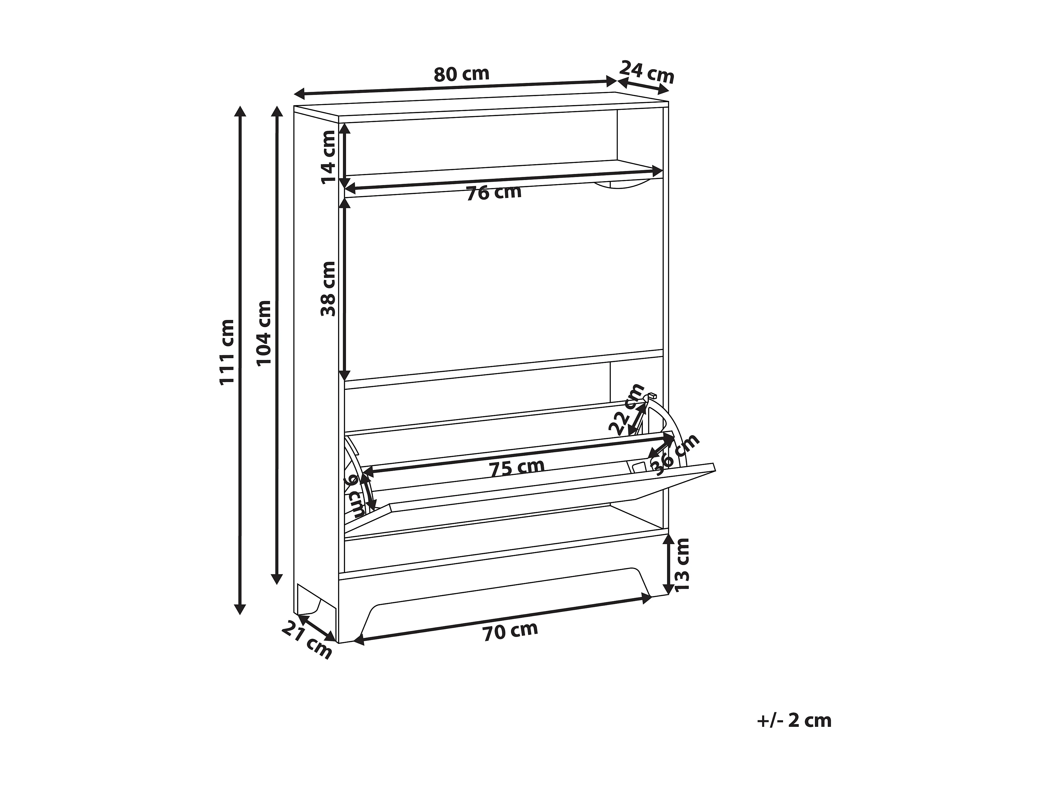 Meuble à chaussures avec 2 tiroirs à rabat, meuble de rangement, 20 paires d'armoires , 80x24x110 cm
