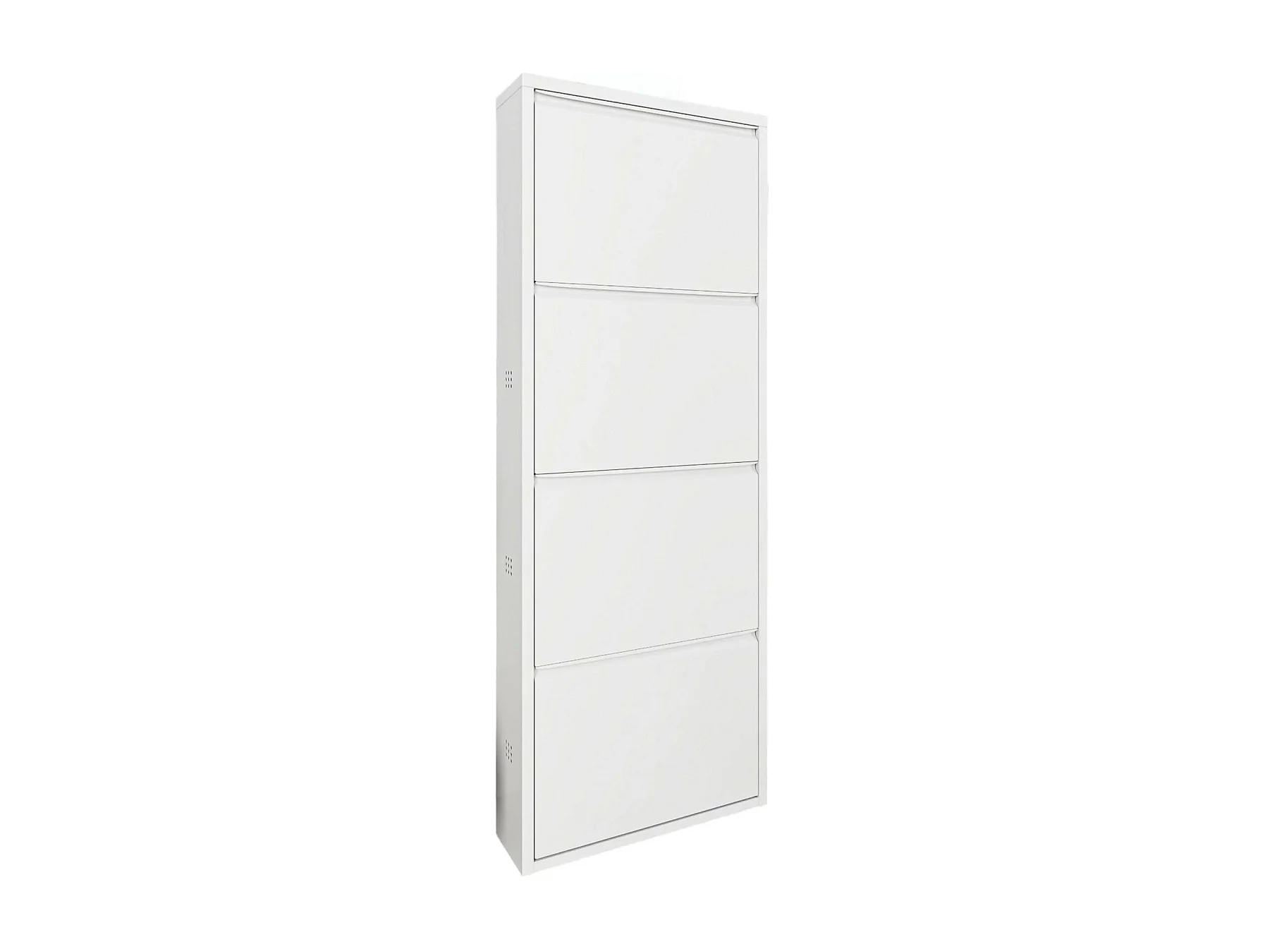 Pisa Armoire à chaussures à 5 rabats/portes en métal, blanc.