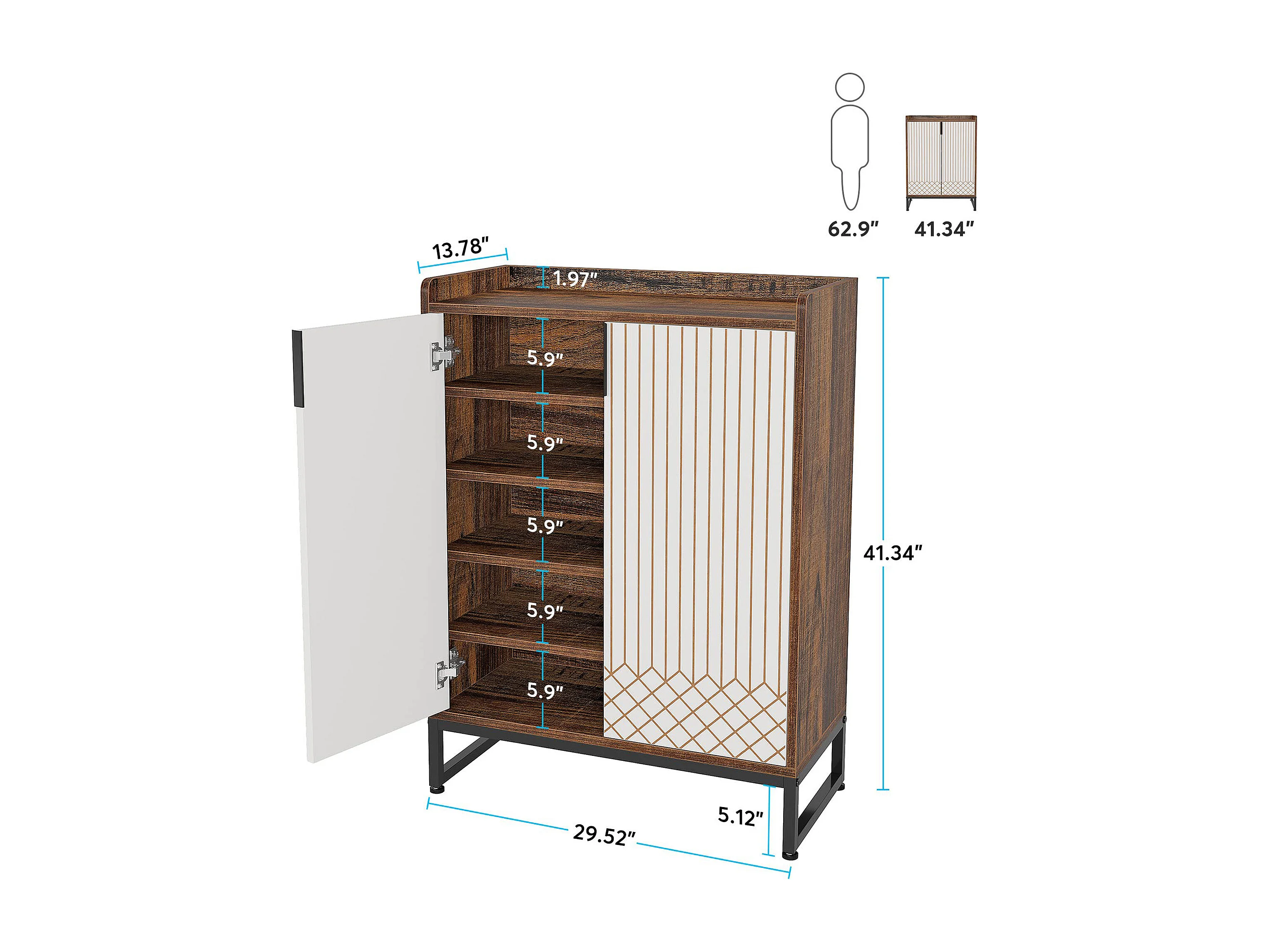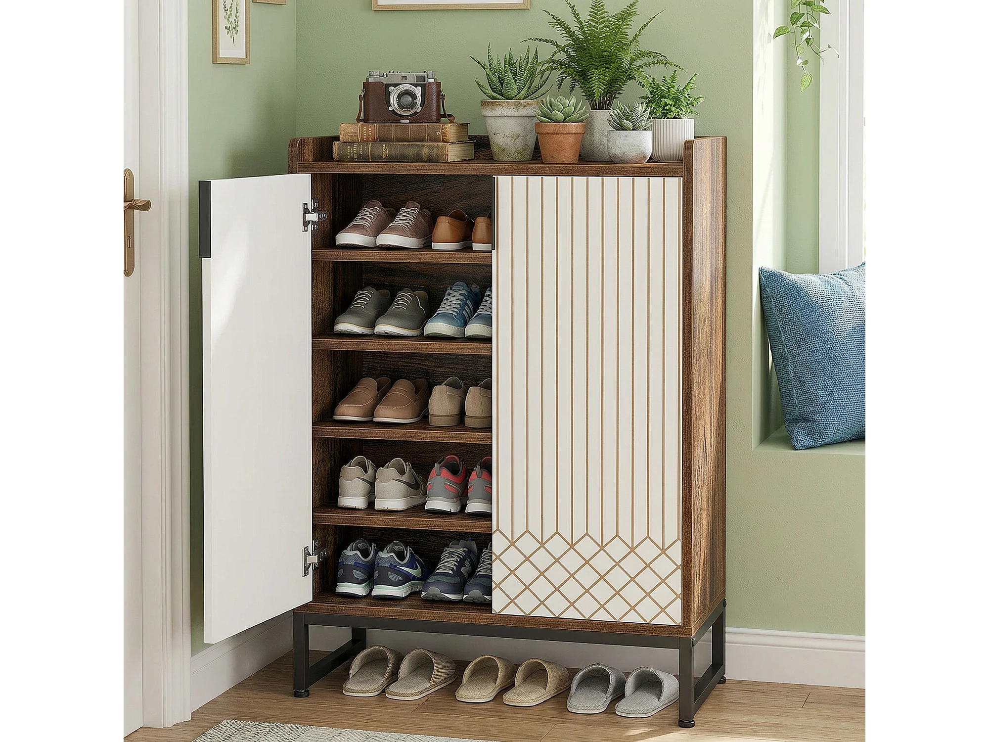 Meuble à Chaussures Grande Capacité 25 Paires– Armoire Étagère avec Portes et Cadre Métal Doré, Blanc et Marron, pour Entrée et Couloir, 73x35x105 cm