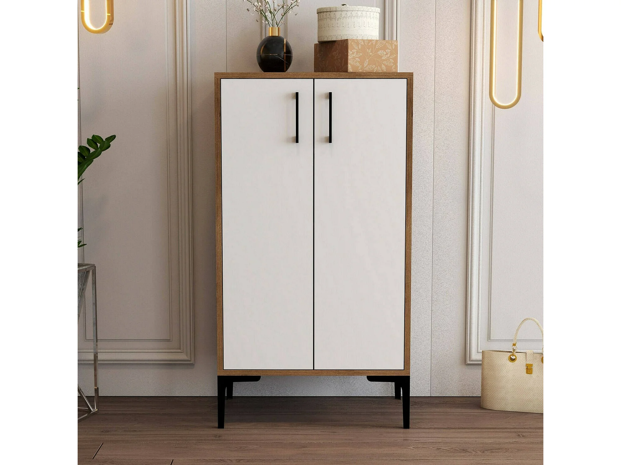 Meuble à chaussures Helios, Meuble à chaussures, Armoire d'entrée polyvalente, Rangement pour chaussures, 60x35h111 cm, Noyer et Blanc