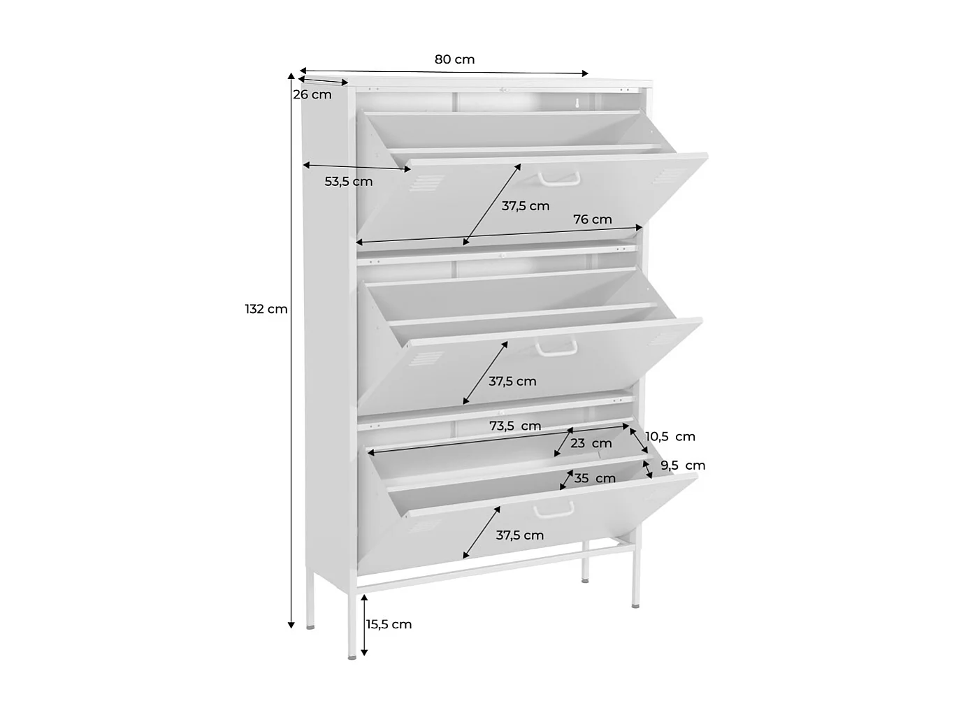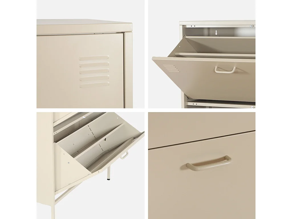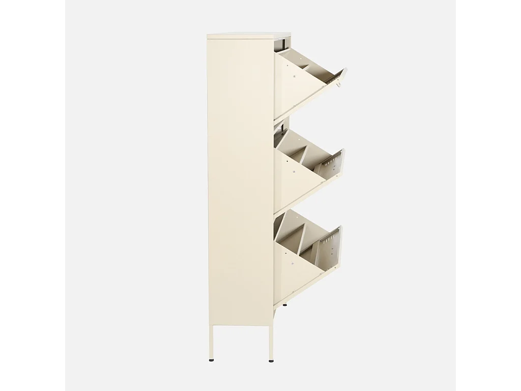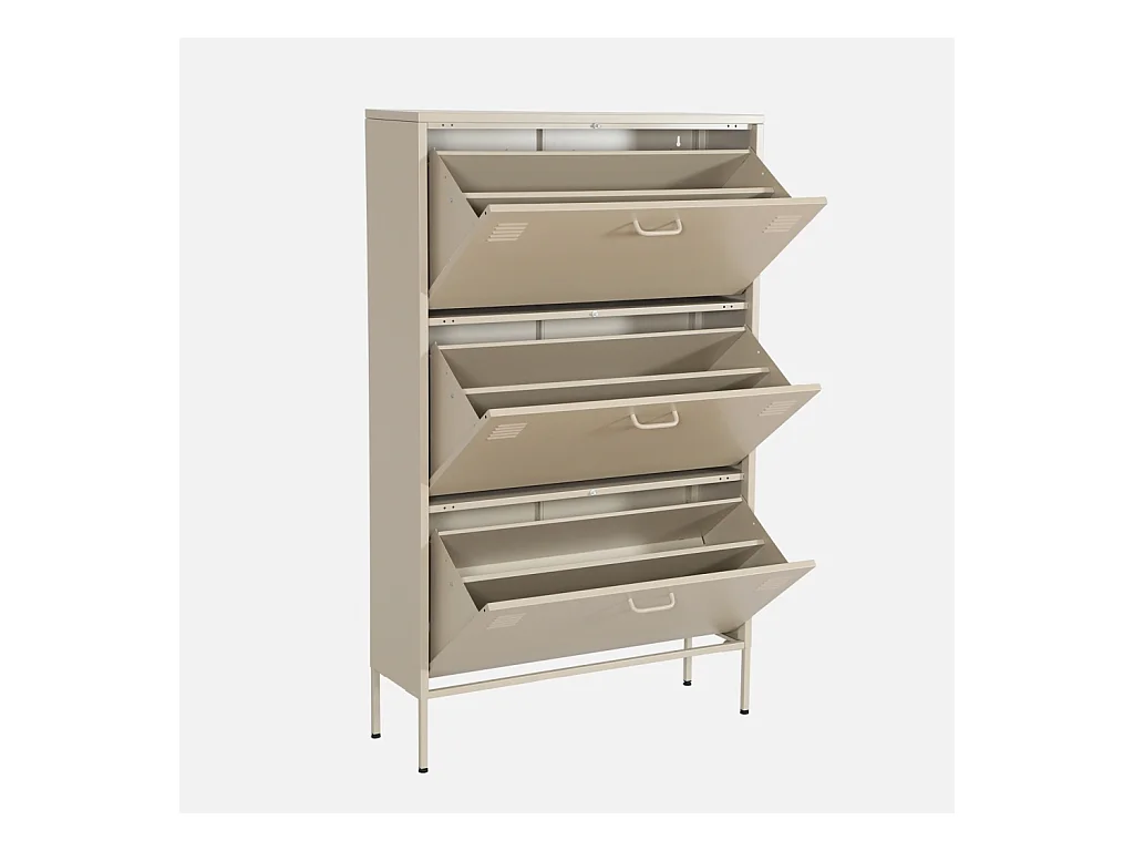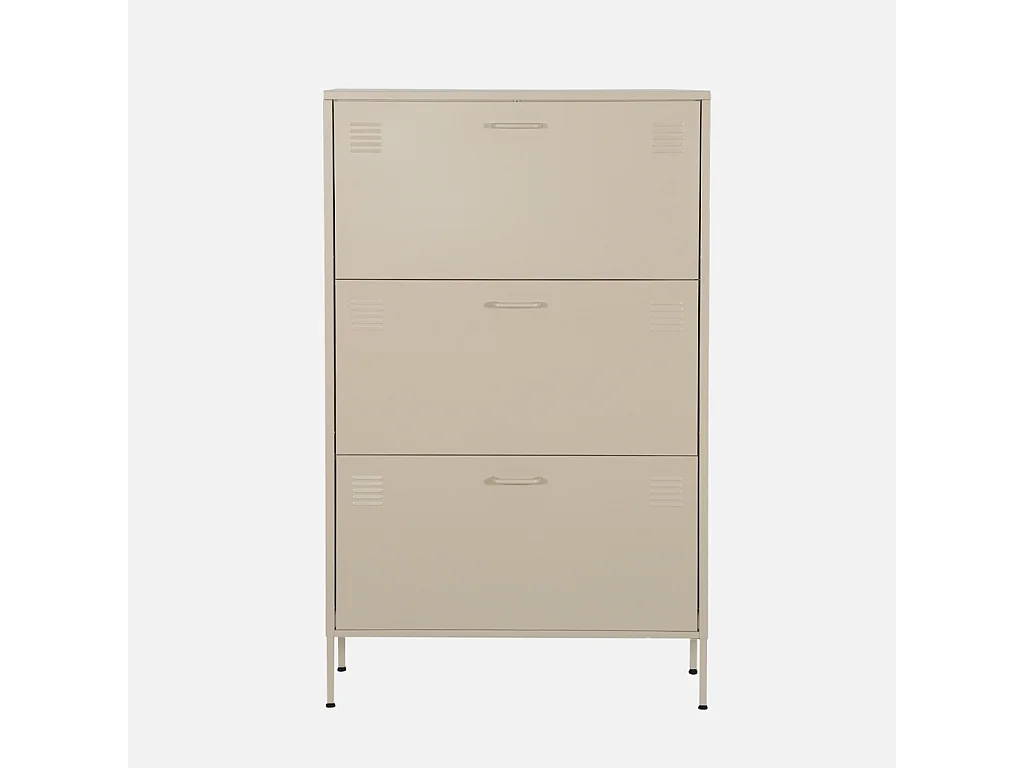 Meuble à chaussures industriel métal crème 3 tiroirs - 80 x 29 x 132.5 cm - Alabama