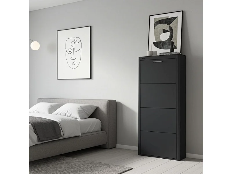 Meuble à chaussures KIBO 4 Compartiments, couleur blanc, noir ou sable