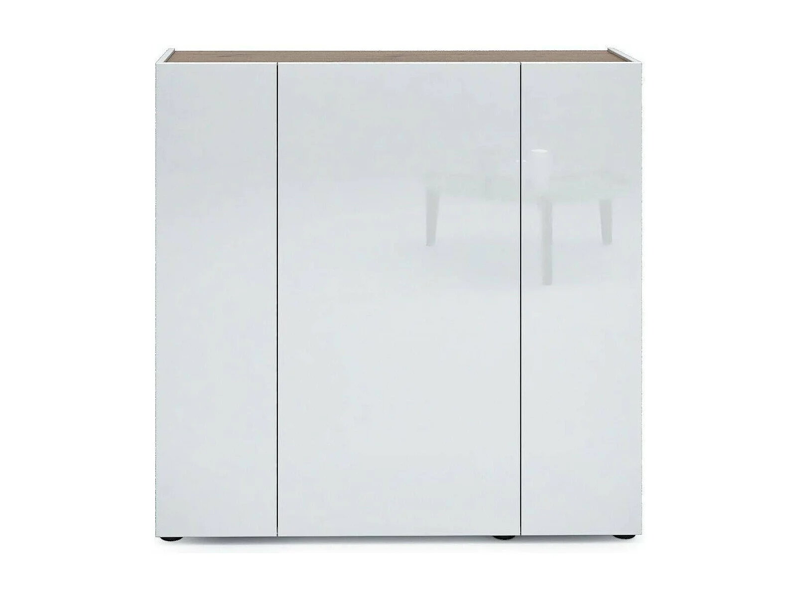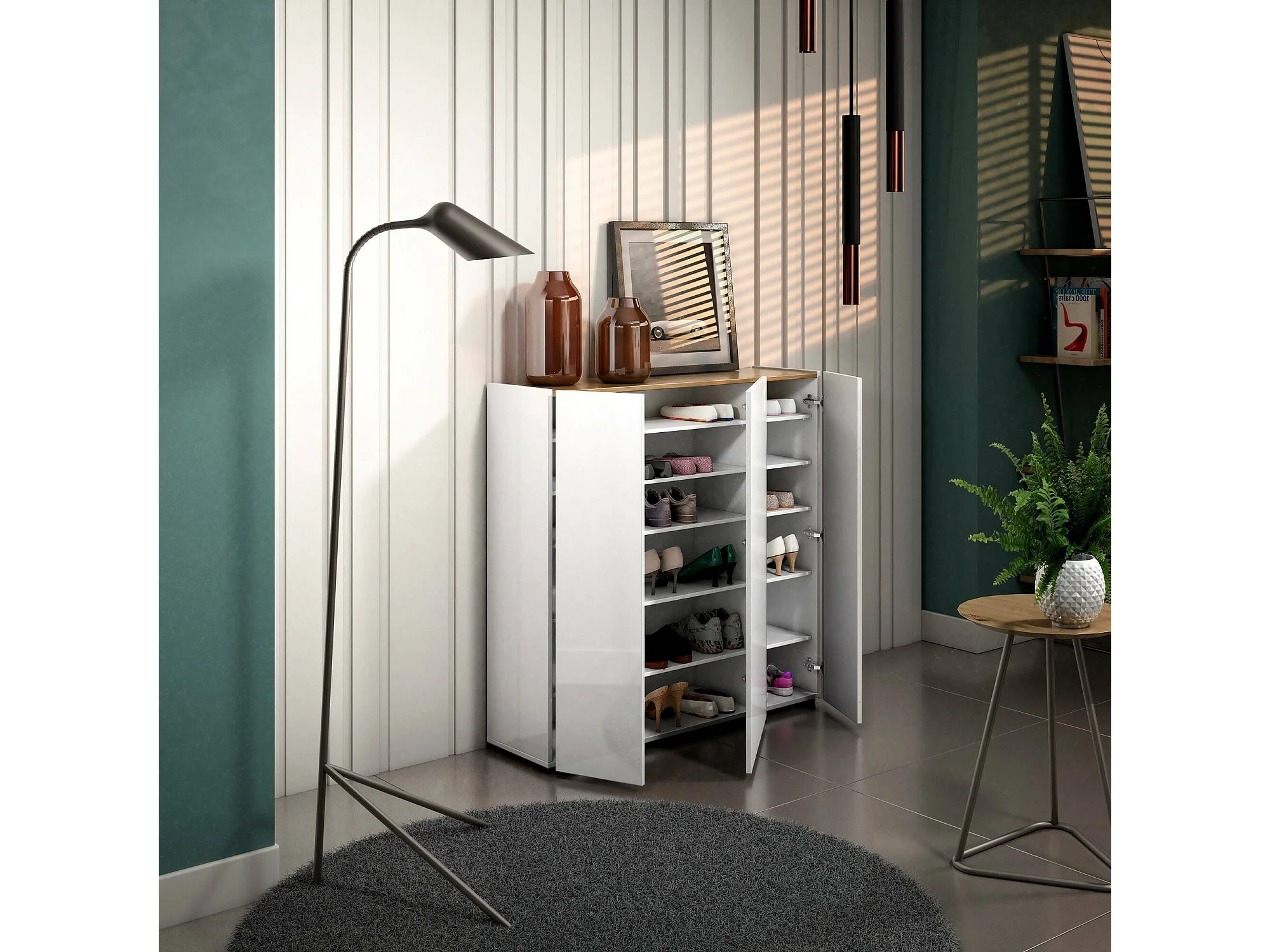 Meuble à chaussures Mbizana, Meuble à chaussures, Armoire d'entrée polyvalente, Rangement pour chaussures, Made in Italy, 116x35h115 cm, Blanc brillant et chêne
