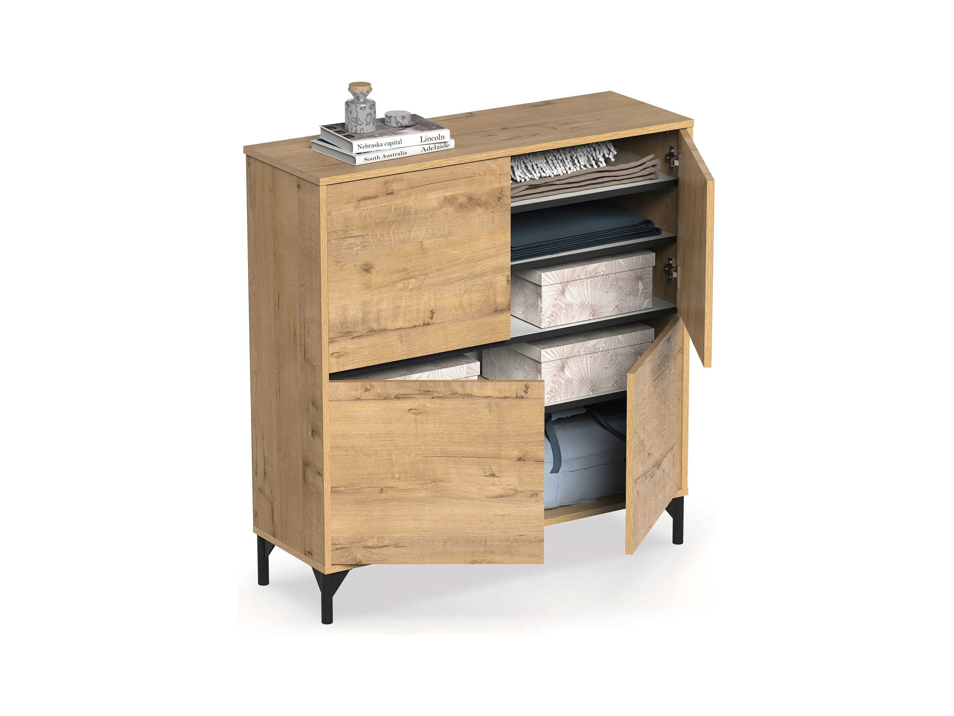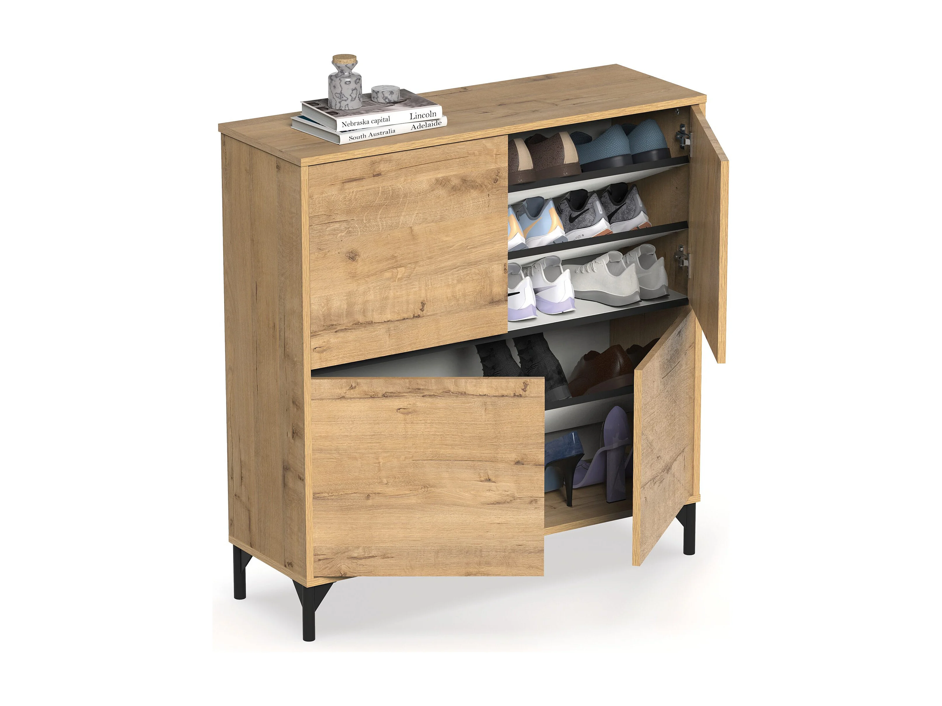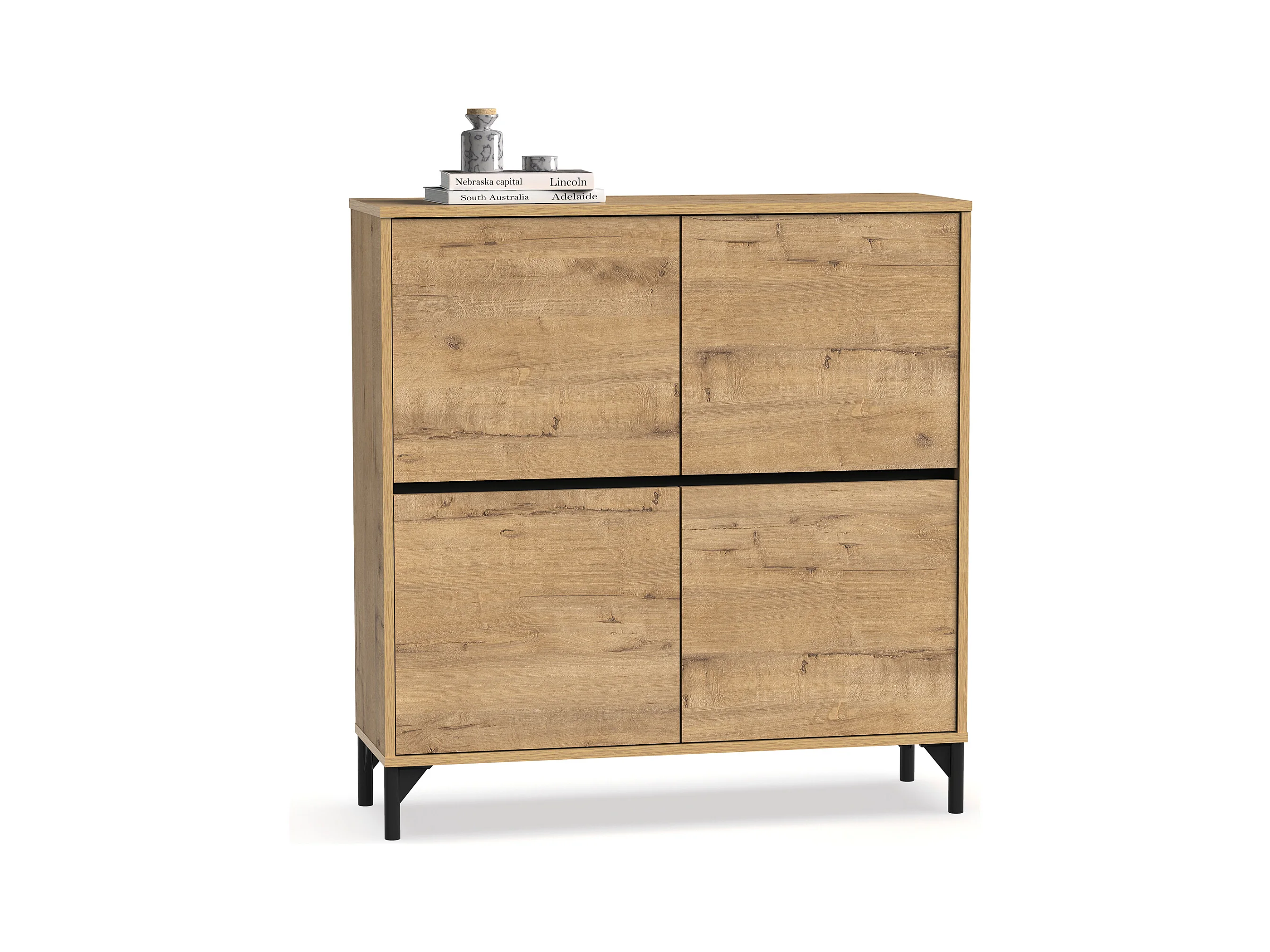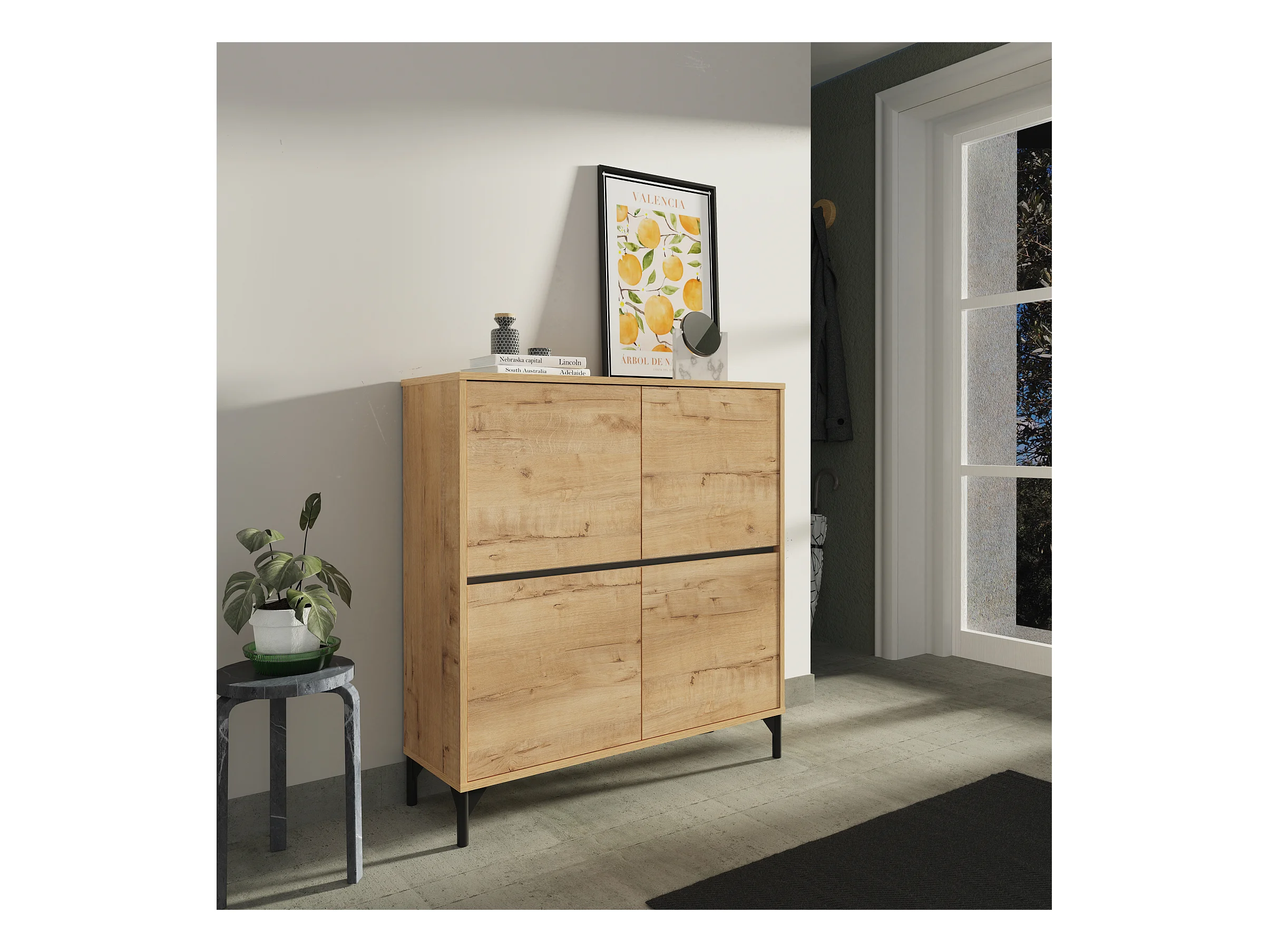 Meuble à chaussures meuble d'entrée avec pieds, 4 portes, coloris chêne doré, 20 paires de chaussures - Longueur 101 x Profondeur 33 x Hauteur 96,5 cm