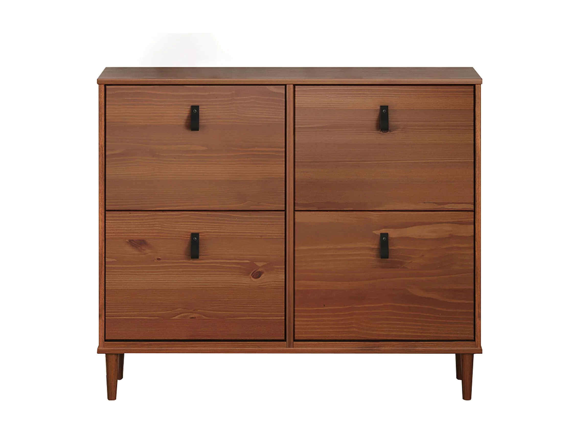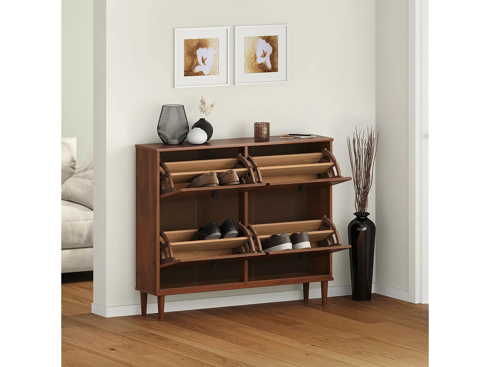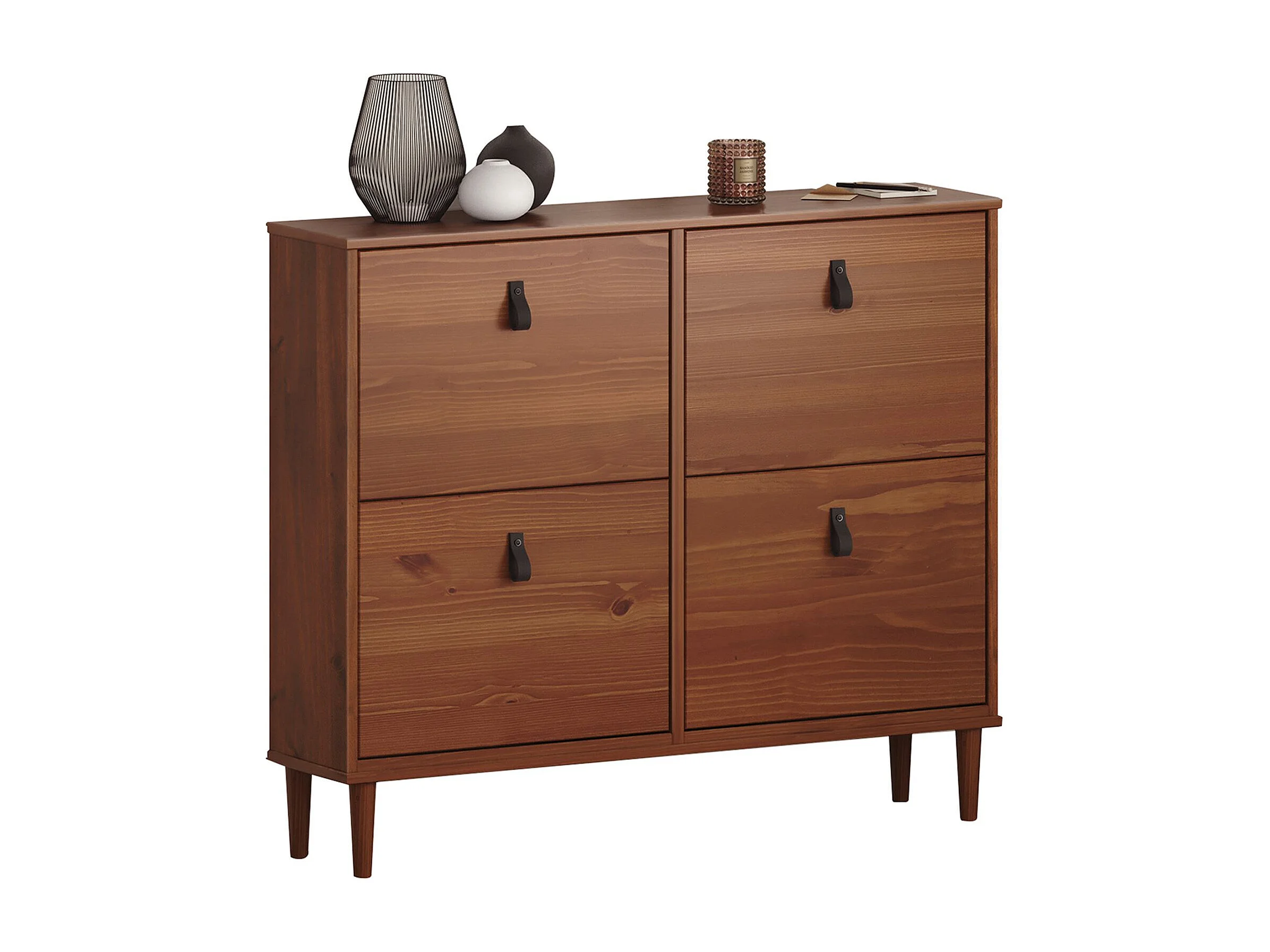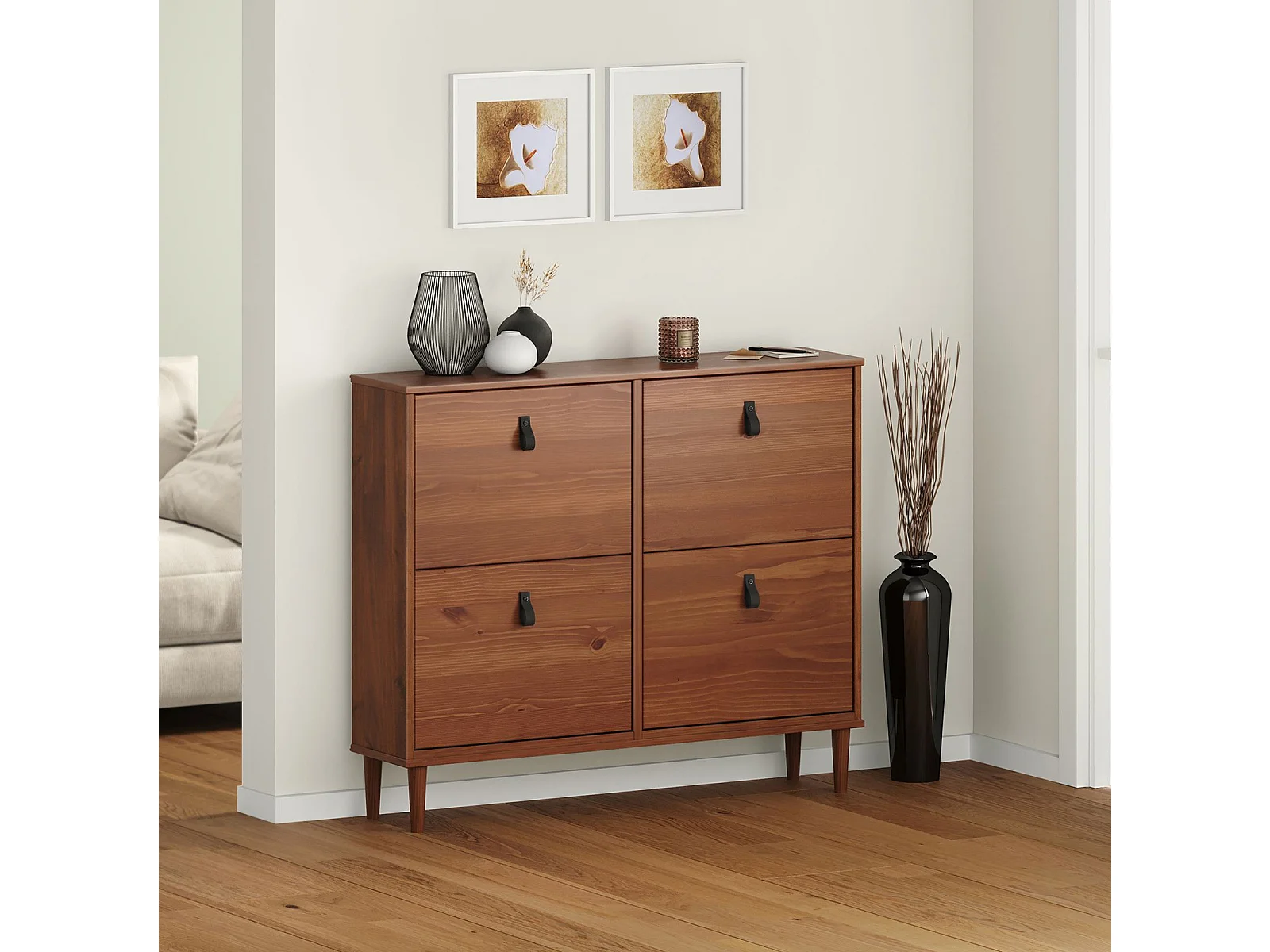 Meuble à chaussures MIKKA en bois, étagère à chaussures bois, rangement avec 4 abattants en pin massif brun foncé