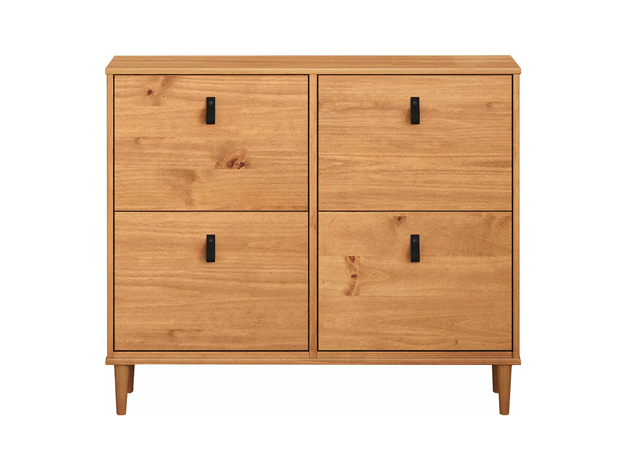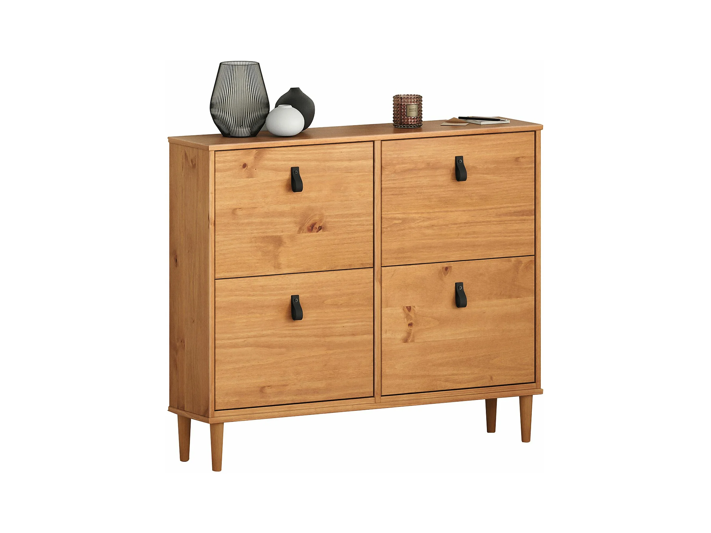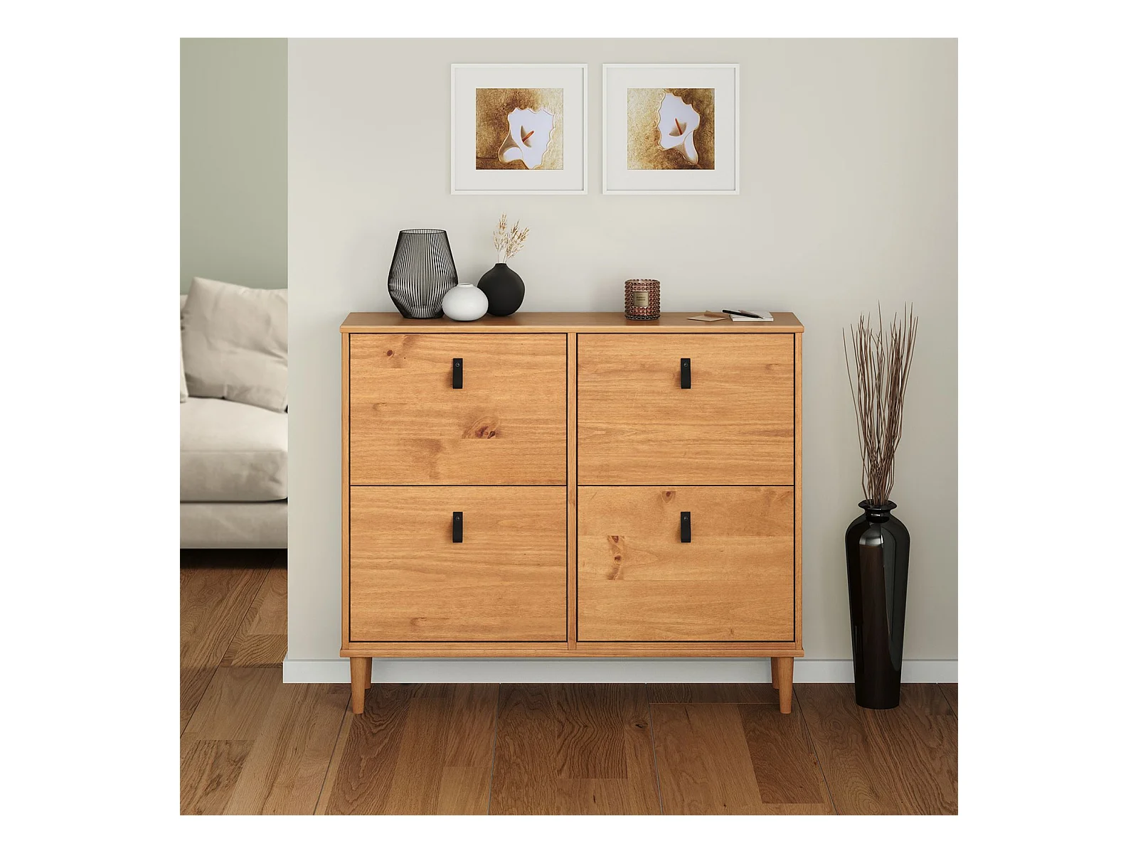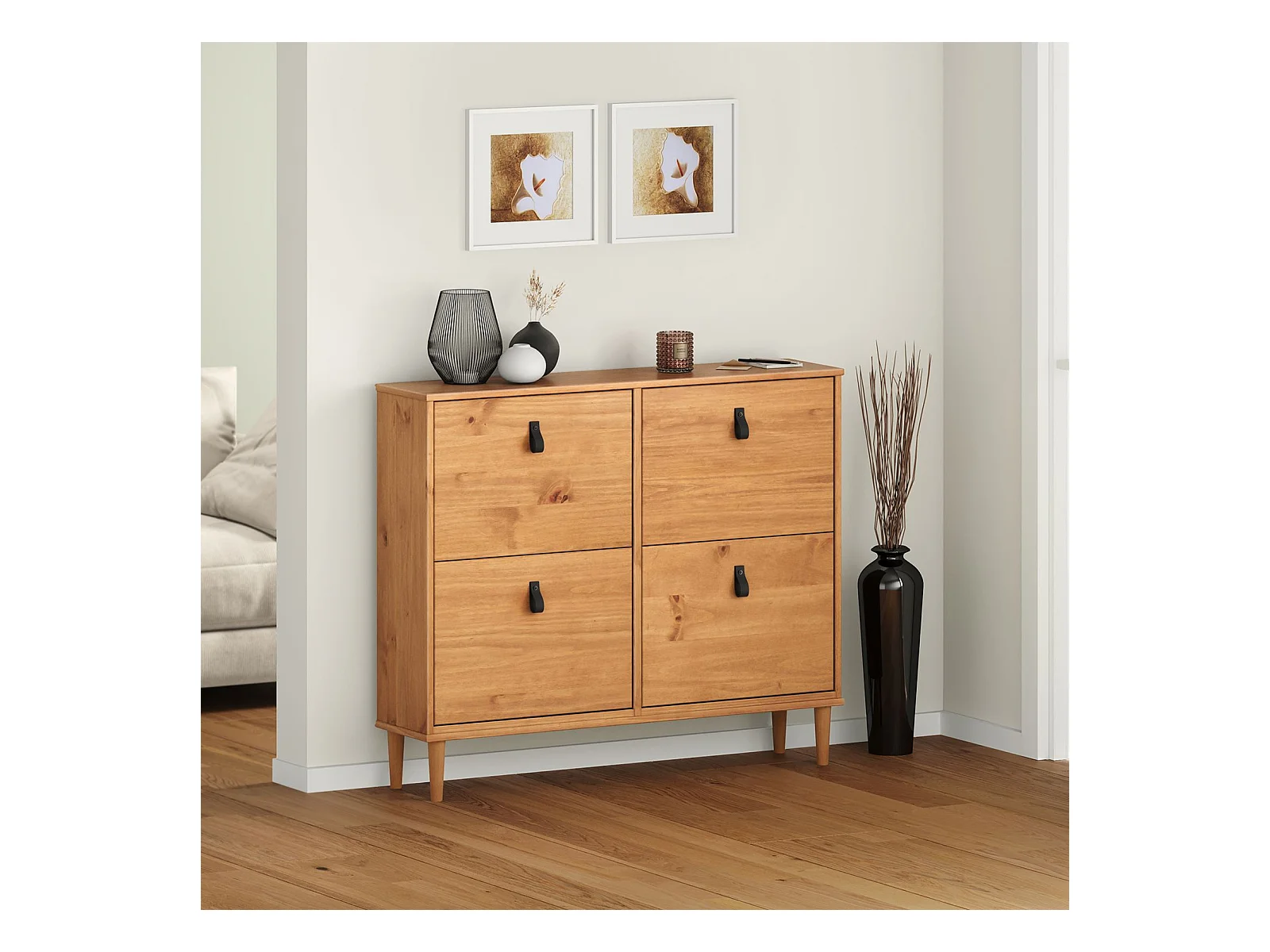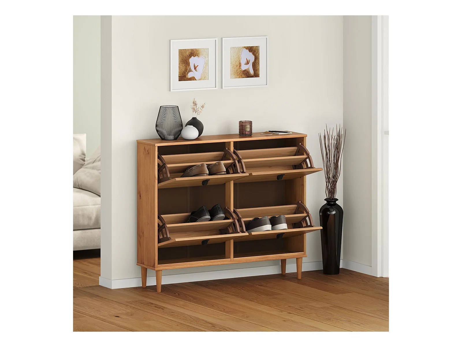 Meuble à chaussures MIKKA en bois, étagère à chaussures bois, rangement avec 4 abattants en pin massif couleur chêne