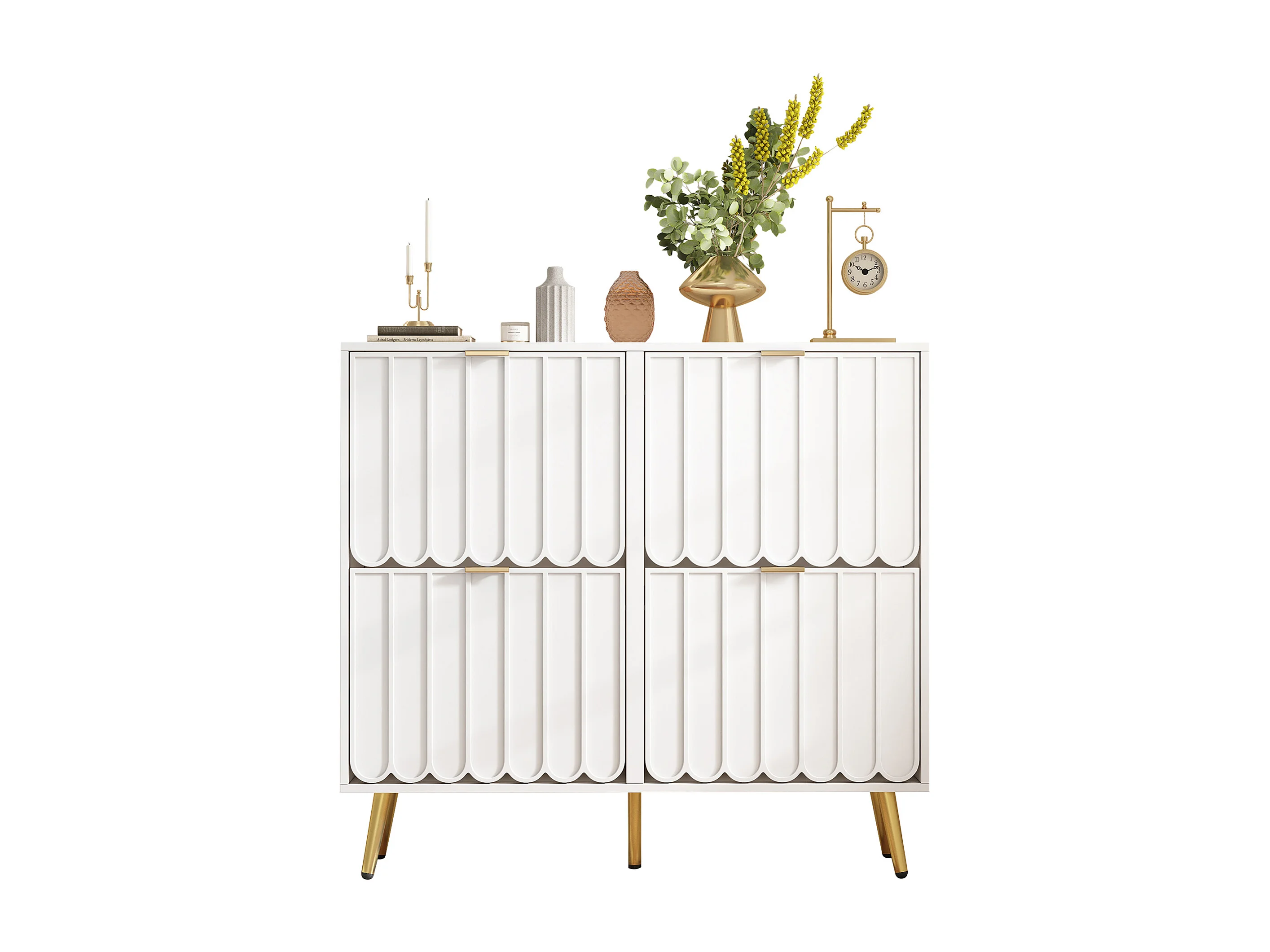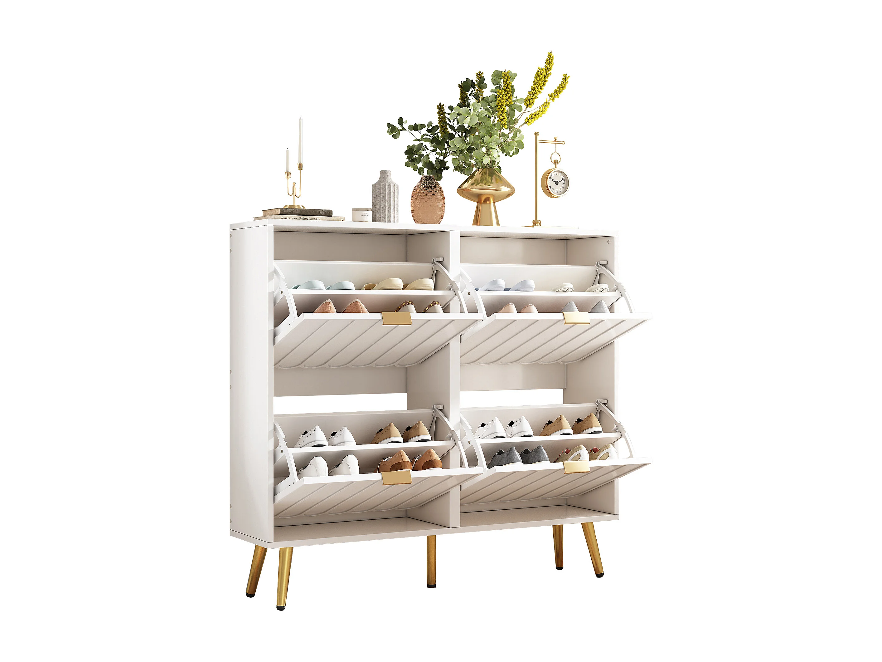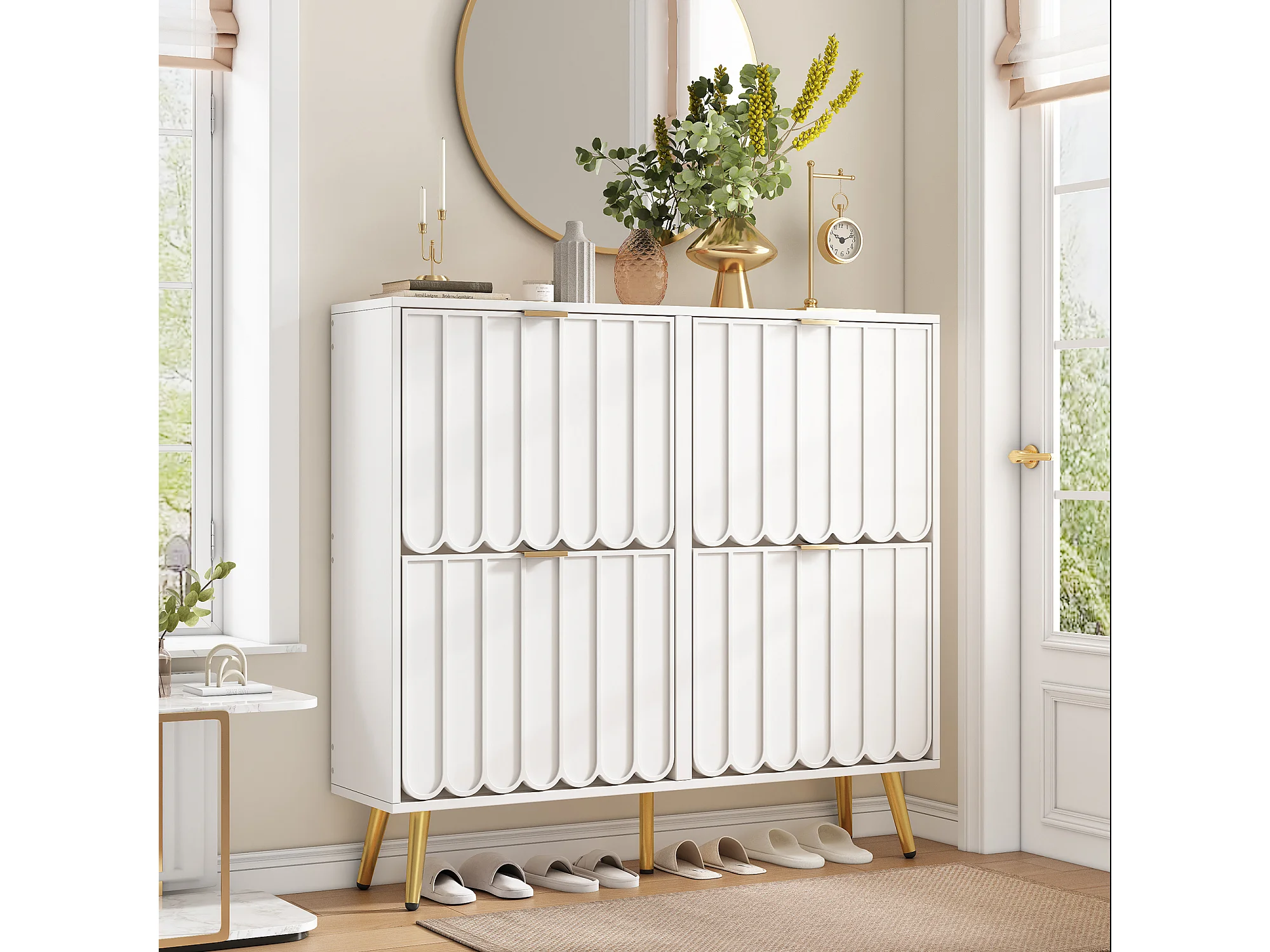 Meuble à chaussures moderne - 100 x 24 x 91.5 cm - avec 4 portes - MDF + aggloméré - blanc