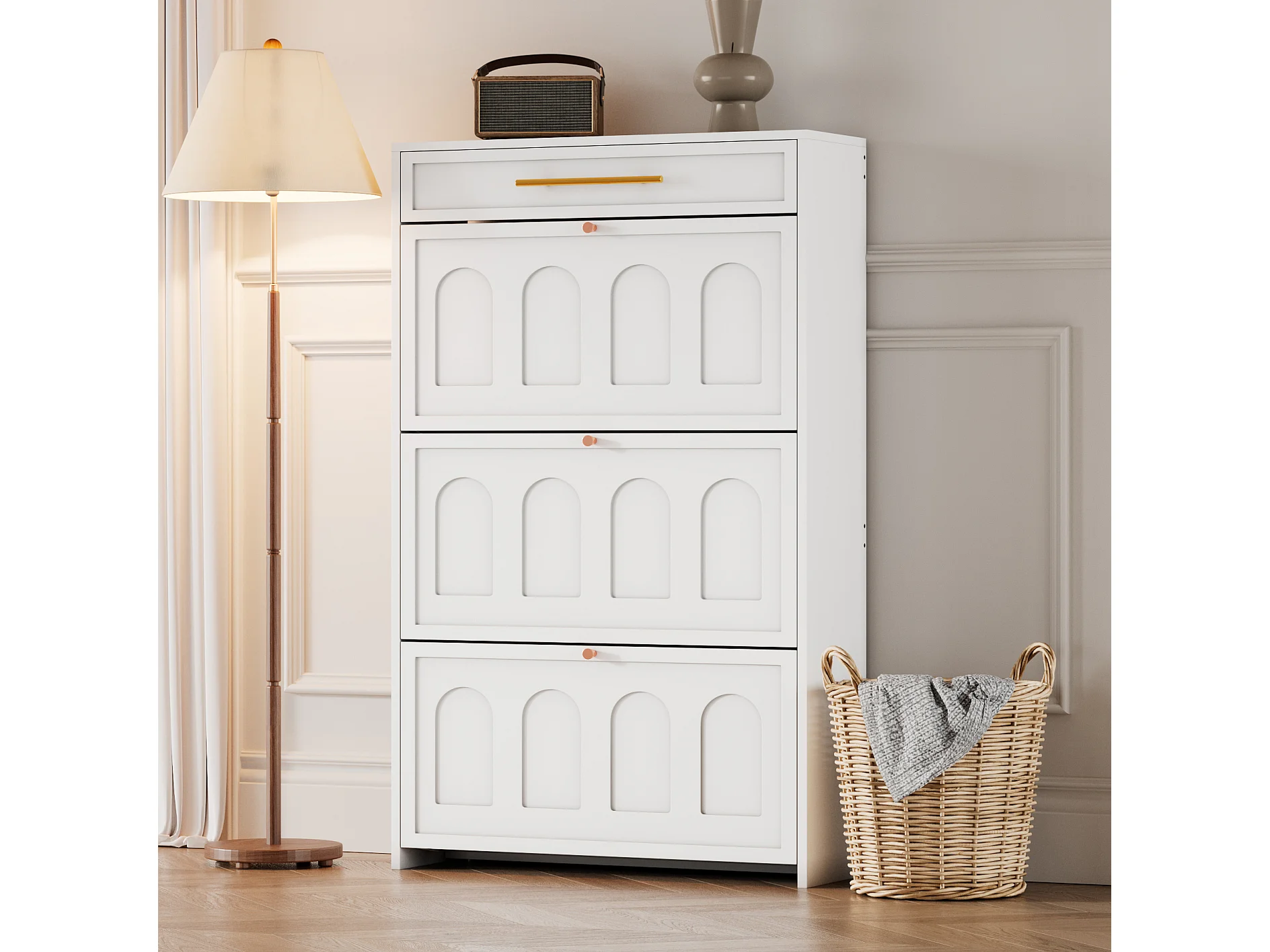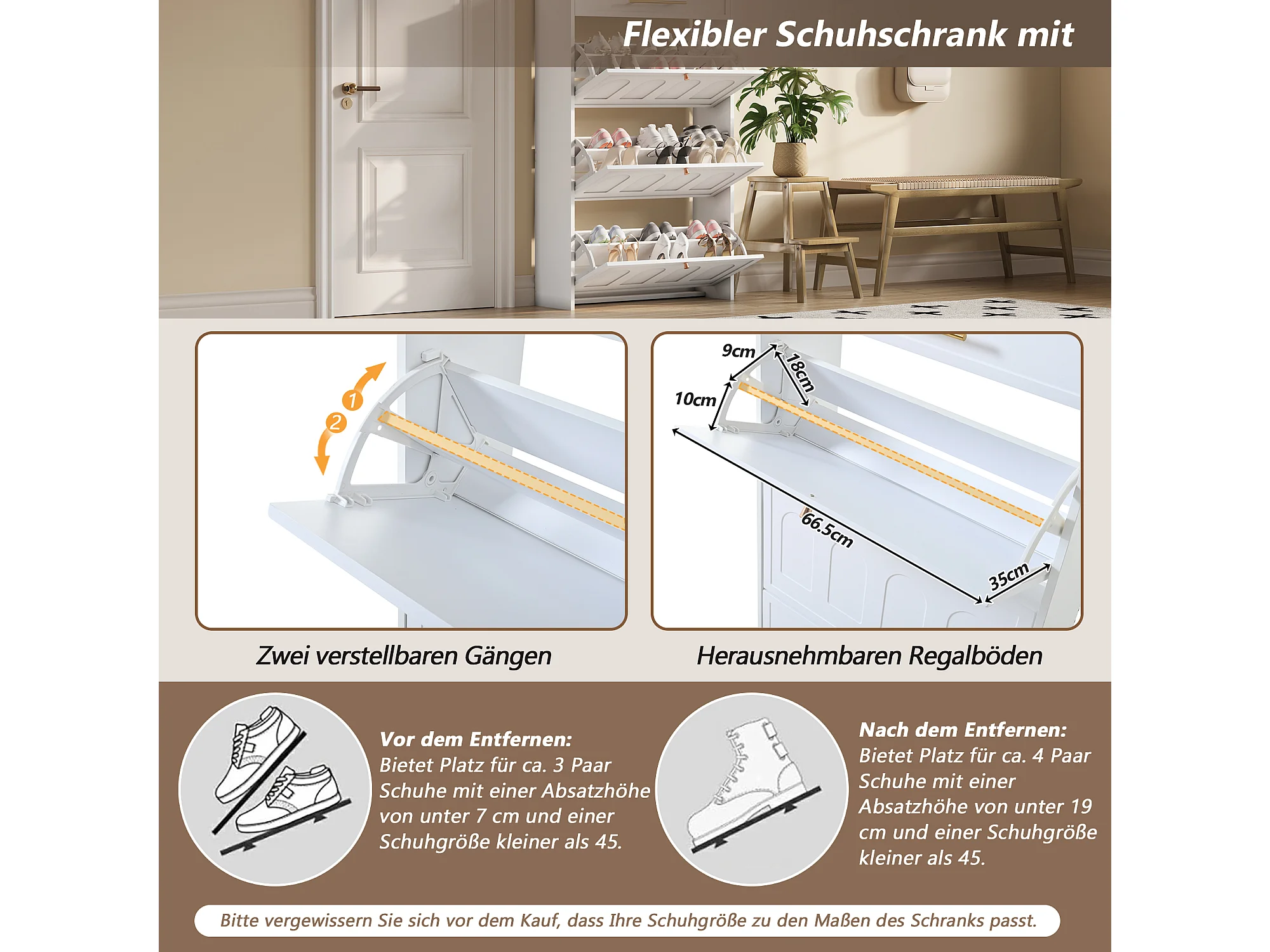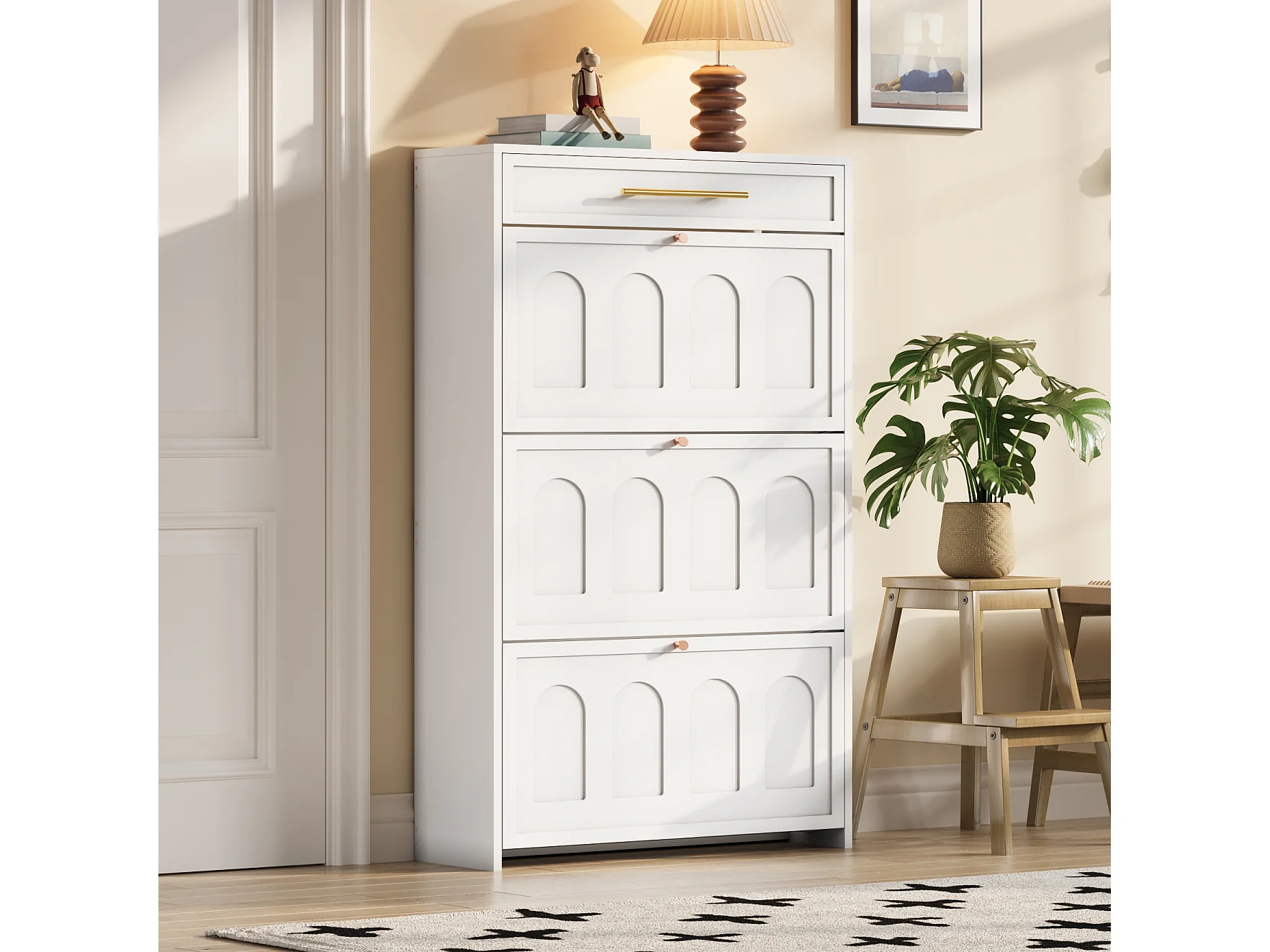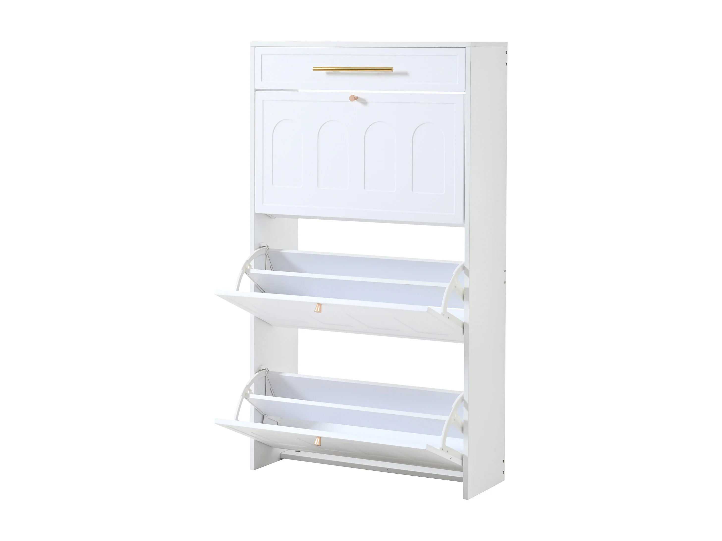 Meuble à chaussures moderne - 70 x 25 x 123.5 cm - avec 6 compartiments + 1 tiroir - pour entrée et salon - MDF - blanc