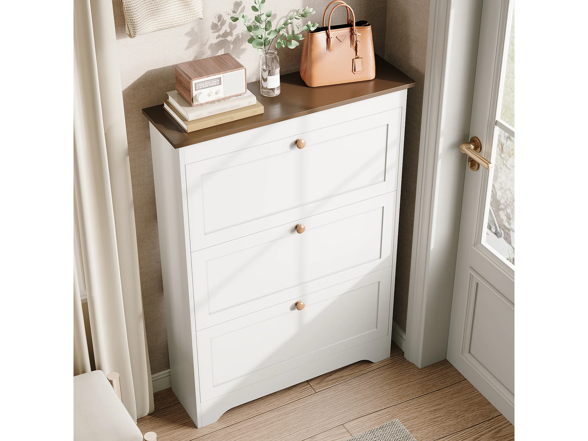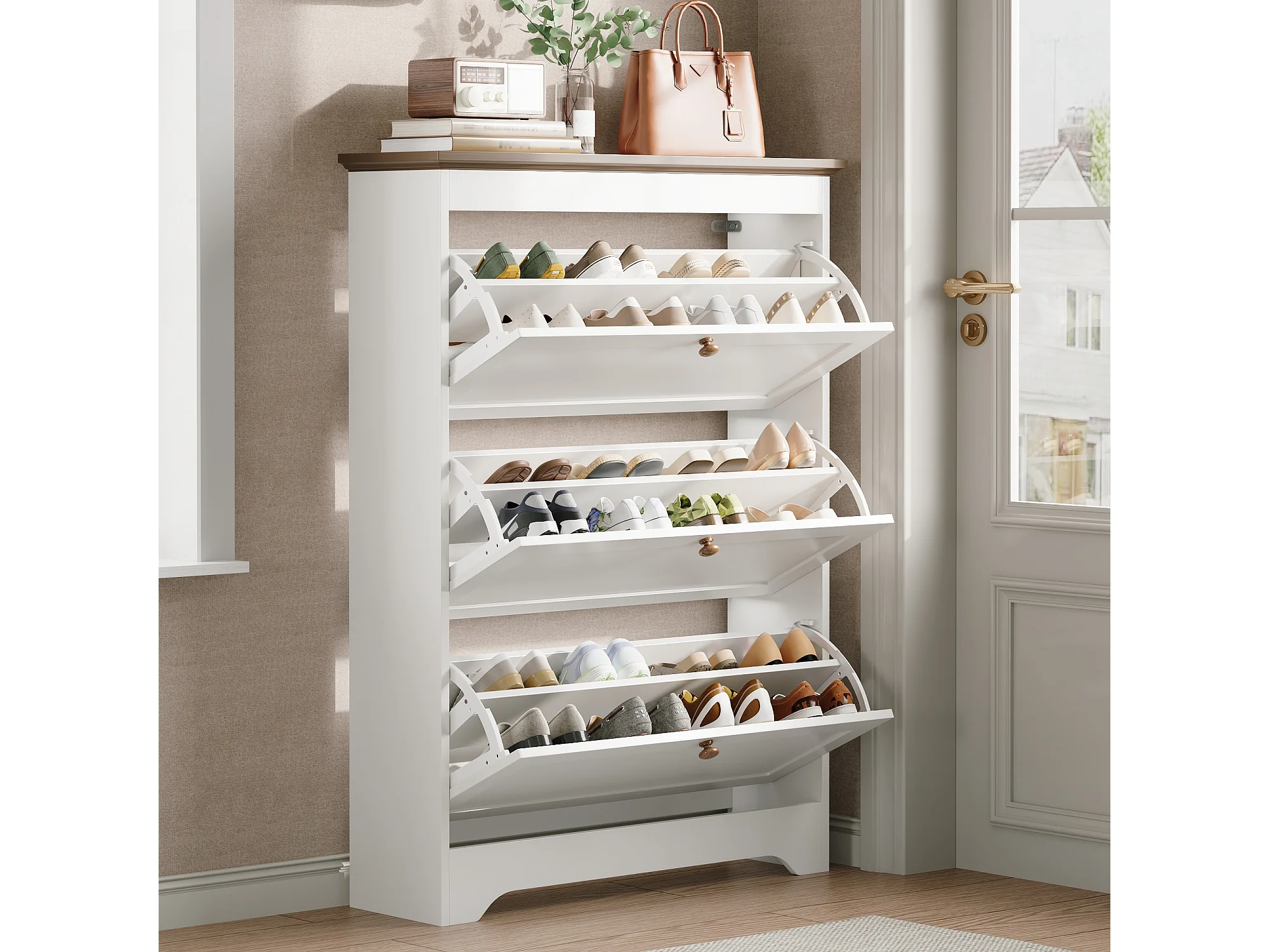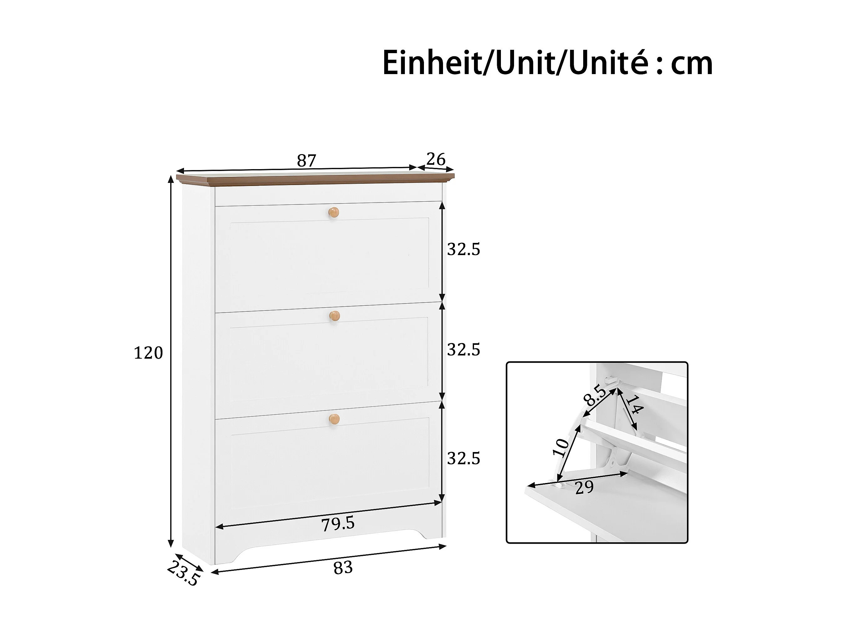 Meuble à chaussures moderne - 87 x 26 x 120 cm - avec 3 portes - pour l'entrée/ l'entrée/le couloir - MDF - blanc