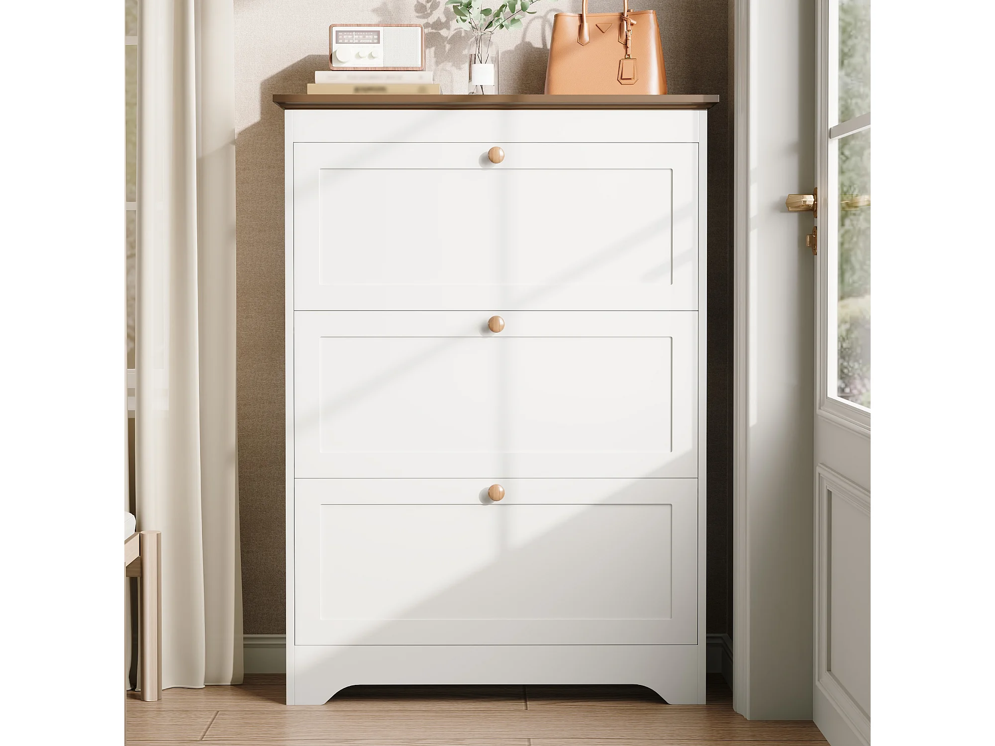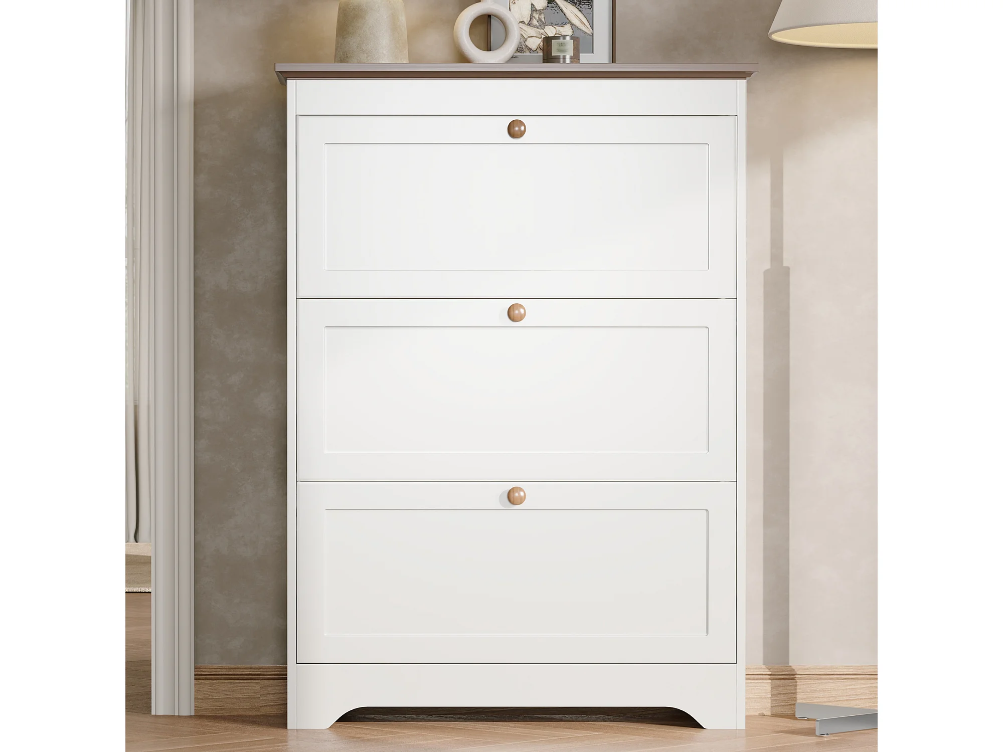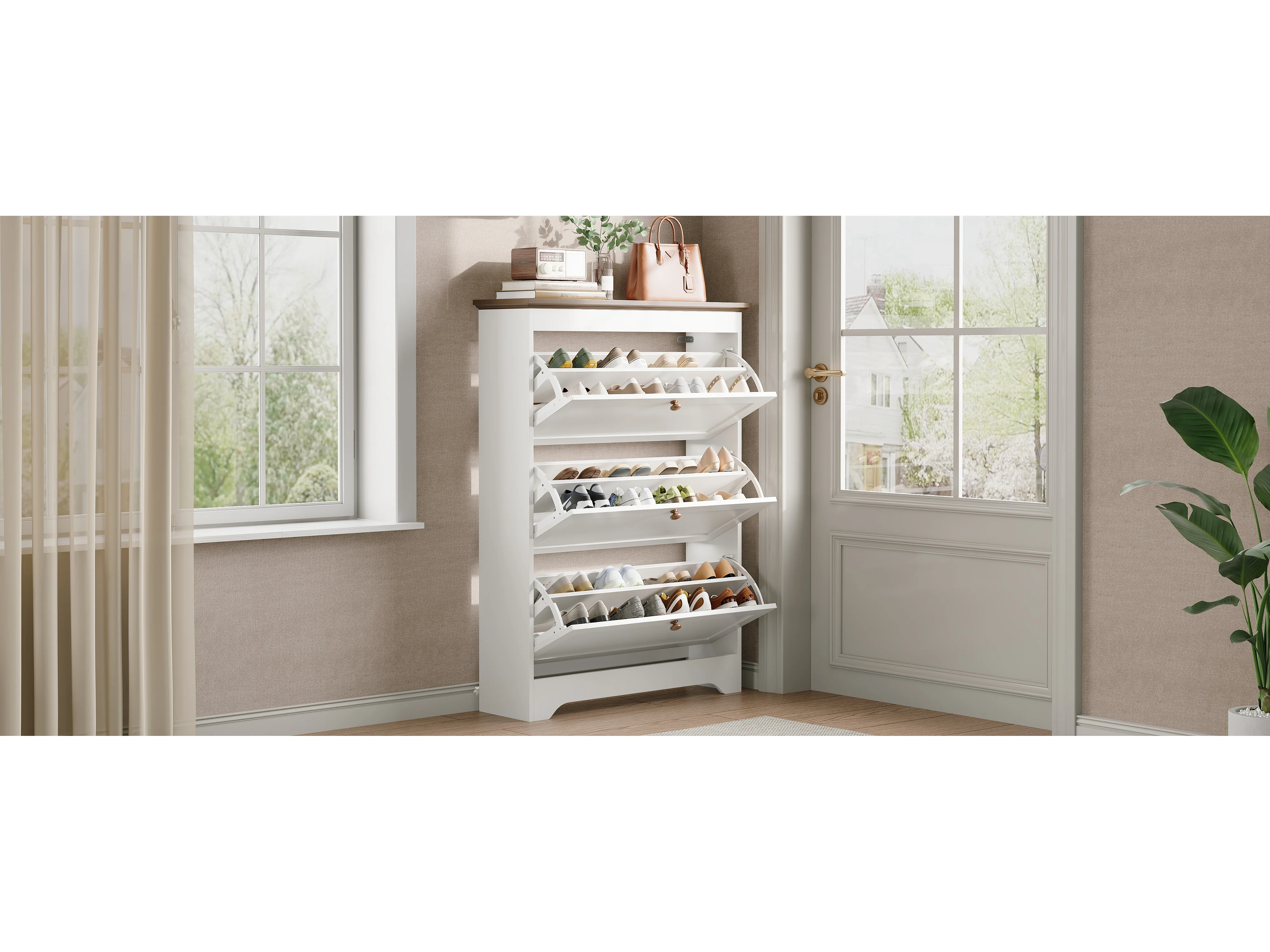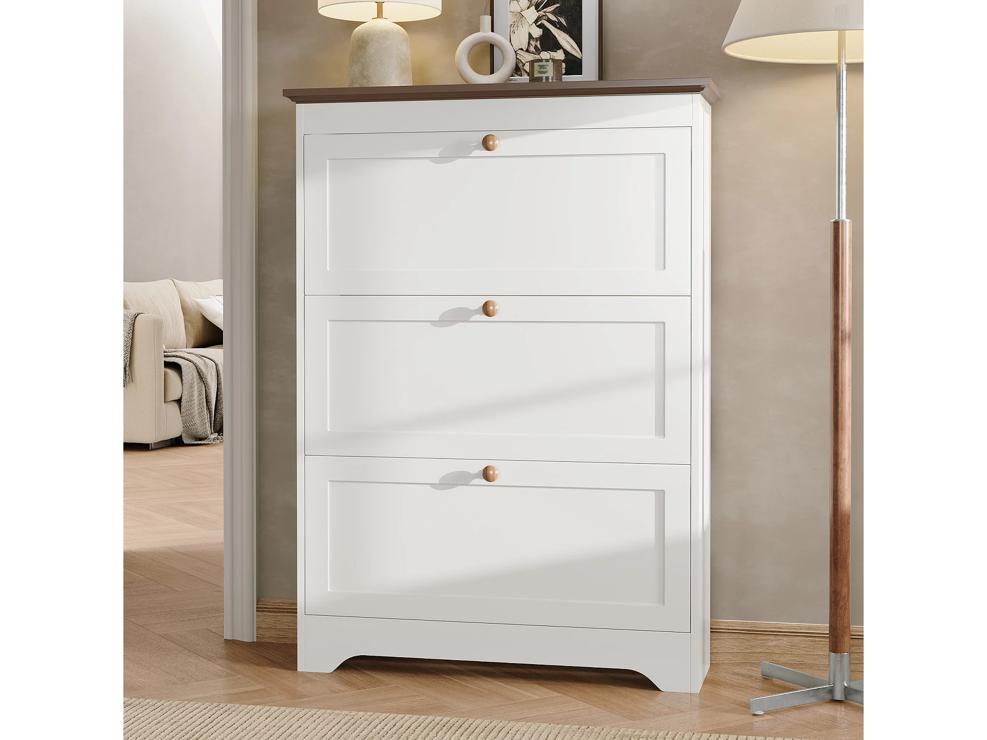 Meuble à chaussures moderne - 87 x 26 x 120 cm - avec 3 portes - pour l'entrée/ l'entrée/le couloir - MDF - blanc