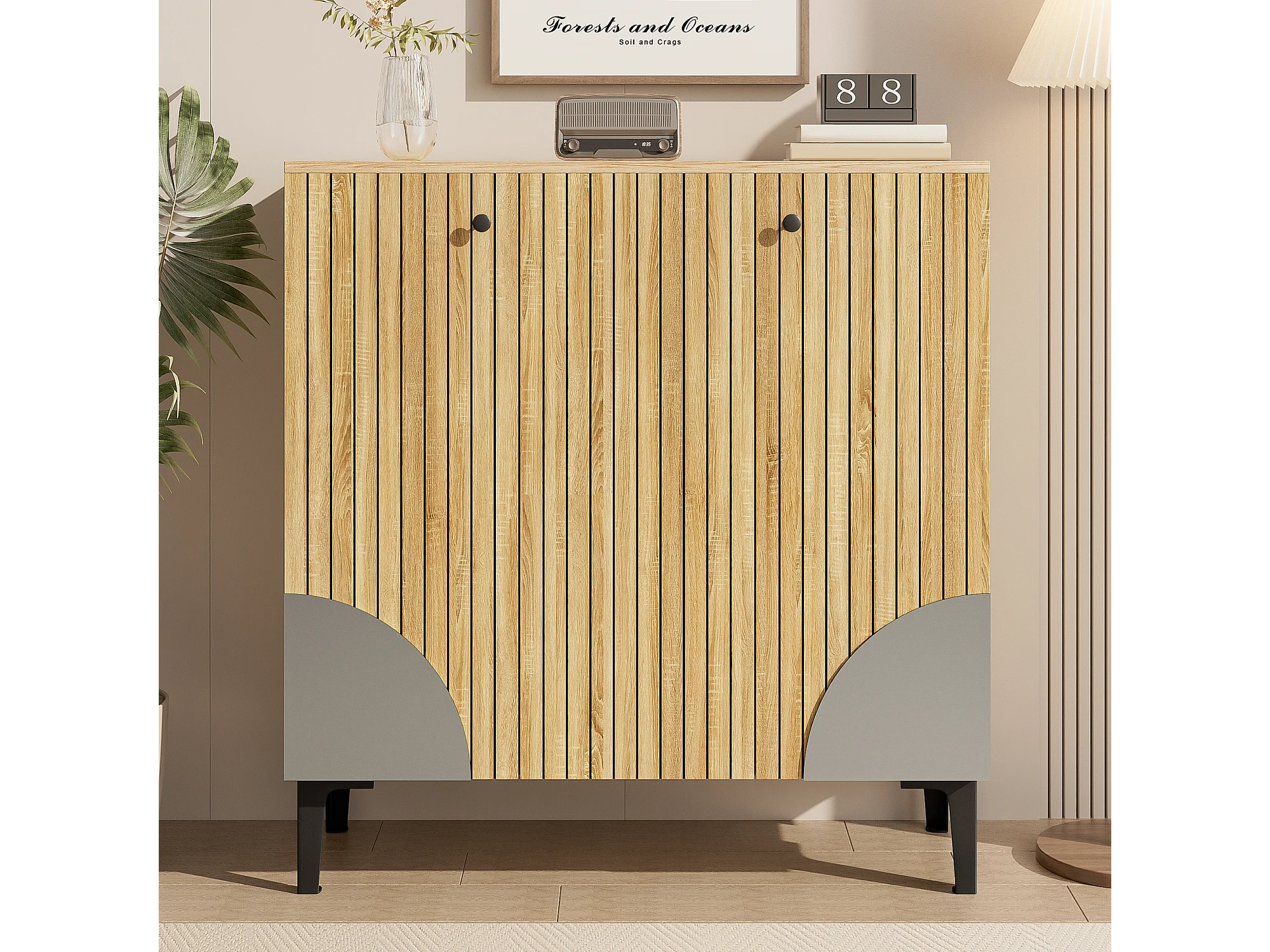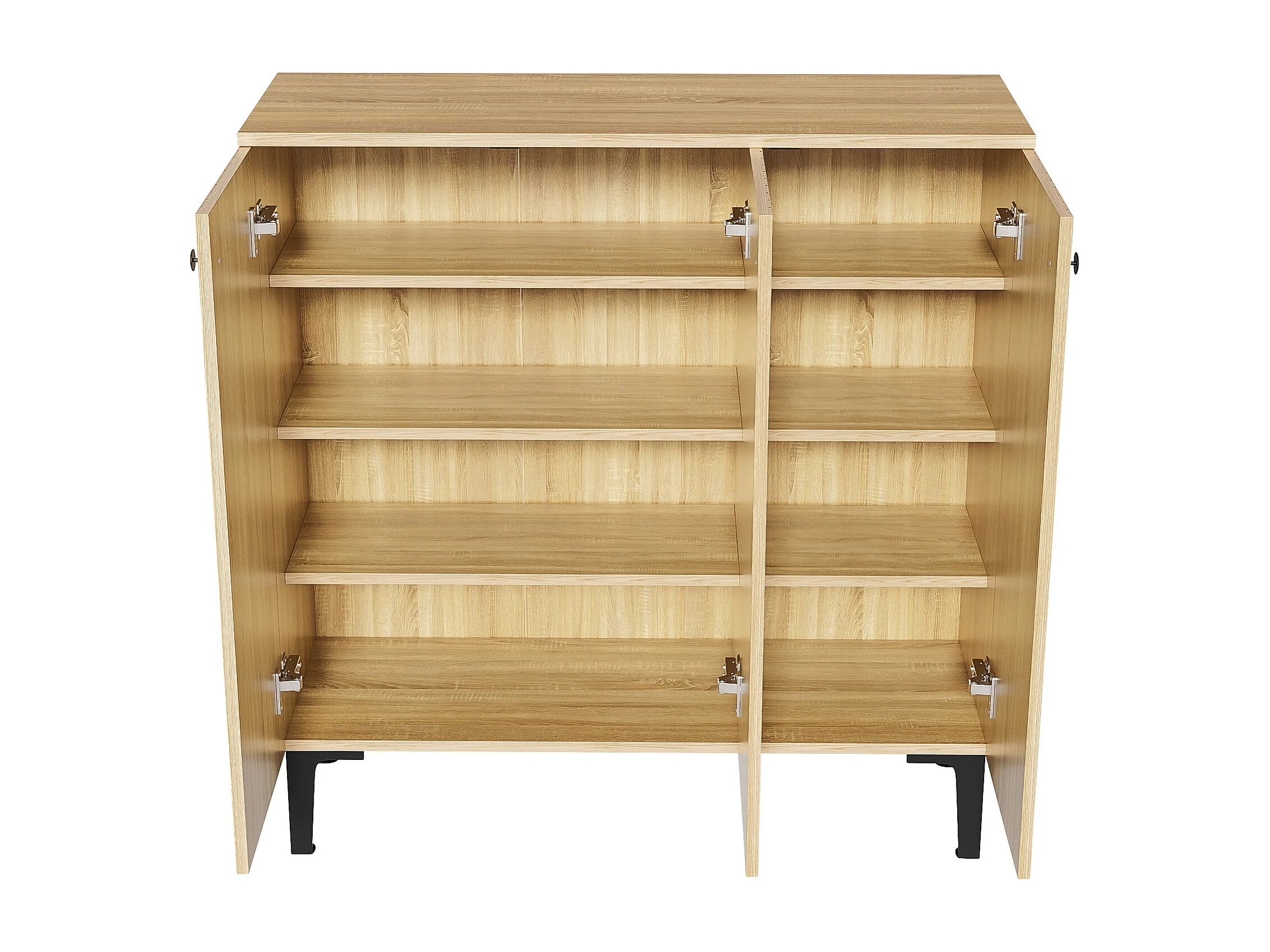 Meuble à chaussures moderne 90x32x94 cm - avec 3 portes - Étagères à plusieurs niveaux - aspect bois - Panneaux de particules - Naturel