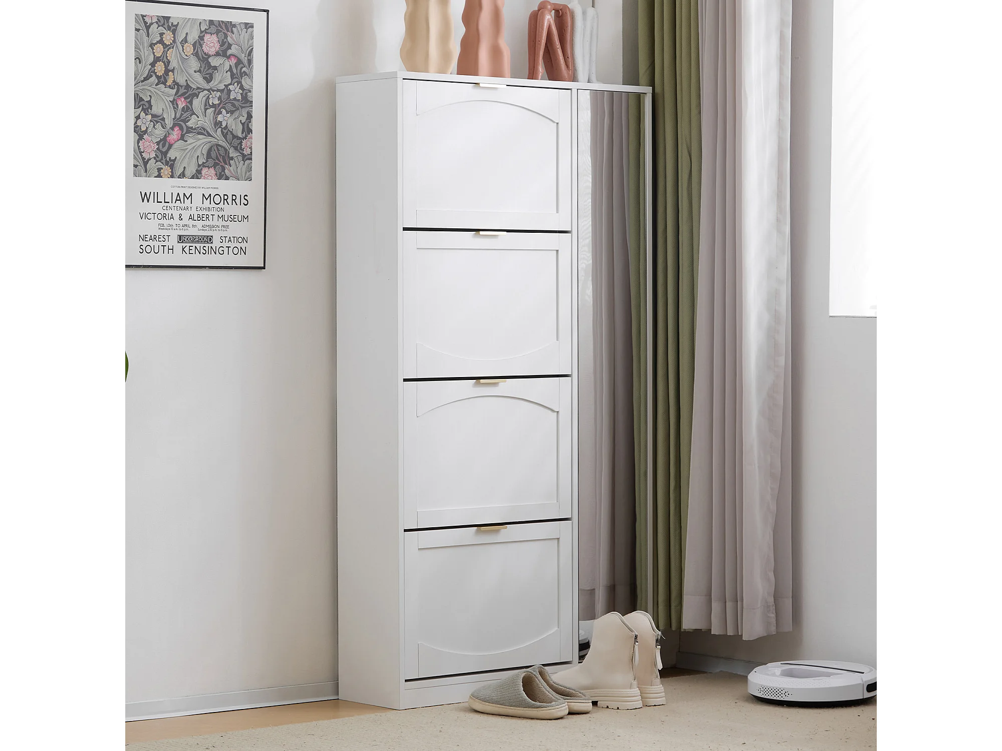 Meuble à chaussures moderne avec 4 tiroirs abattants - 80 x 24 x 147 cm - Panneau de particules - Blanc