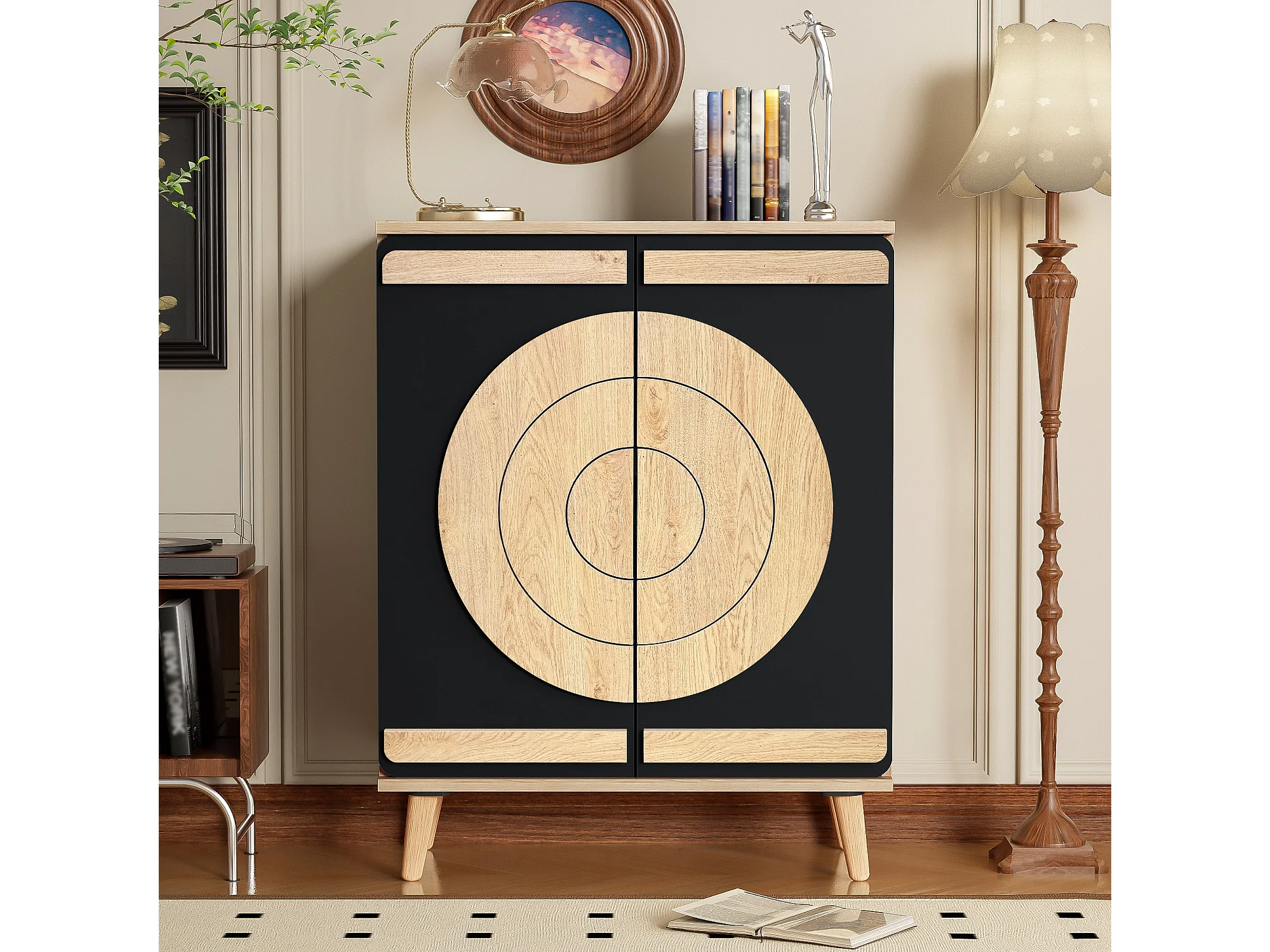 Meuble à chaussures moderne avec portes rondes et géométriques - 76 x 37 x 98.5 cm - MDF - noir
