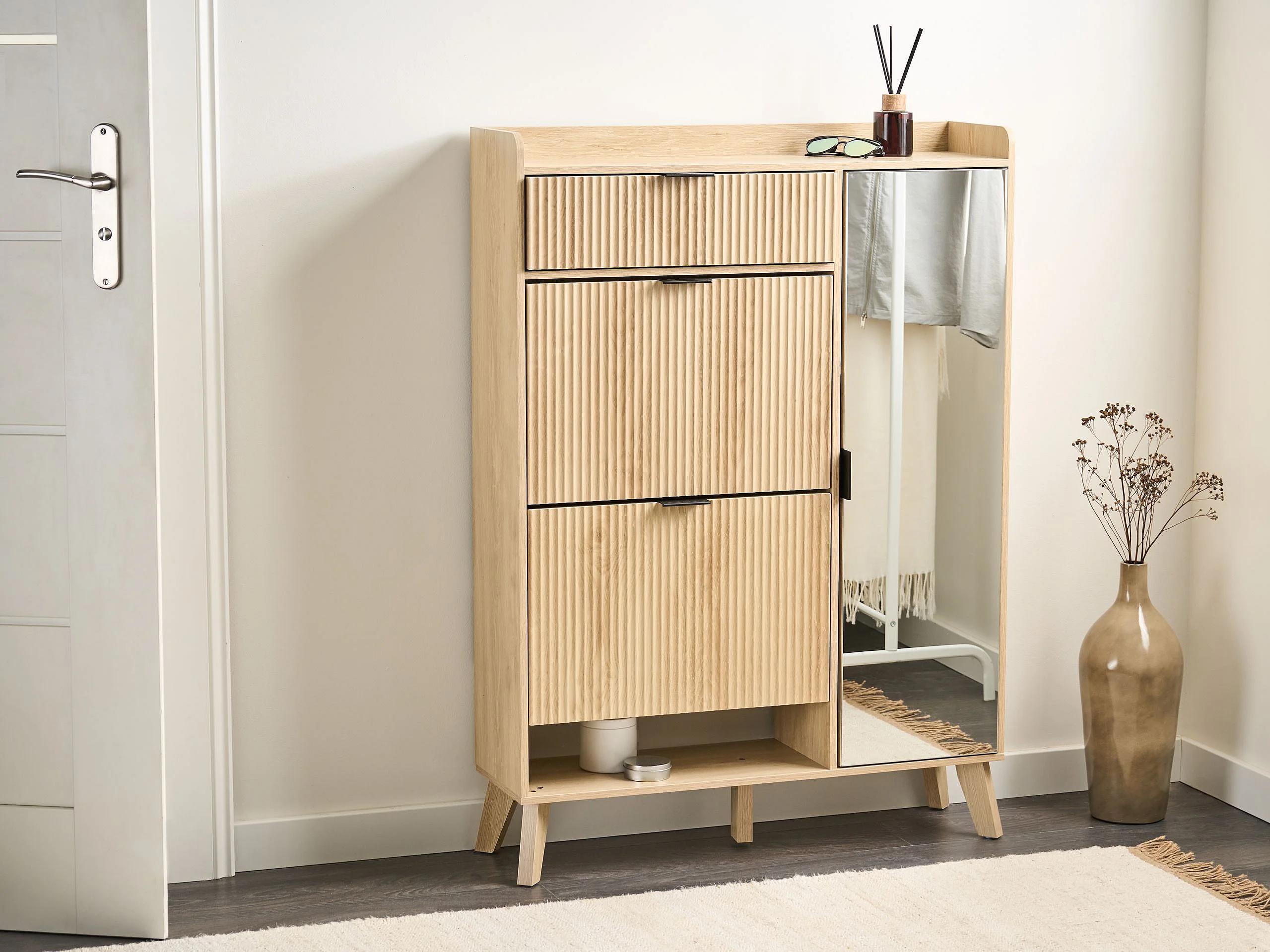 Meuble à chaussures 3 portes en cannage et effet chêne 70 cm - Iris
