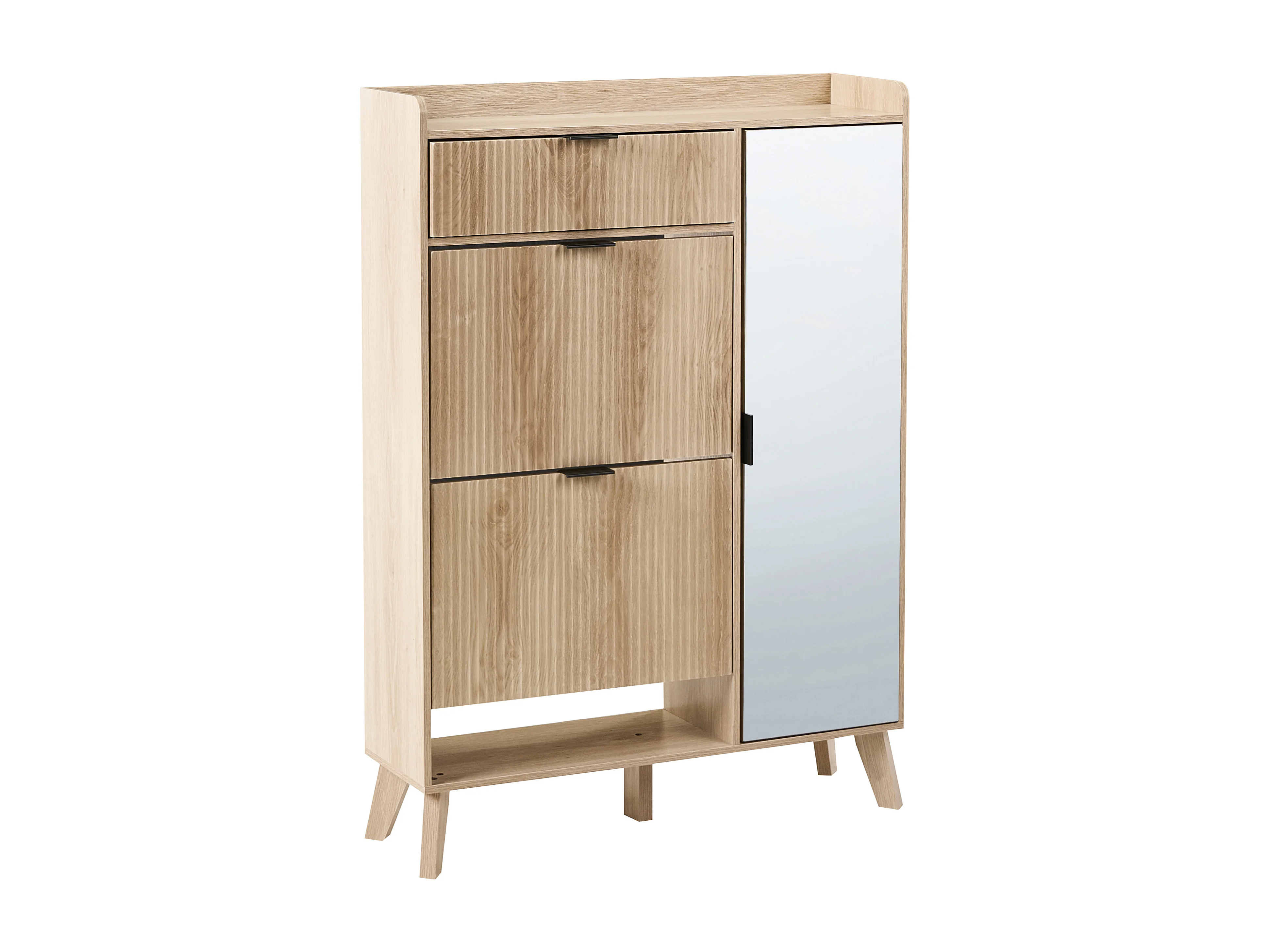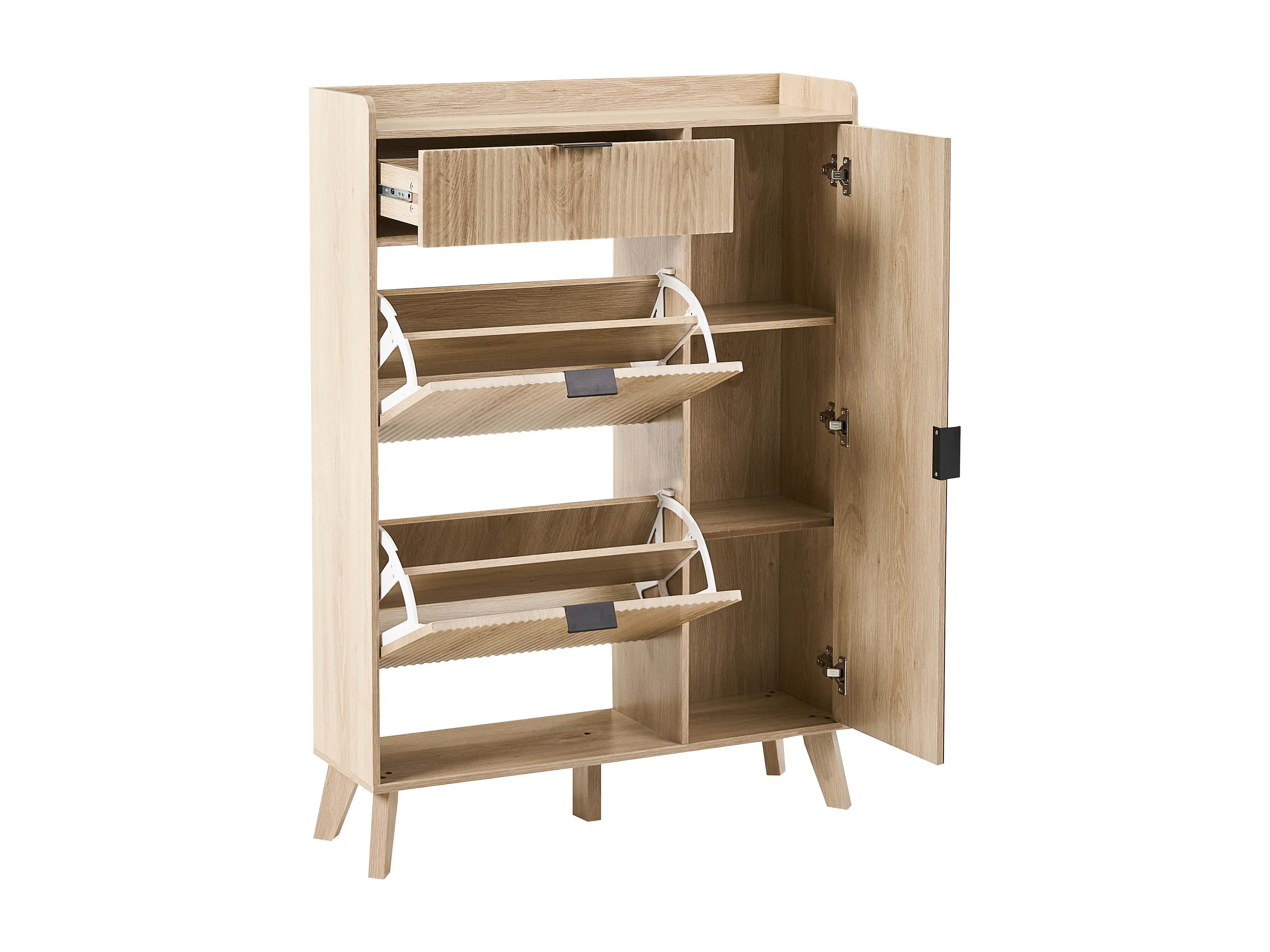 Meuble à chaussures/rangement - H122cm x L70cm x P35cm chêne porte impress lattes - Akra