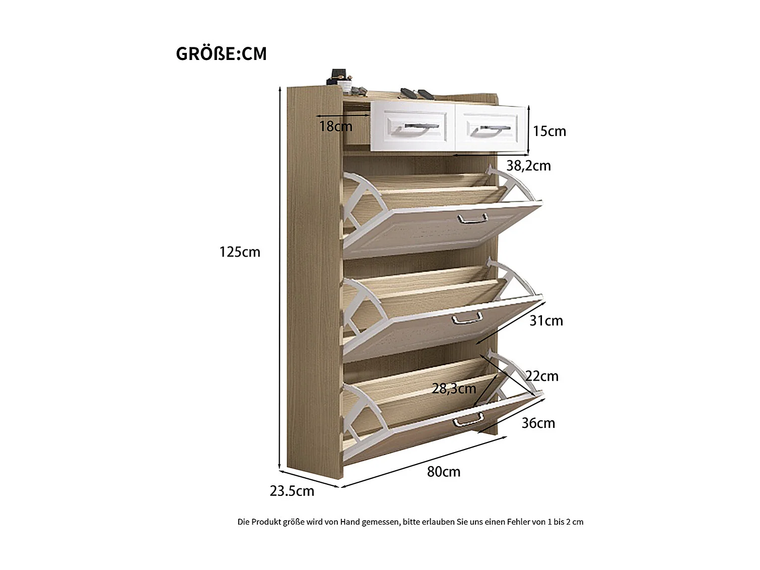 Meuble à chaussures naturel armoire pivotante trois abattants deux tiroirs bois entrées salons