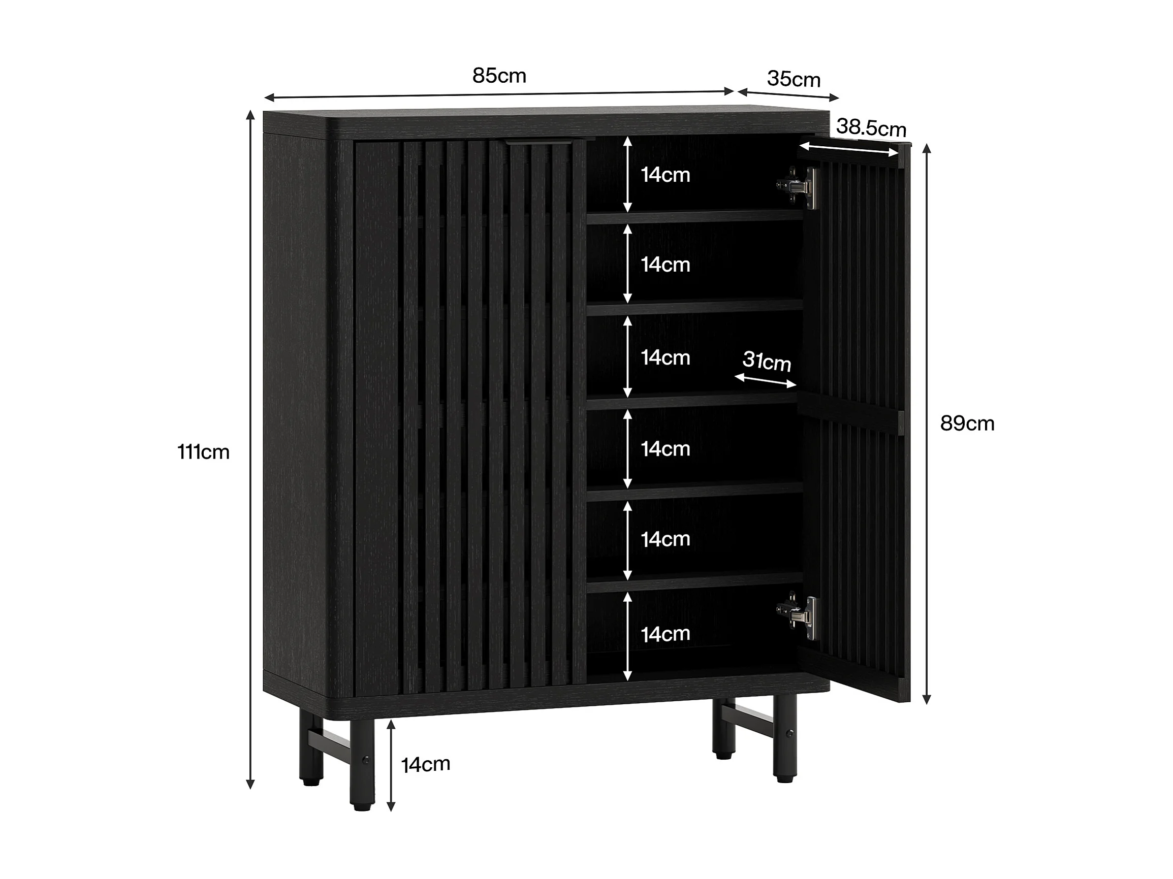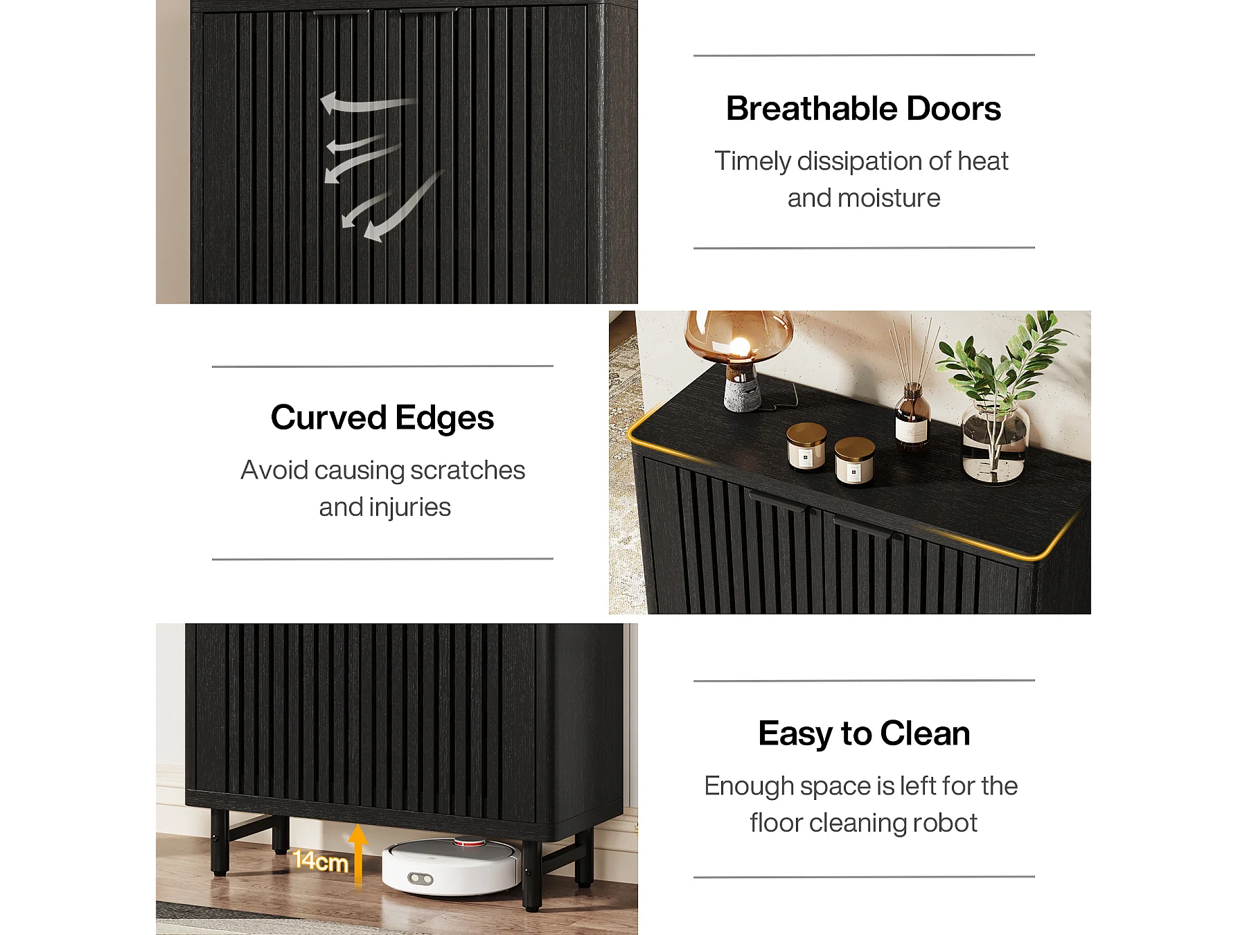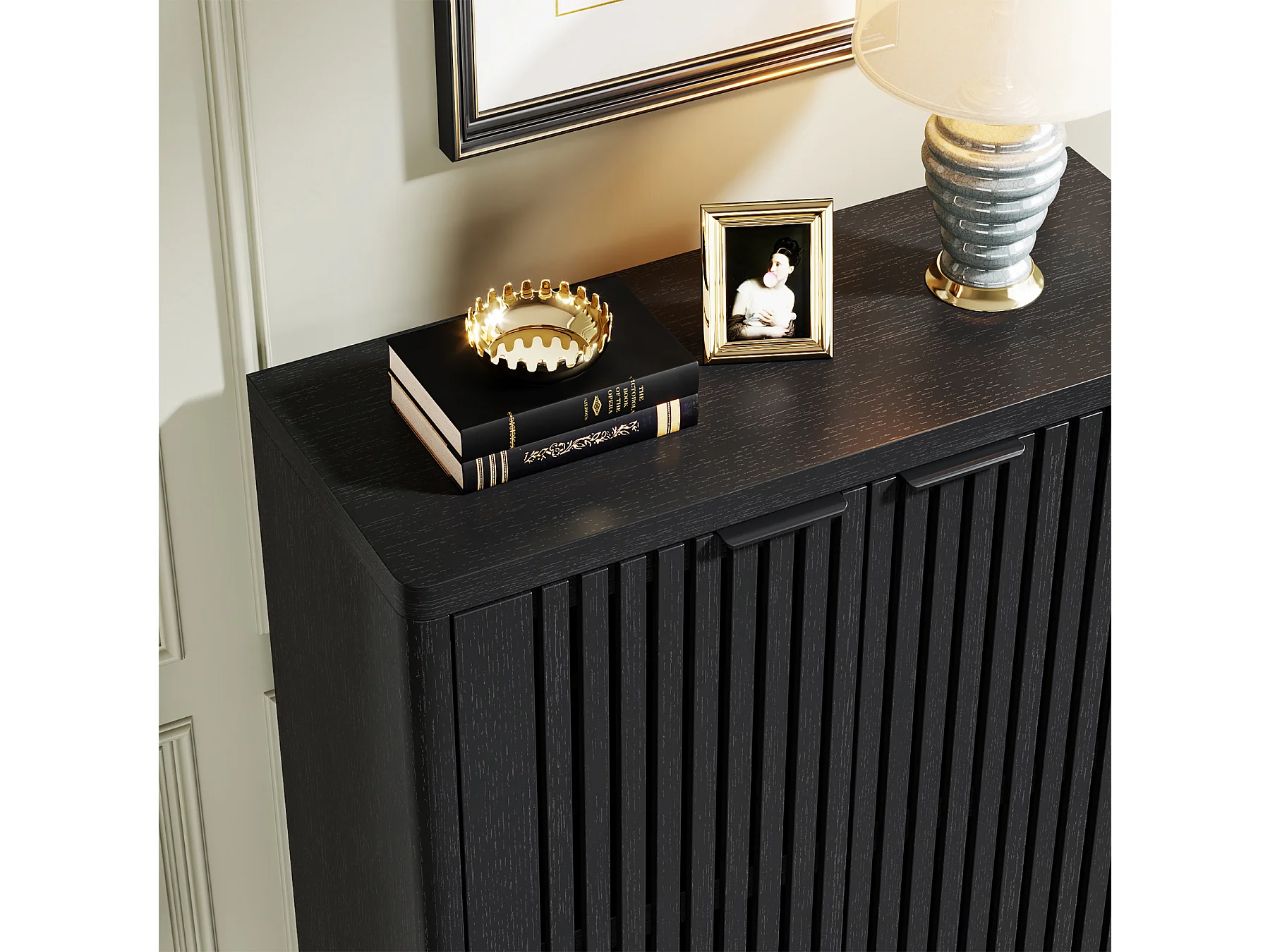 Meuble à chaussures noir à 6 niveaux avec portes à volets, étagère à chaussures en bois avec étagères réglables
