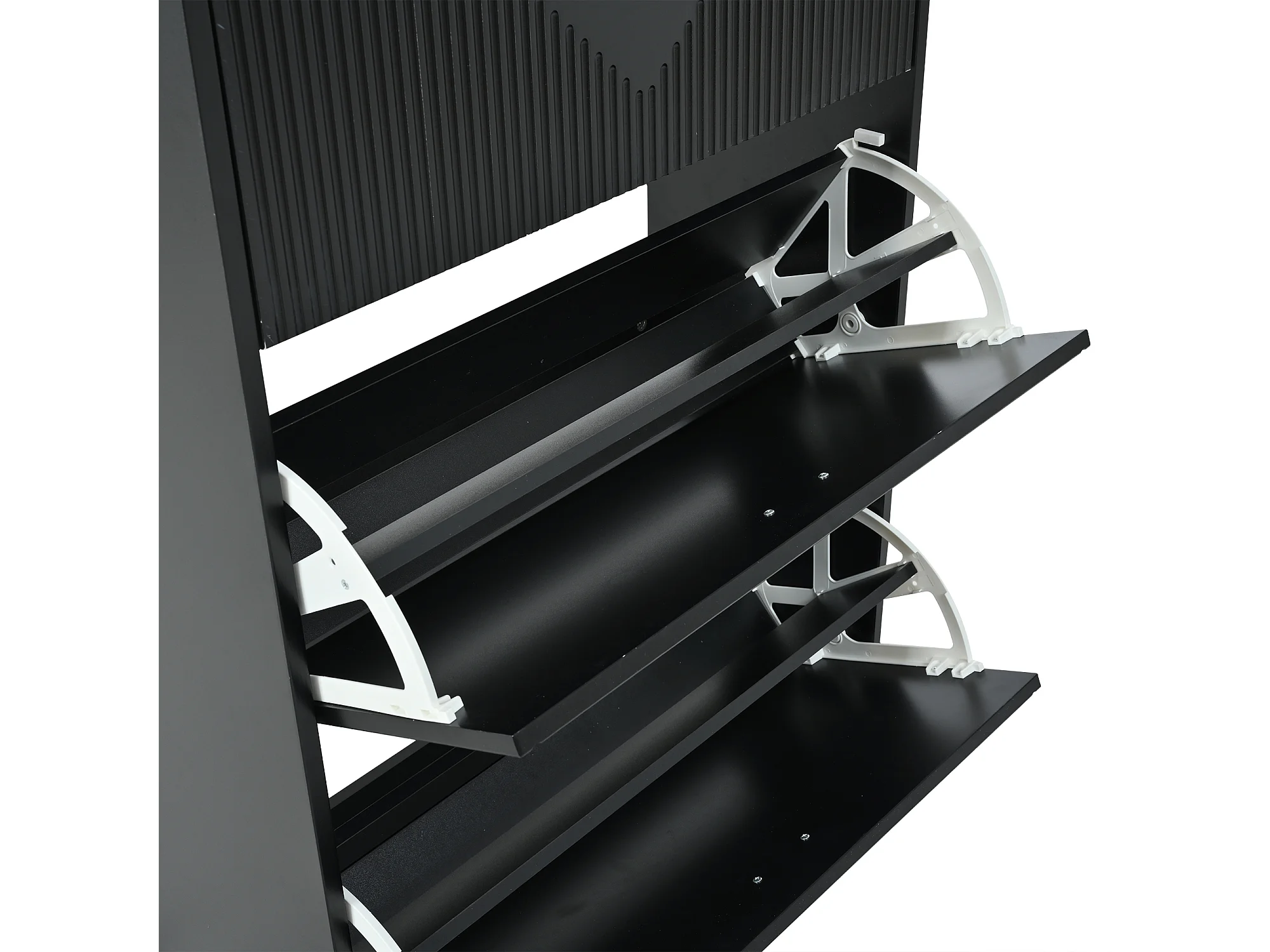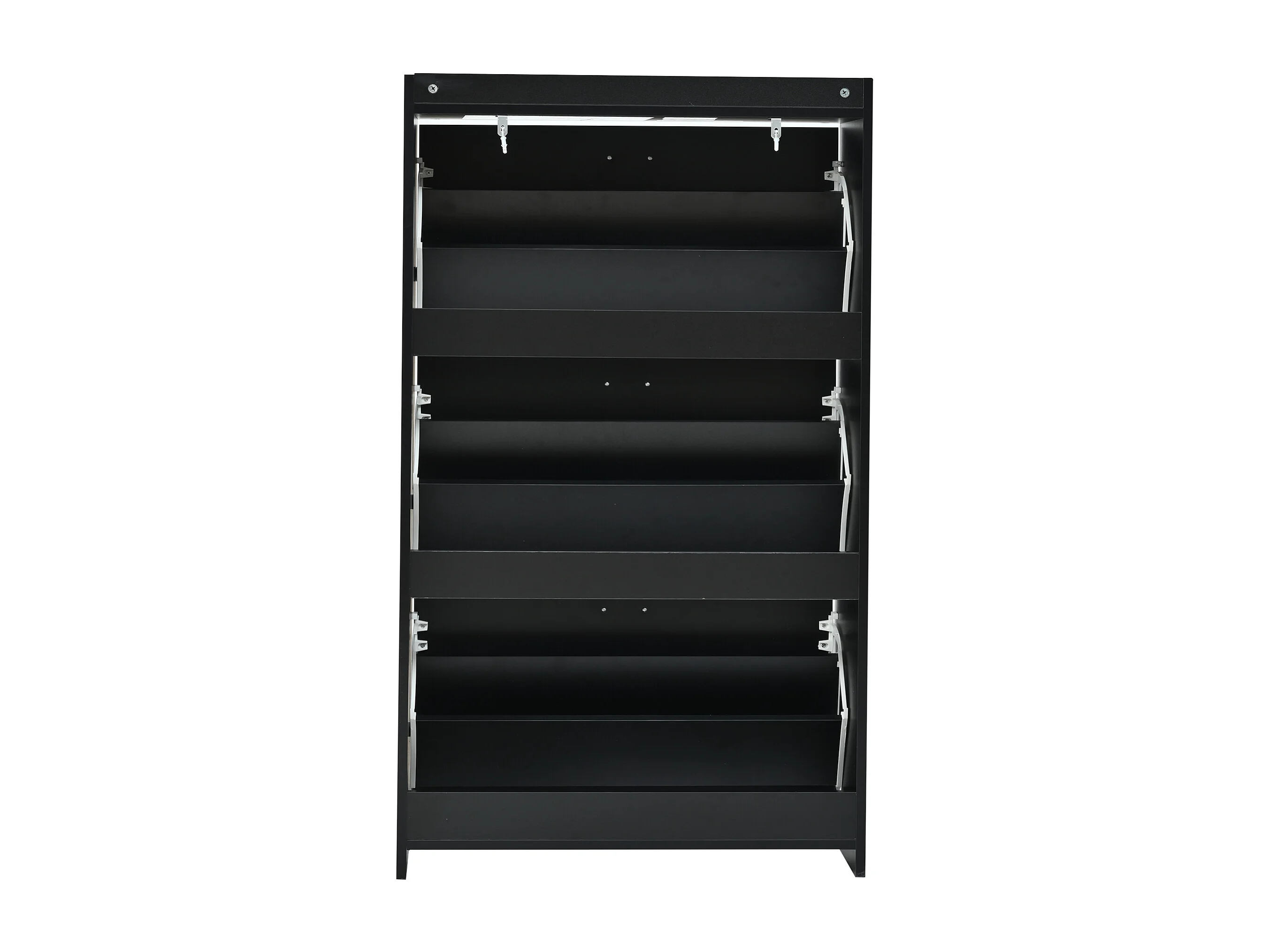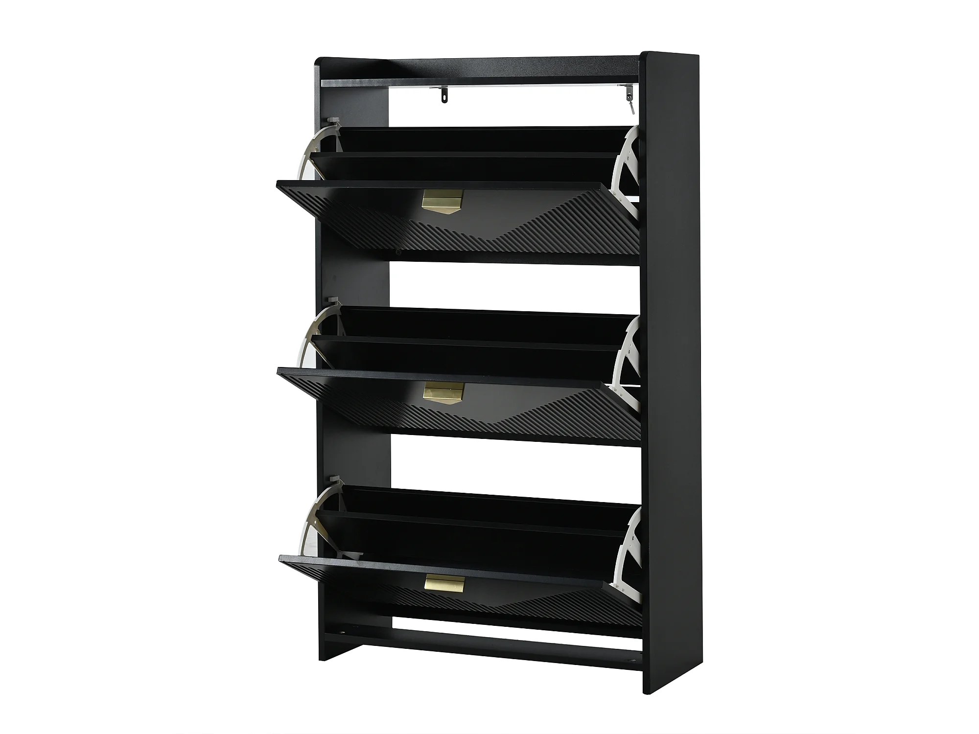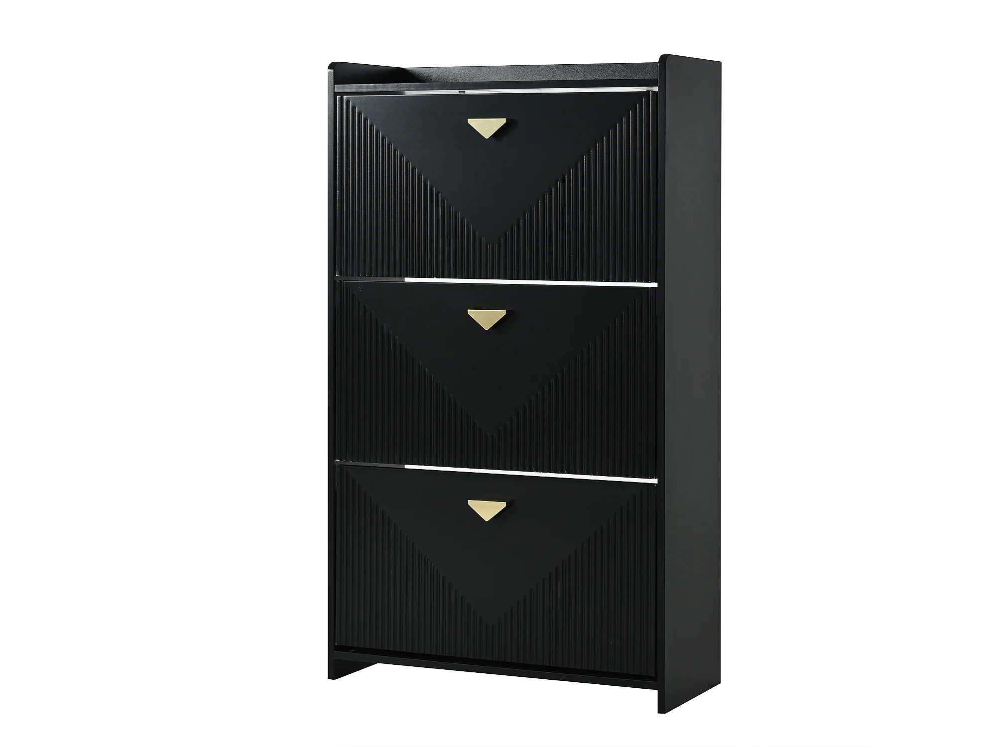 Meuble à chaussures noir avec 3 portes abattantes et 6 compartiments