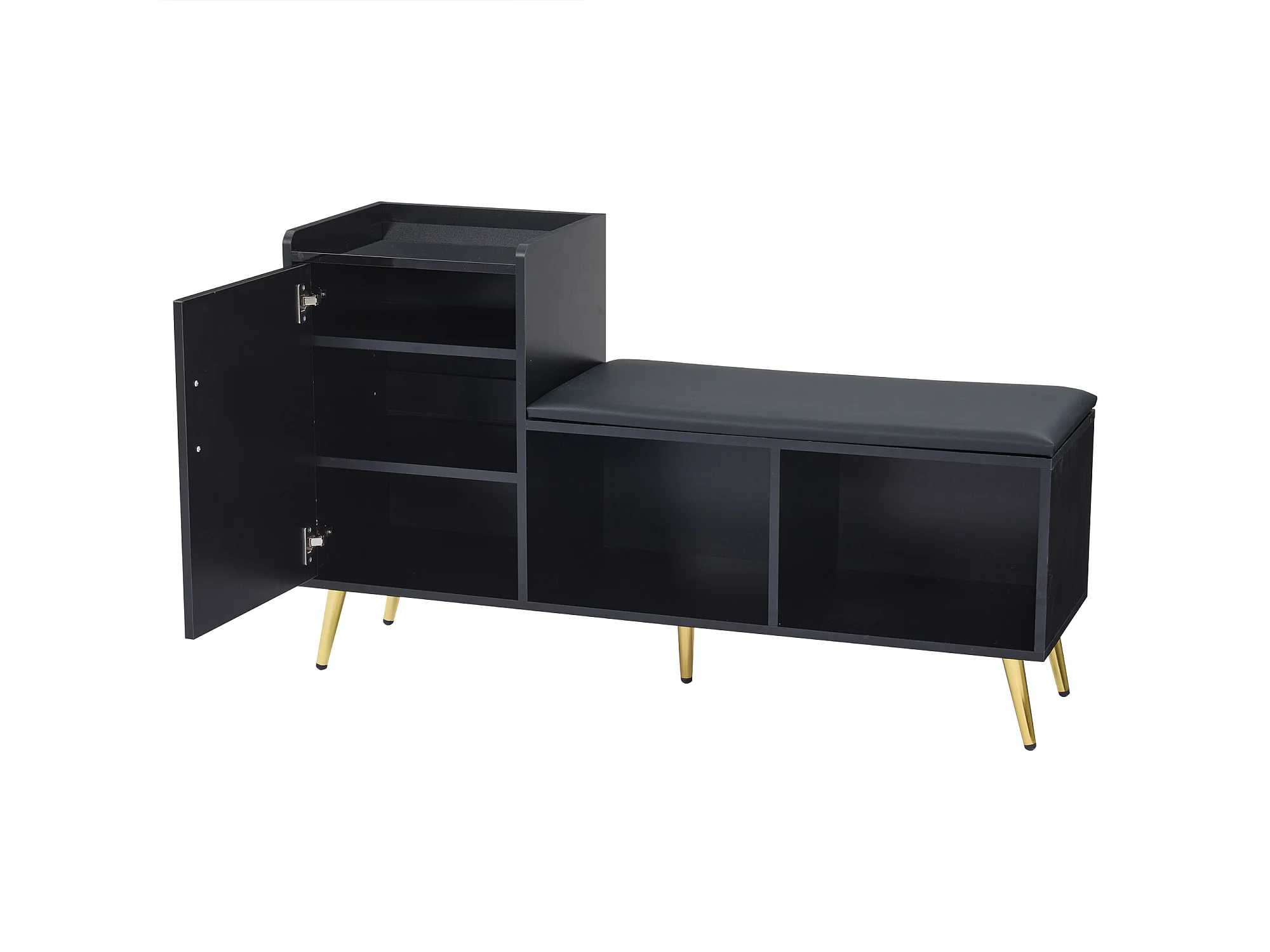 Meuble à chaussures noir - Meuble à chaussures avec 1 porte et siège - rangement ouvert - pour salon et chambre