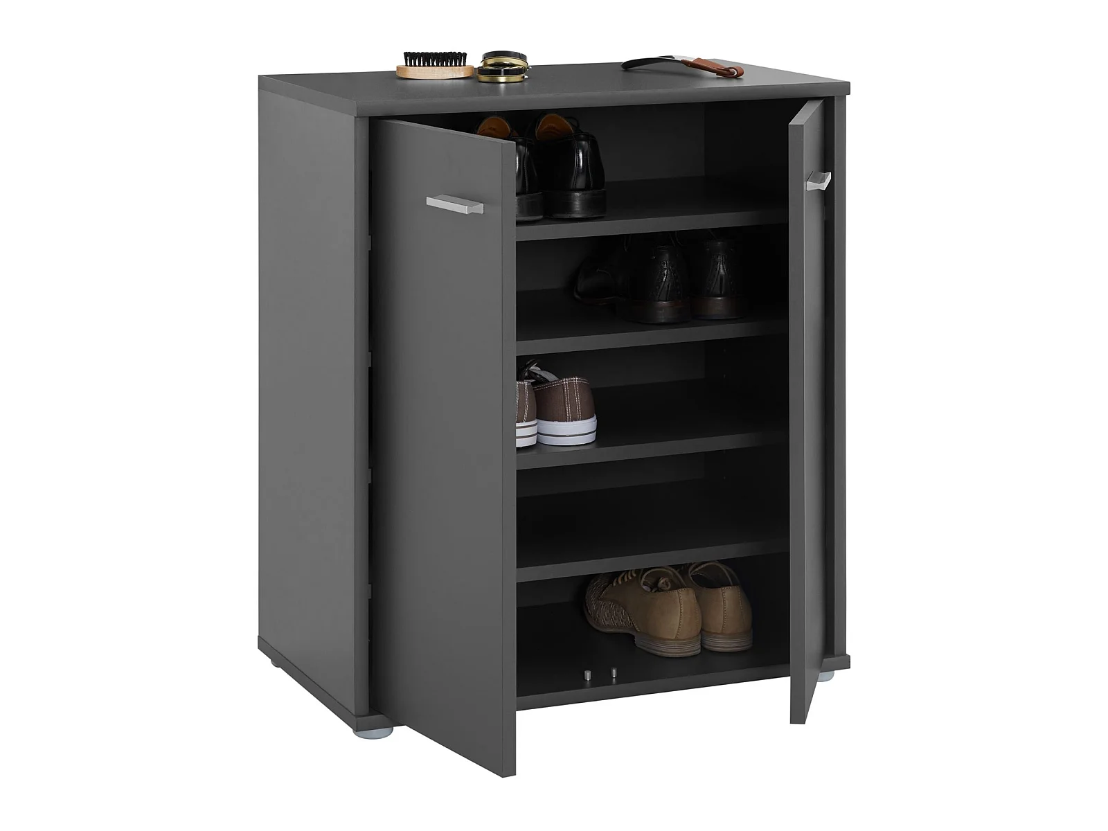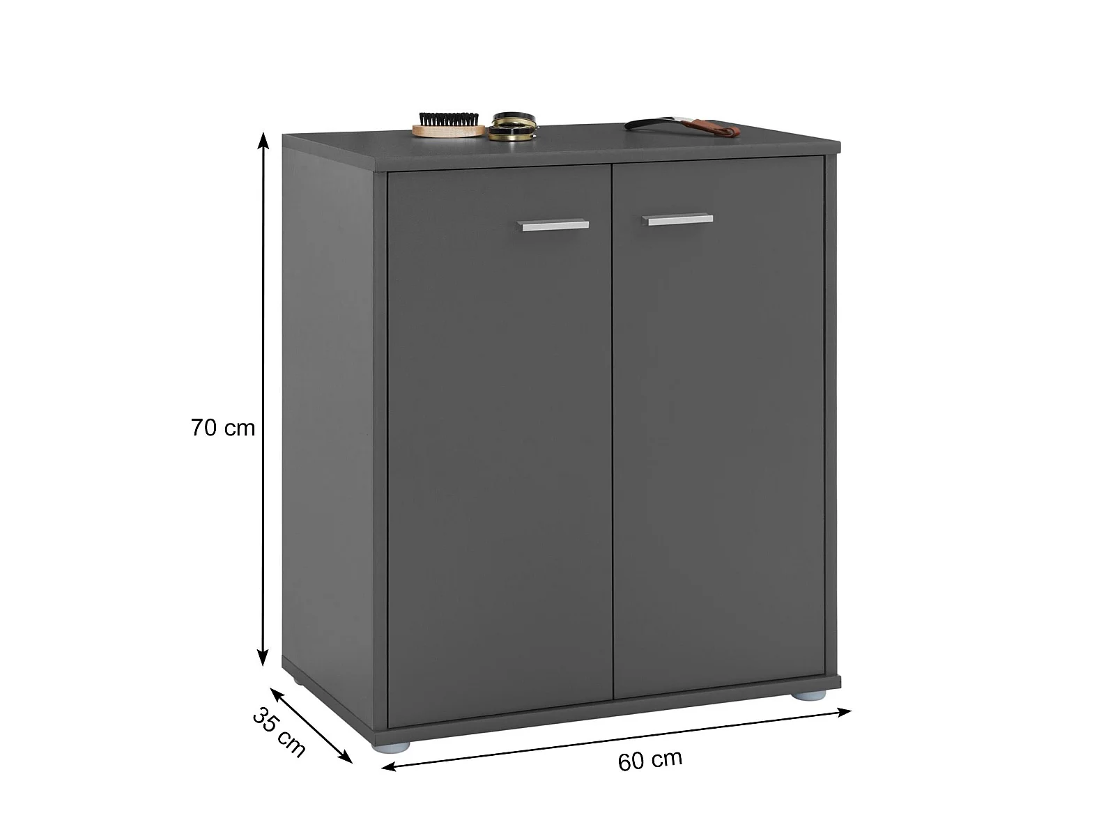 Meuble à chaussures OLYMPE, commode meuble de rangement avec 2 portes, en mélaminé gris mat