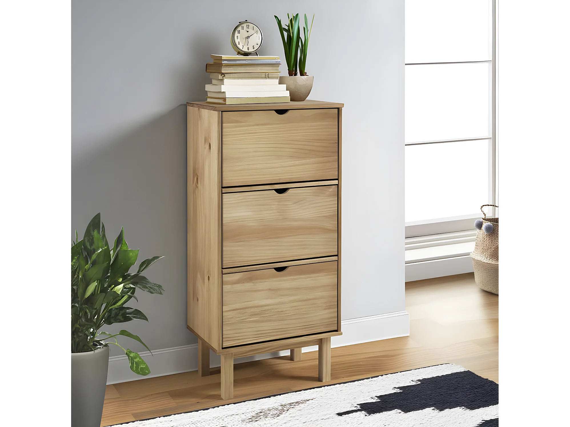 Meuble à chaussures OTTA avec 3 tiroirs Marron Bois massif pin WVGQ6590