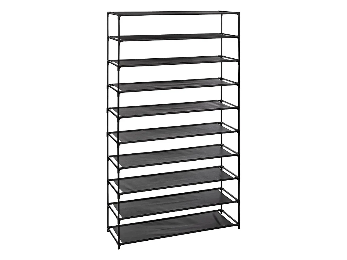 Range-chaussures avec 10 étagères Métal et Tissu non tissé Noir