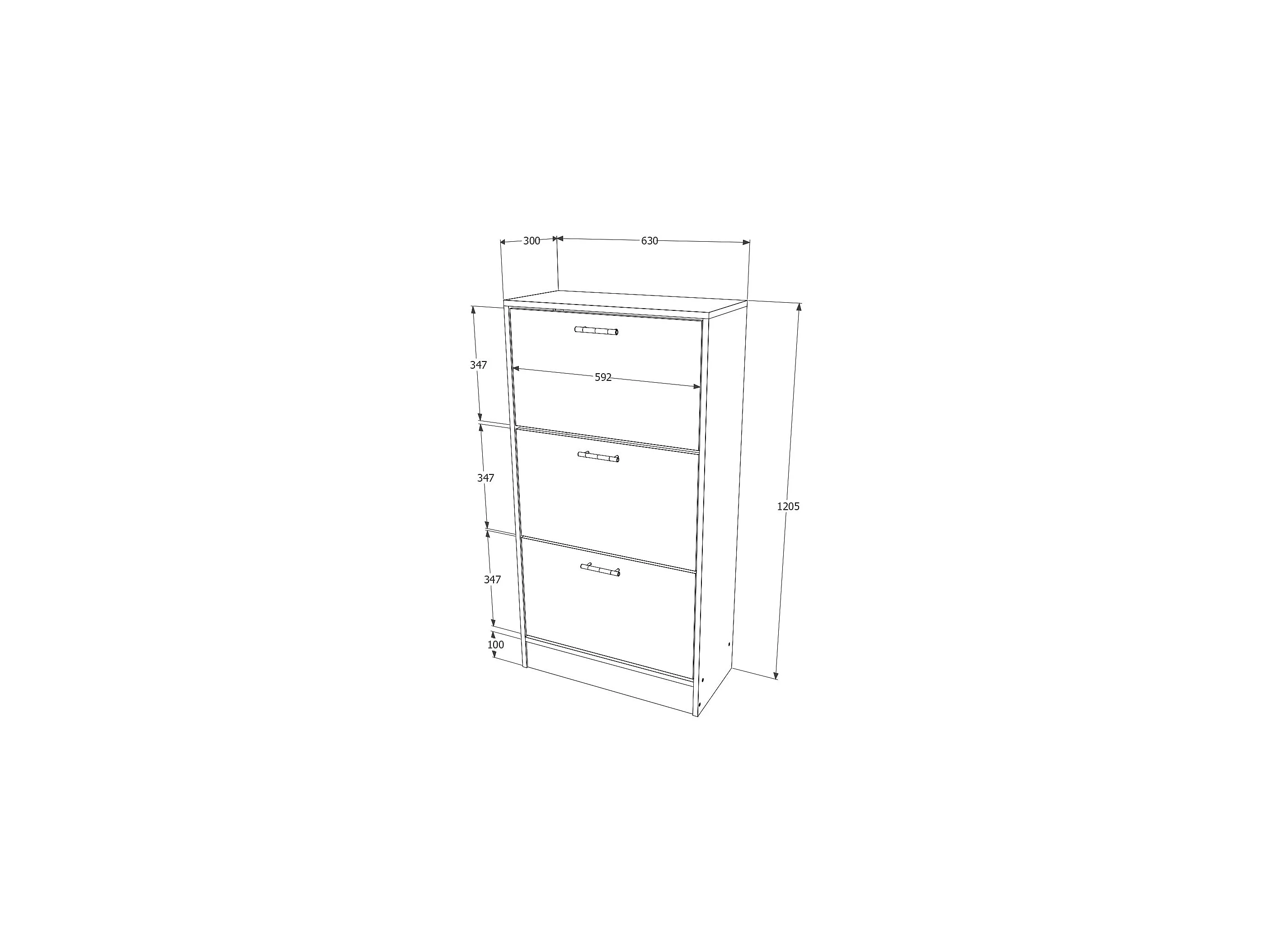 Meuble à chaussures Rin, 3 portes, Blanc, 63 x 30 x 120 cm