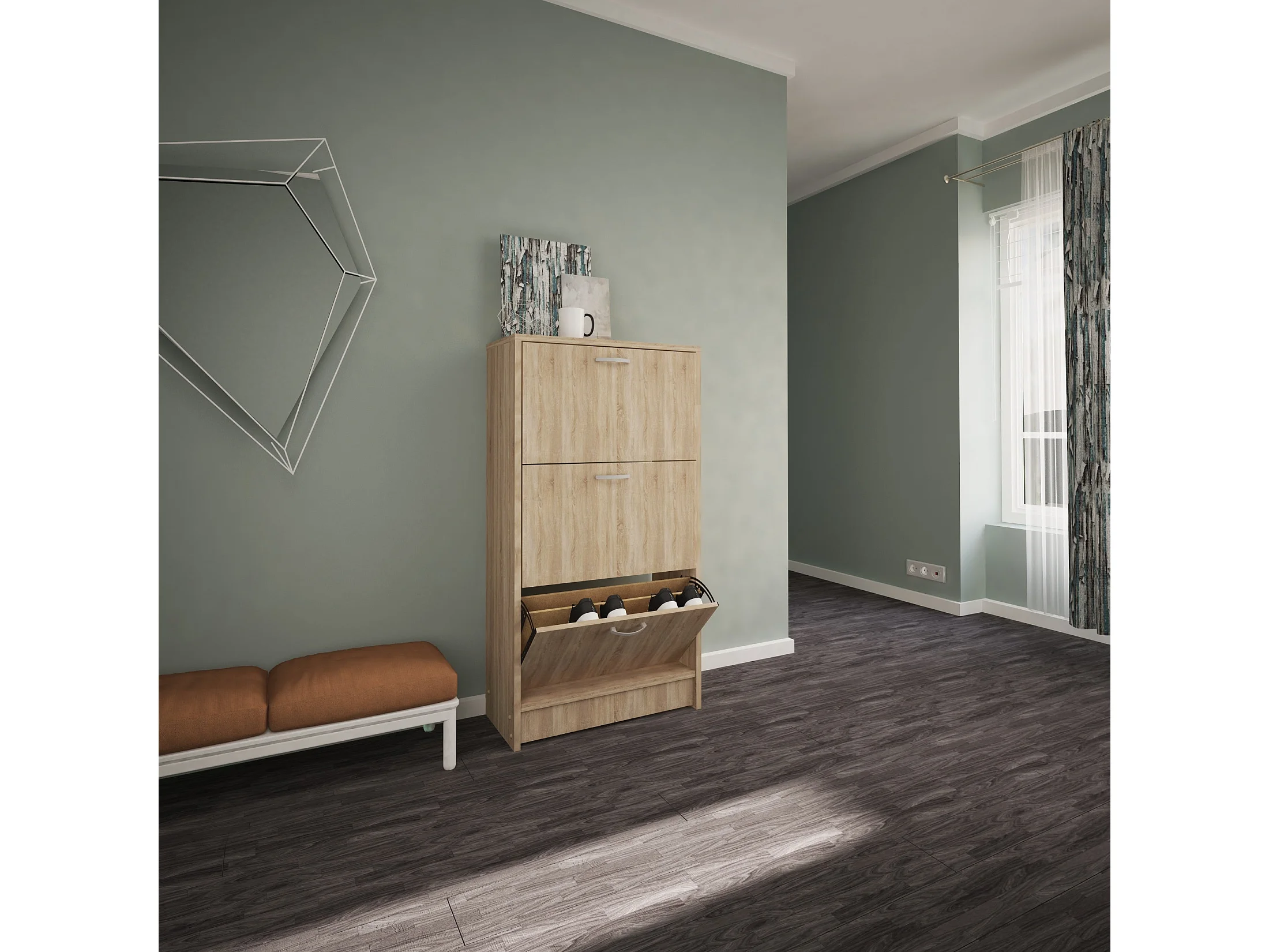 Meuble à chaussures Rin, 3 portes, Chêne Sonoma, 63 x 30 x 120 cm