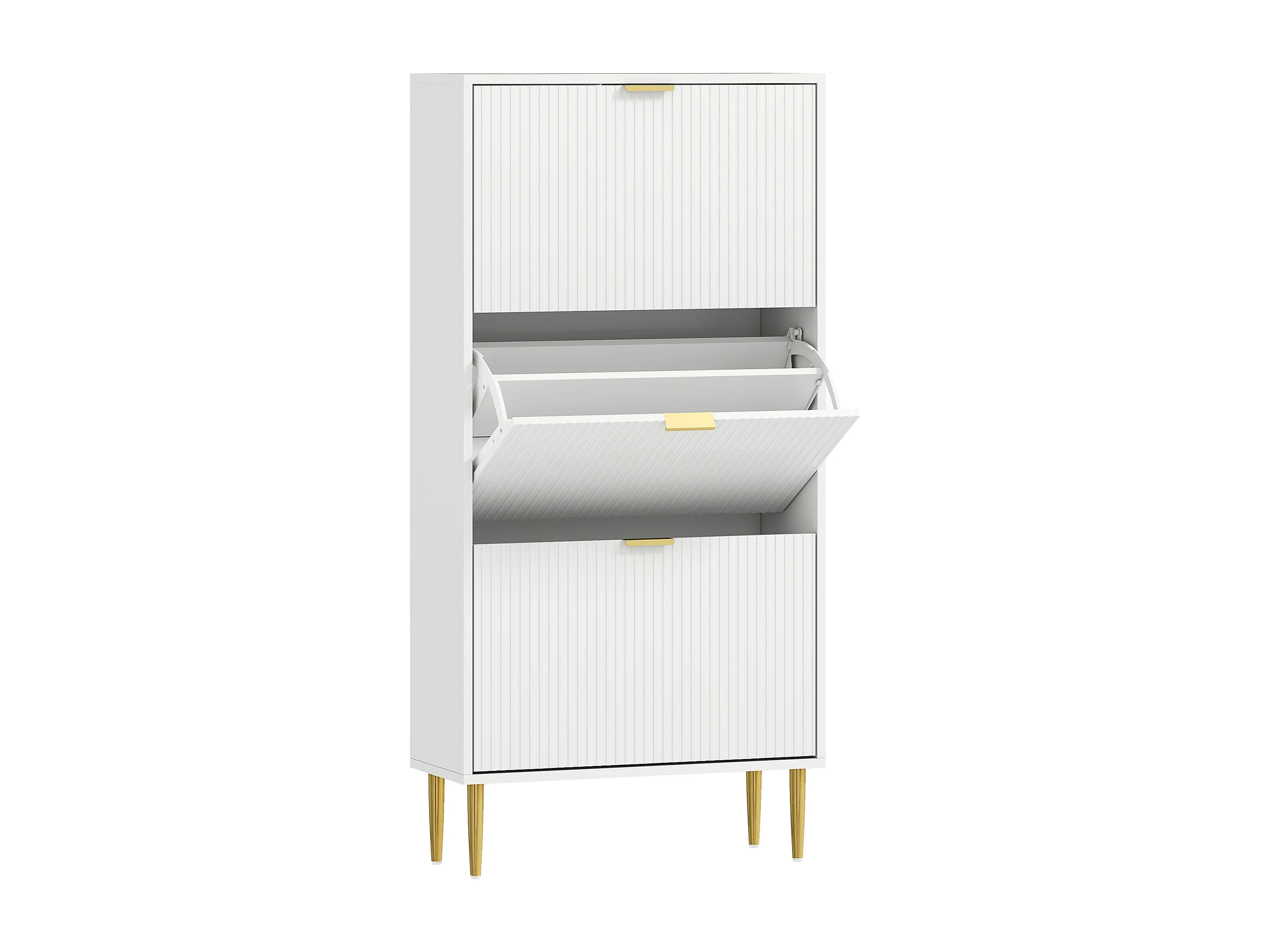 Meuble à chaussures style Art déco 3 portes piètement poignées métal doré 60 x 24 x 128 cm blanc