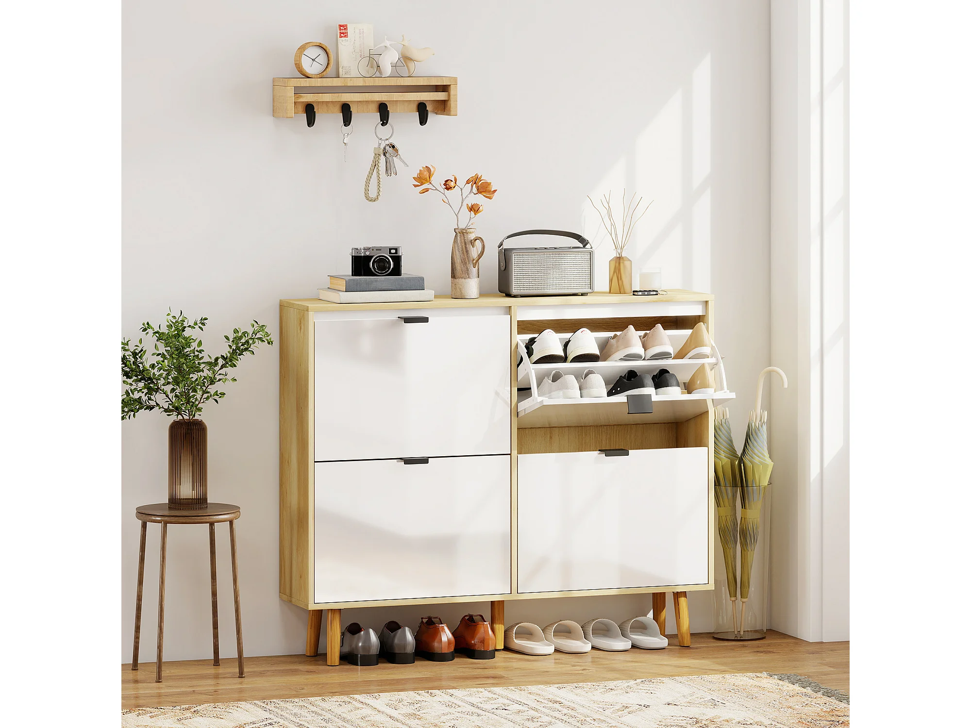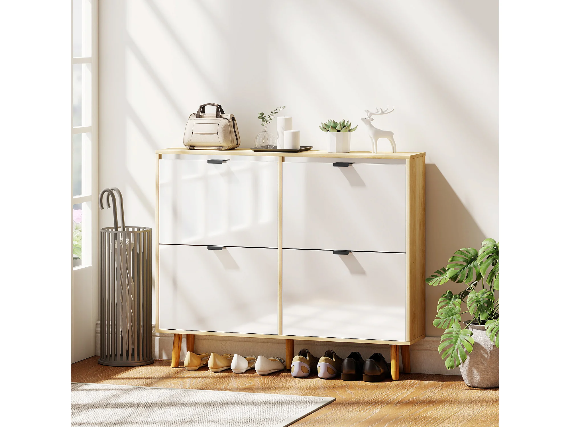 Meuble à chaussures style scandinave 4 portes étagères réglables piètement bois blanc effet bois clair