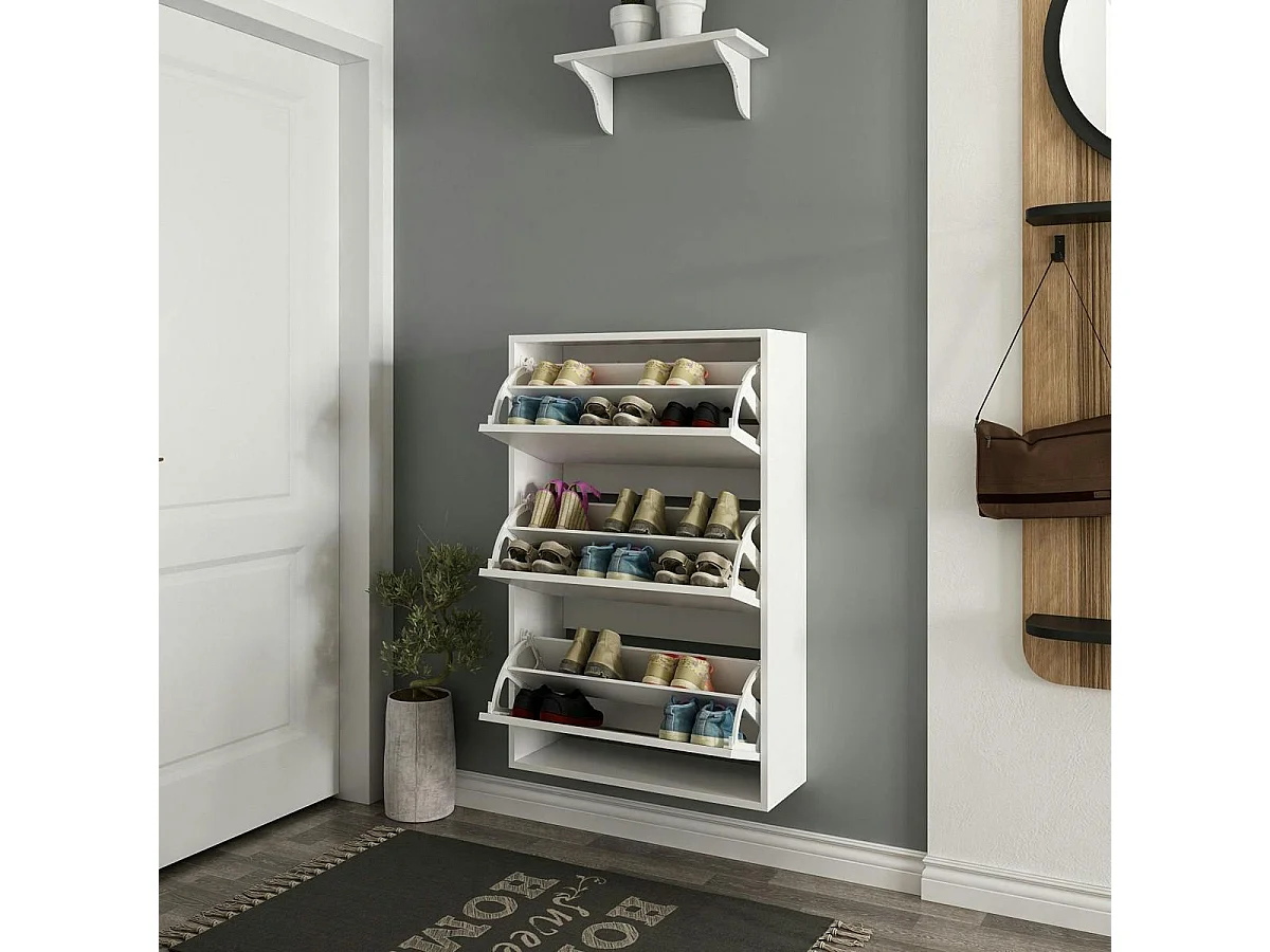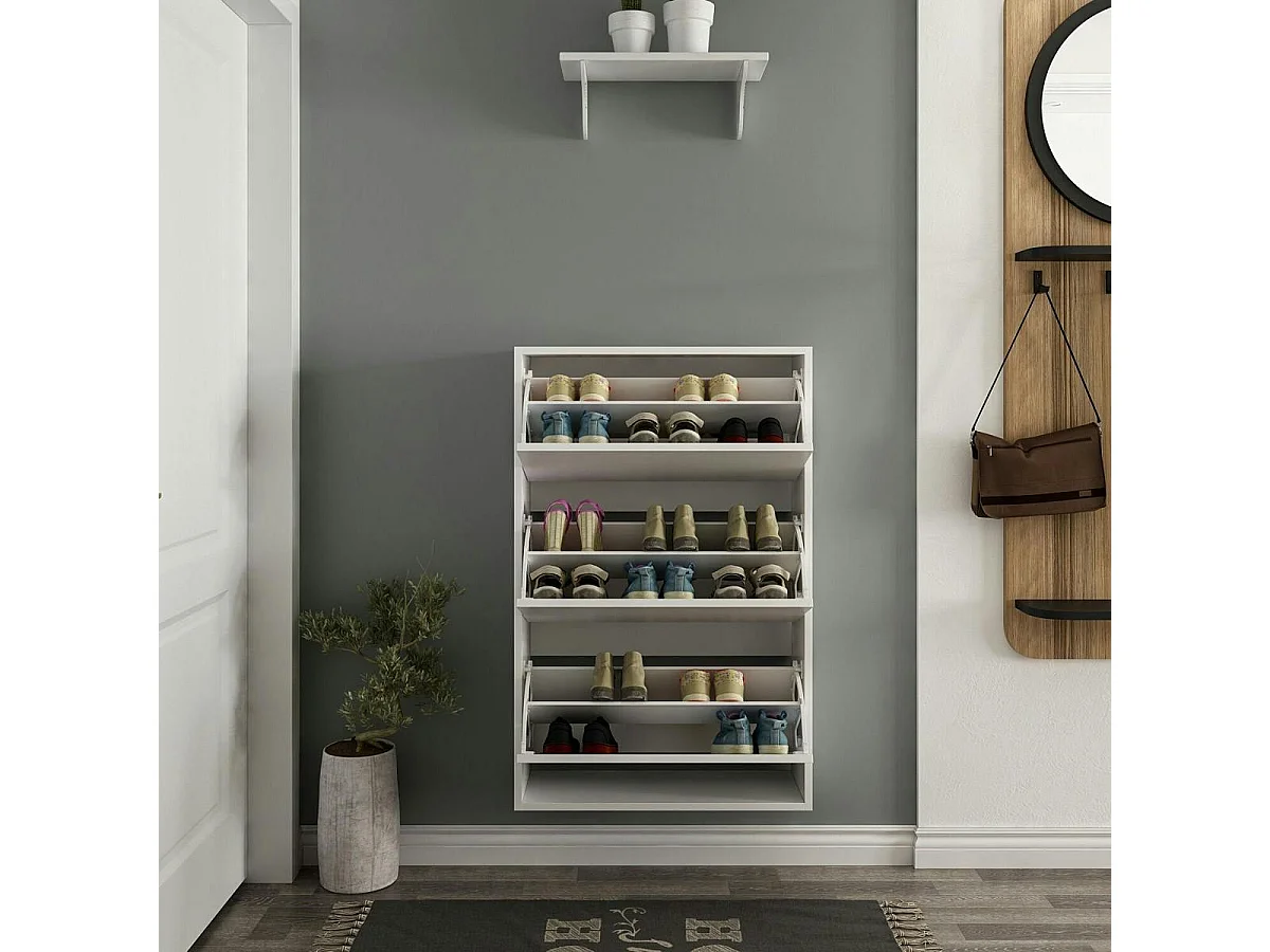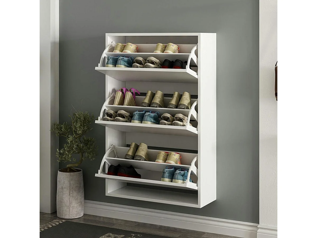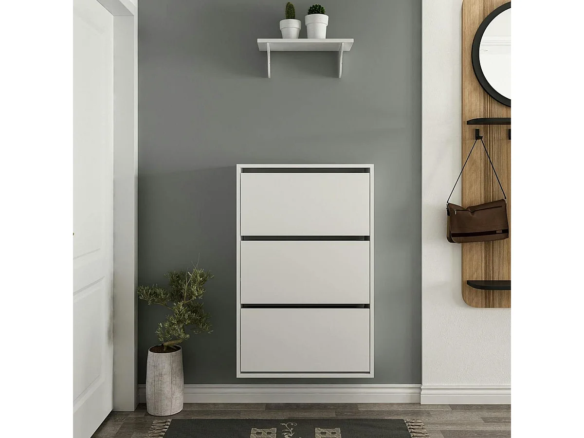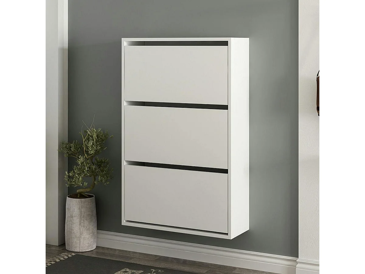 Meuble à chaussures suspendu blanc 3 portes abattantes MARFA