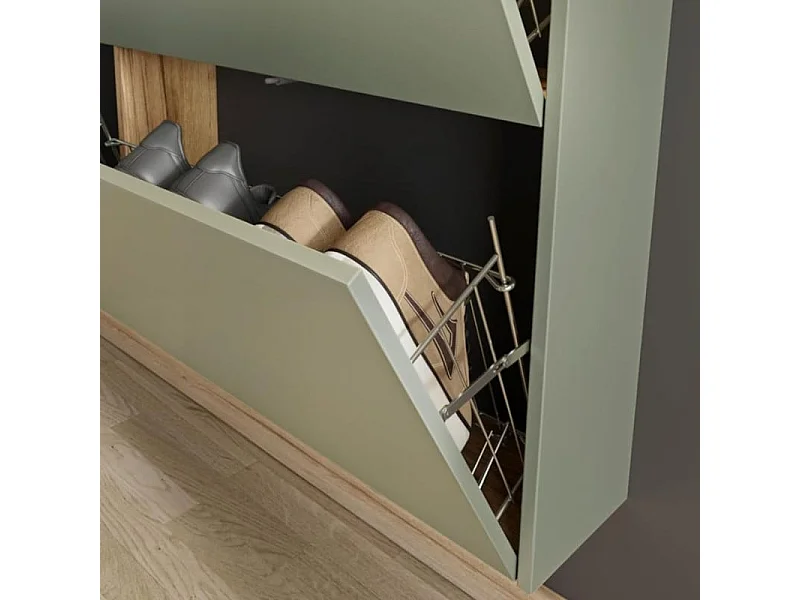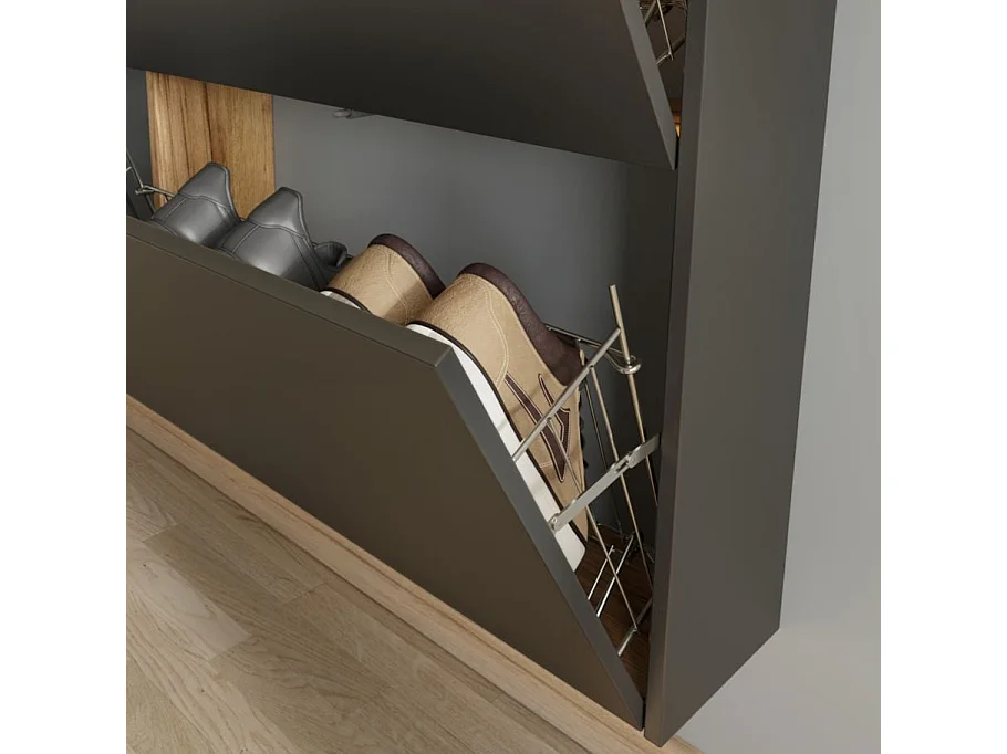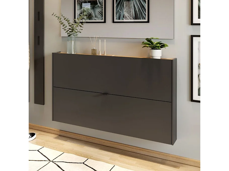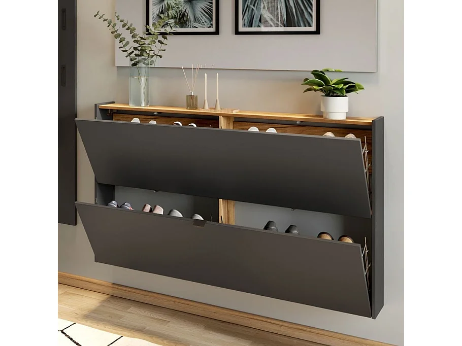 Meuble à chaussures suspendu 140 x 85 x 19cm couleur graphite et bois Justy
