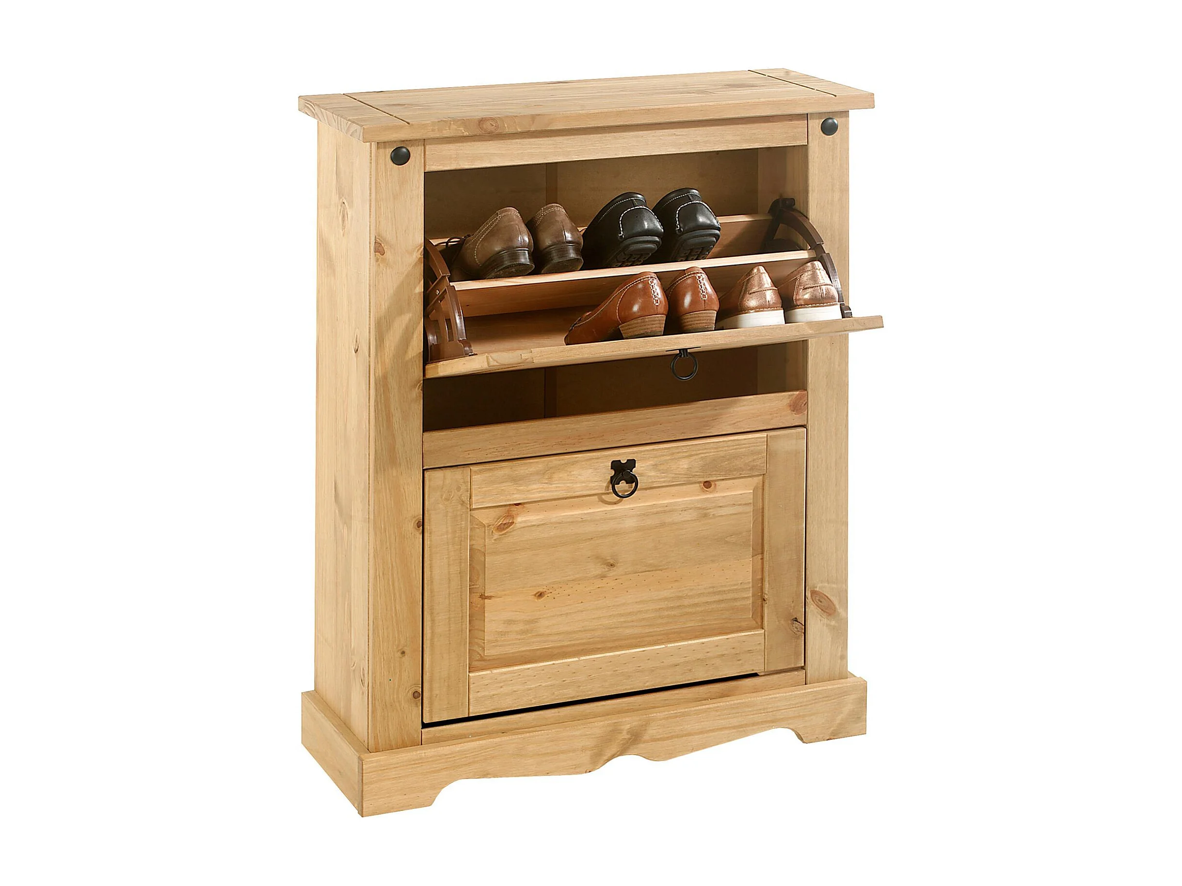 Meuble à chaussures TEQUILA style mexicain armoire à chaussures avec 2 abattants, en pin massif finition teintée et cirée