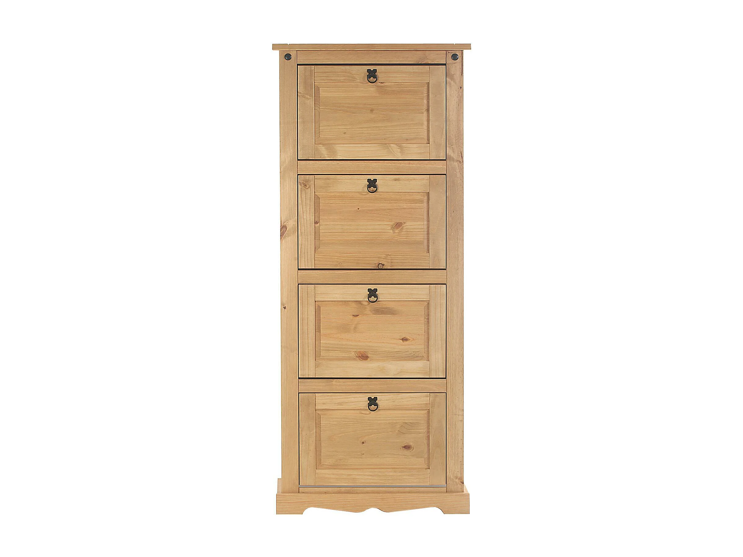 Meuble à chaussures TEQUILA style mexicain armoire à chaussures avec 4 abattants, en pin massif finition teintée et cirée