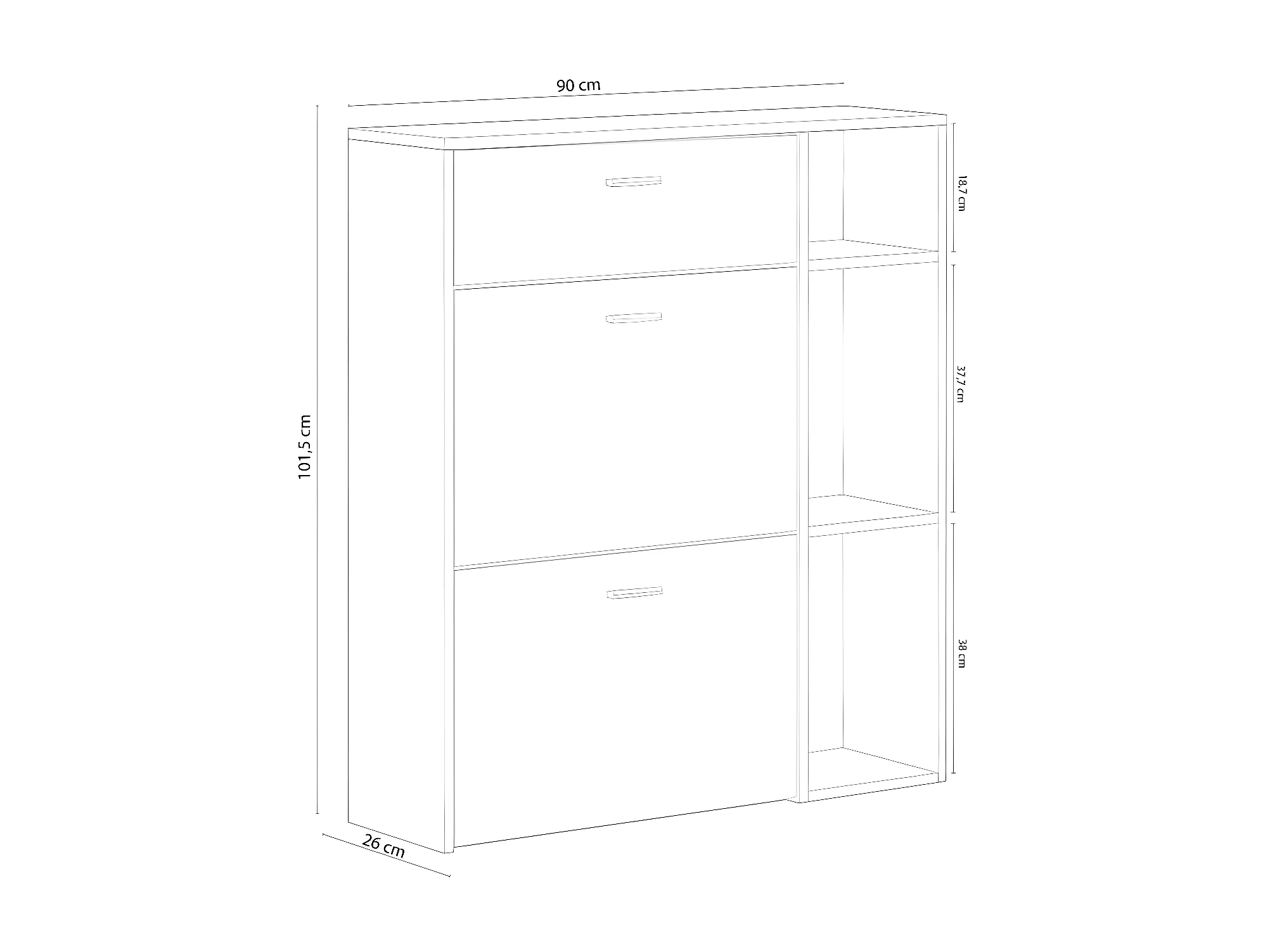 Meuble à chaussures WIND, couleur structure chêne, couleur Blanche, 90x26x101.5cm