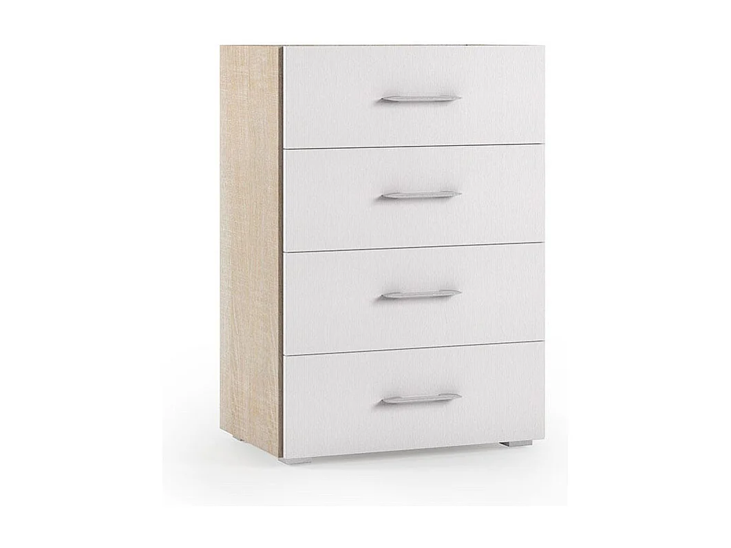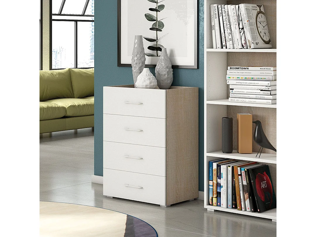 Meuble À Tiroirs De Salle De Bains Avec Façade Blanche Et Côtés En Chêne