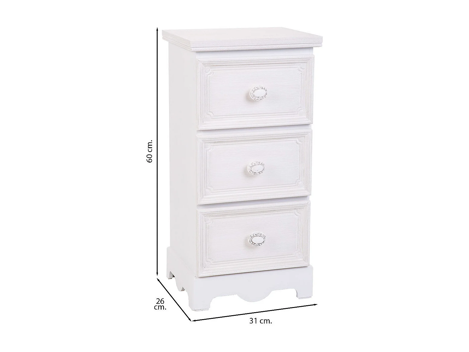 Meuble à tiroirs en bois blanc 31x26x60 h cm